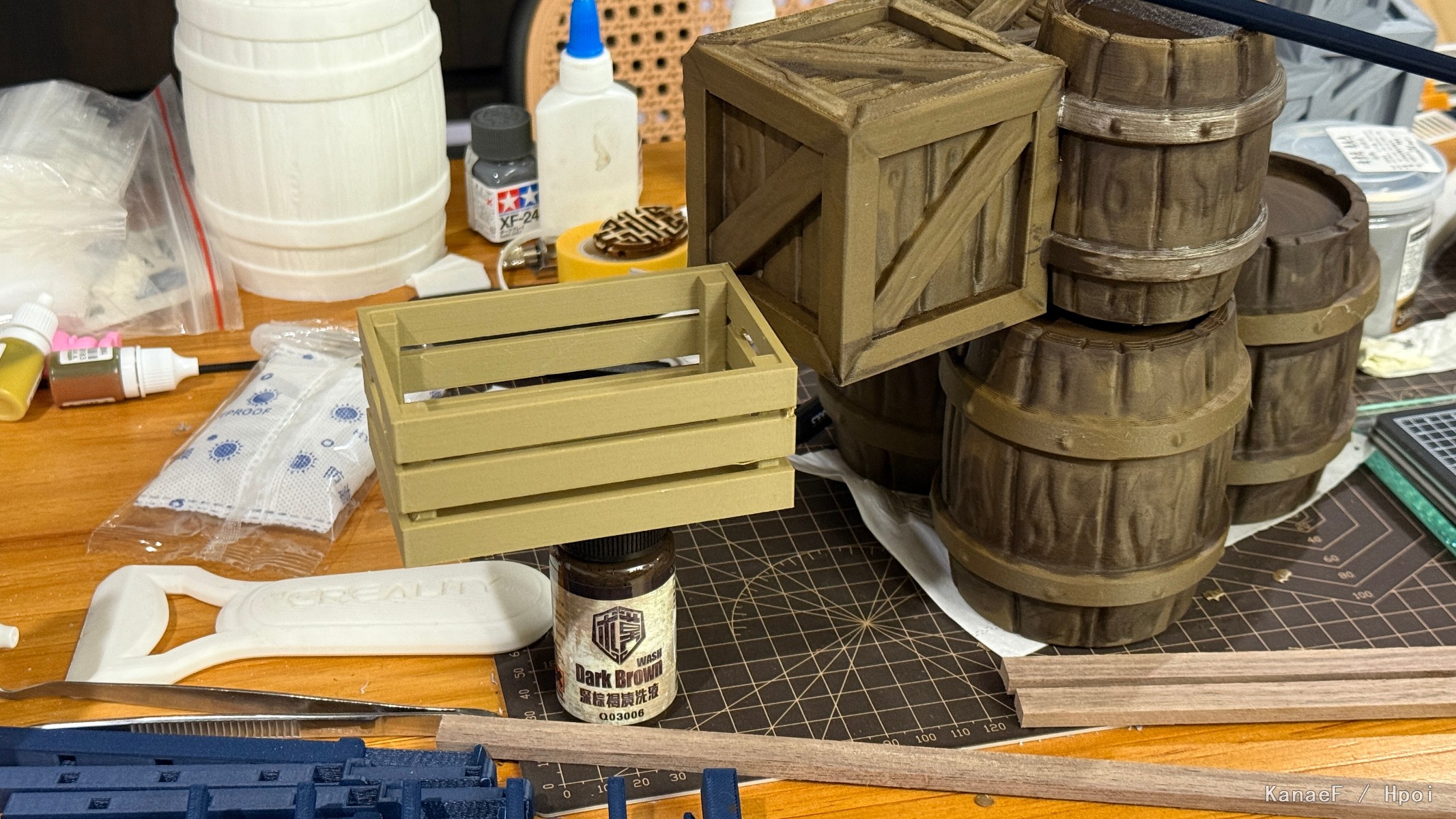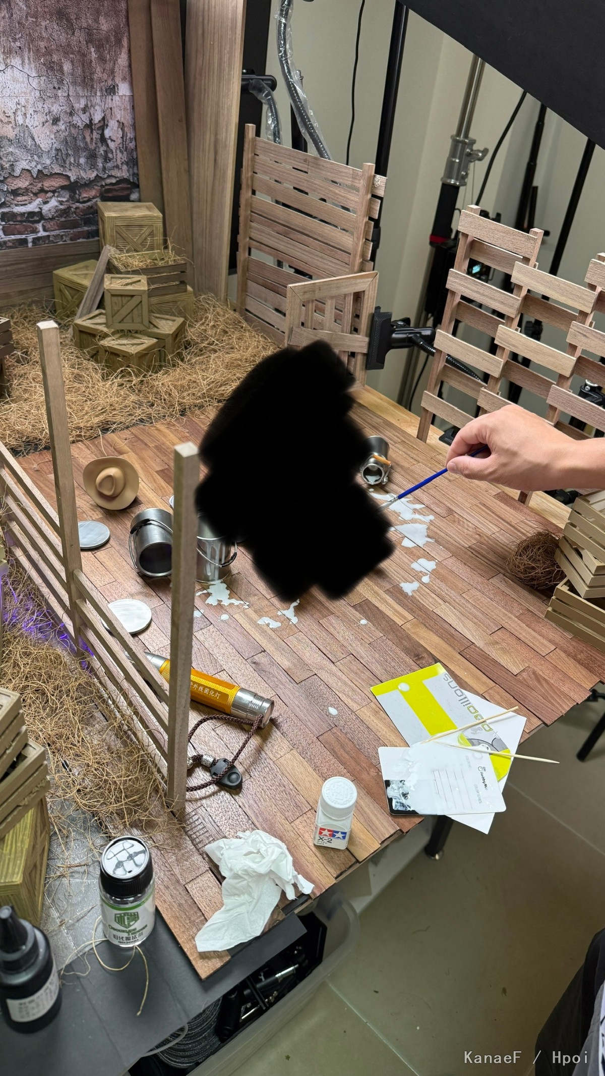 一开始接到委托一看,感觉这场景挺好还原的嘛就开始整了,木条+木片还有3D打印的一大堆远景道具,全部手搓,最后搞了一个半星期,比想象中的工作量要大一些