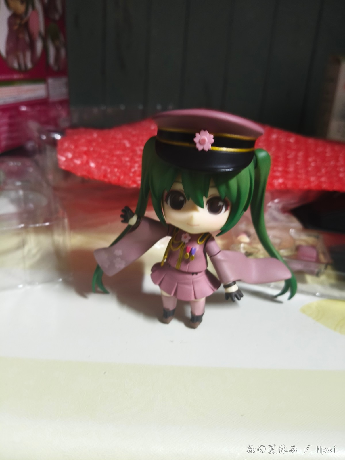 记得几个月前看到千本樱的正比手办,本来想买,结果看价格太高就说再等等。最近看价格合适了,一查才发现原来还出过粘土人,就决定入这只粘土人就行了,其实按计划今年的赛车初音粘土人才是我第一只miku的粘土人。我的第一个景品手办和第一个正比手办恰好也都是miku(准确来说那个景品是樱花未来),也是时隔多年再次收到miku的手办了。千本樱好像也是我接触初音未来的几首歌之一吧,挺有情怀的。买之前本来想看看别人拍的照片,结果发现hpoi都没什么人拍,这么冷门的吗π_π