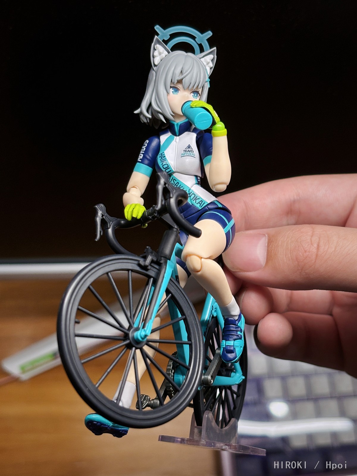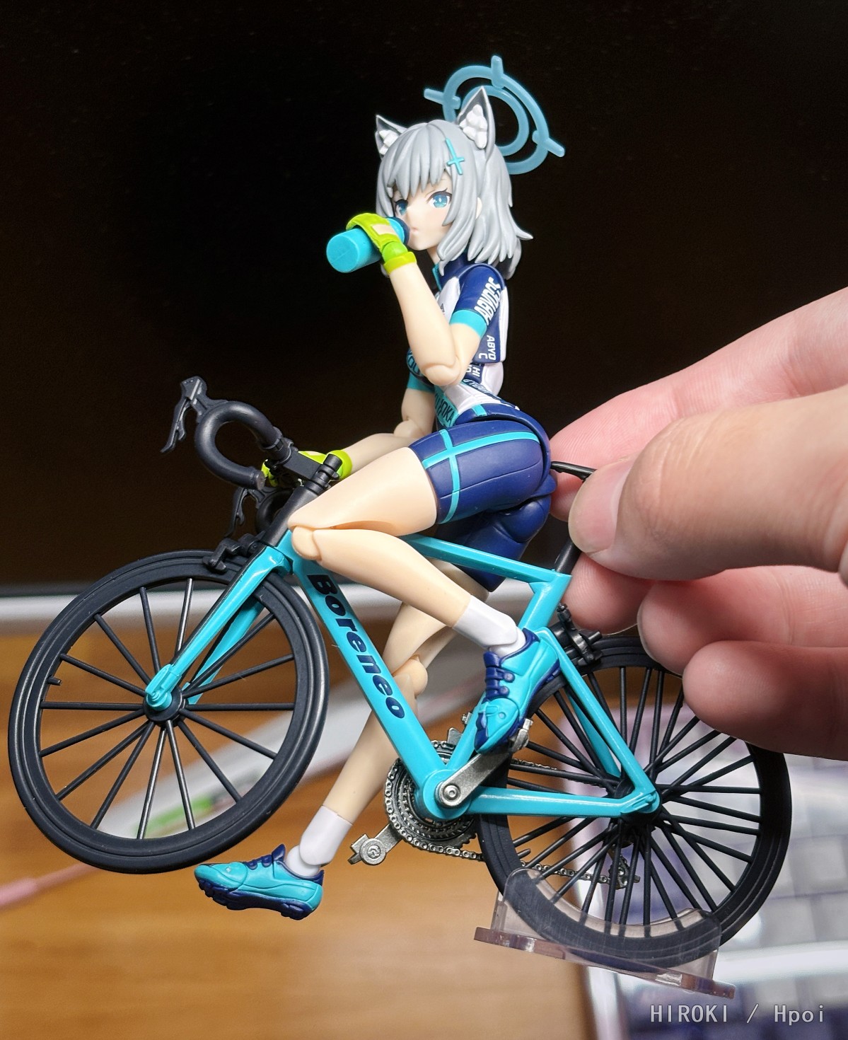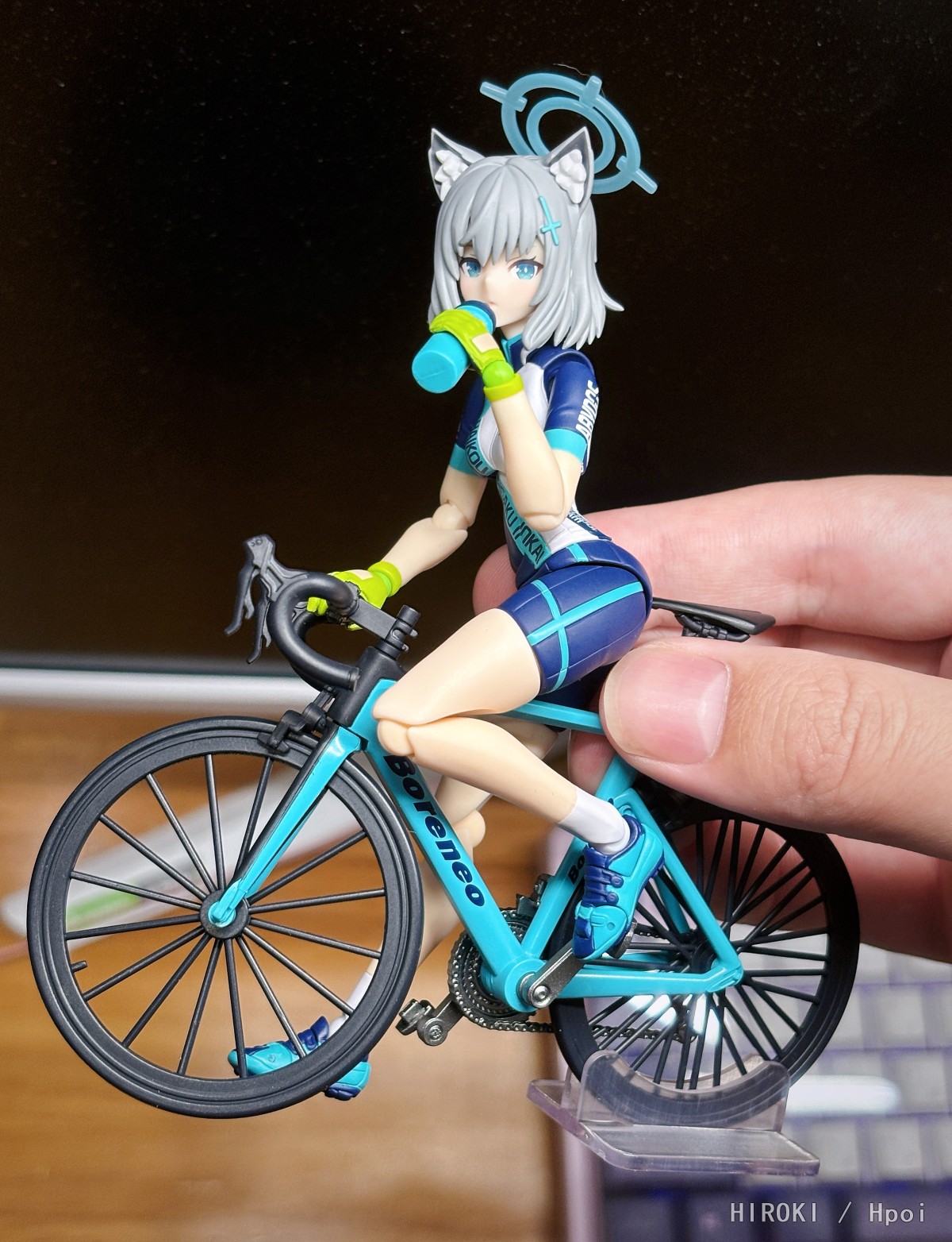 先说结论吧,个人觉得是比较有诚意的一款。 价格方面,小程序下单优惠完一共530,配件量在这两年的figma里中等偏上肯定是站得住的。 面雕方面以我的审美来说相比上一版会更加生动自然,其实我觉得摆在一起看还是很明显的,当然这个萝卜青菜各有所爱。 可动方面应该是目前BA系列最好的了,虽然这也没啥好表扬的,说白了也就是因为这次的造型优势,说好听点叫人体彩绘,说难听点就是一个纯素体,他想做到可动很抽象也挺有难度,前几作的灾难可动大家有目共睹。 让我比较惊喜的是这辆自行车,做工确实是不错,前后轮以及两个踏板都可以转,方向盘也可以左右180度摆(会带动前轮),这个可动是有超出我的预期的(对不起 当然缺点也有,一个是脚踏板和白子鞋底的连接固定比较不靠谱,即使脚踏板还给单独做了角度旋转,但是固定效果聊胜于无(也可能是我不会玩),另一个是右手的车把,很松啊我这只!可以靠塞一点蓝丁胶解决,至于是不是通病就不清楚了。 然后是很多人提到的身高啊,确实会比初版高大概1/3头的样子,这么设计的最大原因显然是照顾到和自行车的互动。我对比了一下,初版的白子在目前出的5款BA里好像就是最矮的,和莎跟她差不多但还是要高一点,邮箱和未花就比较明显了也是高大概1/3头的样子。所以我个人觉得这个点其实没有这么膈应,我买骑行ver肯定也是带车摆,弯腰后这个高度是完全不违和的,哪怕你是站立摆,那和除了初版白子之外的BA系列放在一起也没啥问题,除非你只买两个白子且全部都是站立摆,那确实是有点不大好看。 那除此之外的配件就也没啥好说的感觉,一把枪一个背包一个水杯(额对了背包的安装比较奇葩),涂装都没毛,然后这次的关节还蛮紧实的。 综上我觉得这款还是相当不错的,以figma来说哈!