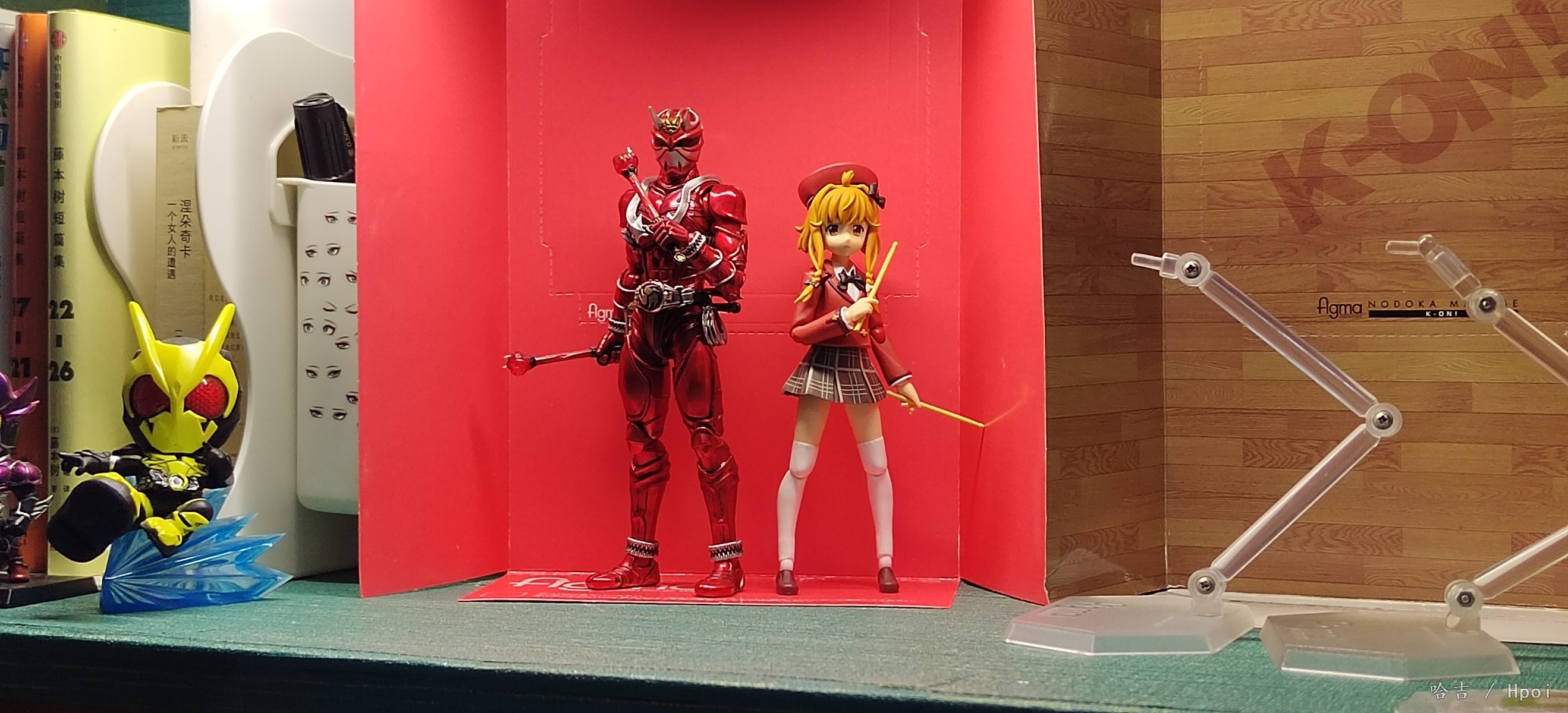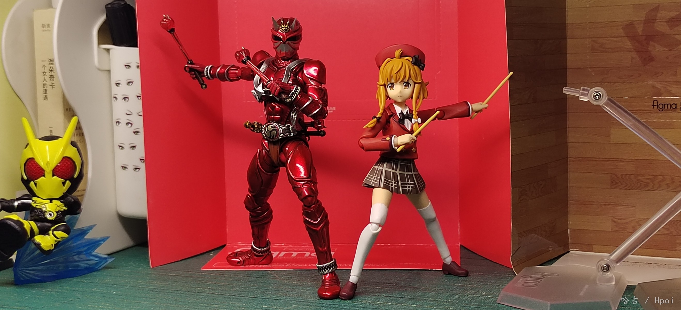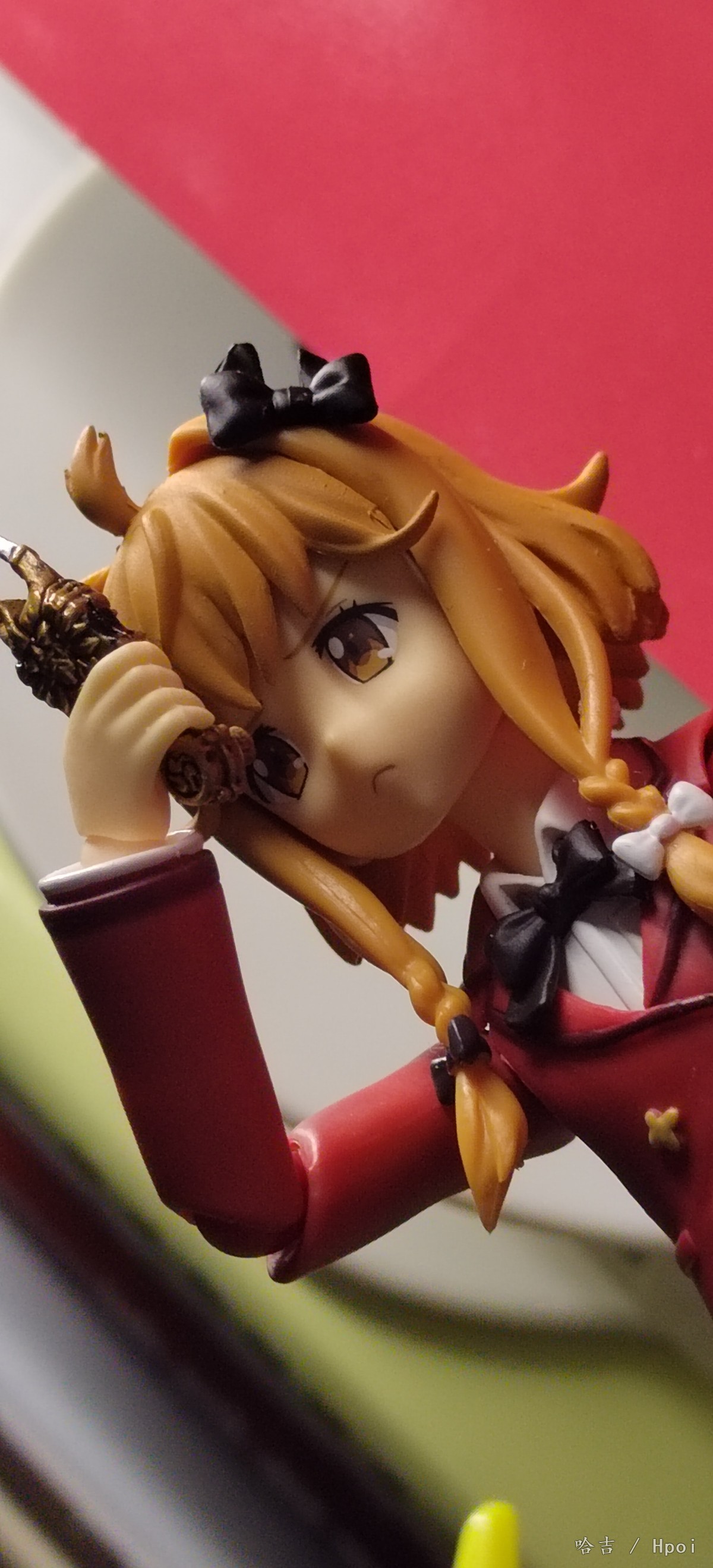 figma鵜野涡芽,入手的第二个figma,本来是想着给真锅和加一个可以卸下裙子的2.0素体玩一玩,买回来发现裙子是一样的安装方式 上套下粘,卸不下来,但是素质还可以,就是关节方面调教的不太好,整个下半身有点软,但自立还行,帽子是磁吸的,也有小鼓🥁配件,没拍是因为懒得拿出来了,做工也行,还有小包,全硬质的,也不错,鞋子我换下来了,虽然大但是底不平站不稳,换成了真锅和的鞋子,好多了, 有不错的抬头,低头一般般,表情给了三个,但是开心表情眼睛歪了,不在意,个人一般喜欢有微表情的脸,手腕关节...和手型组合太紧了,每次换手型都会把关节带下来,所以有些照片的是没插到底,不是插不进去。