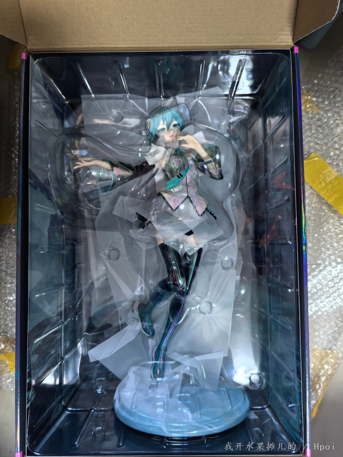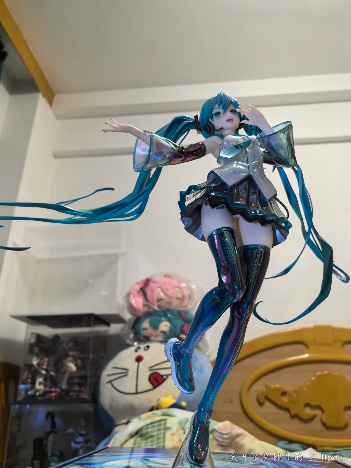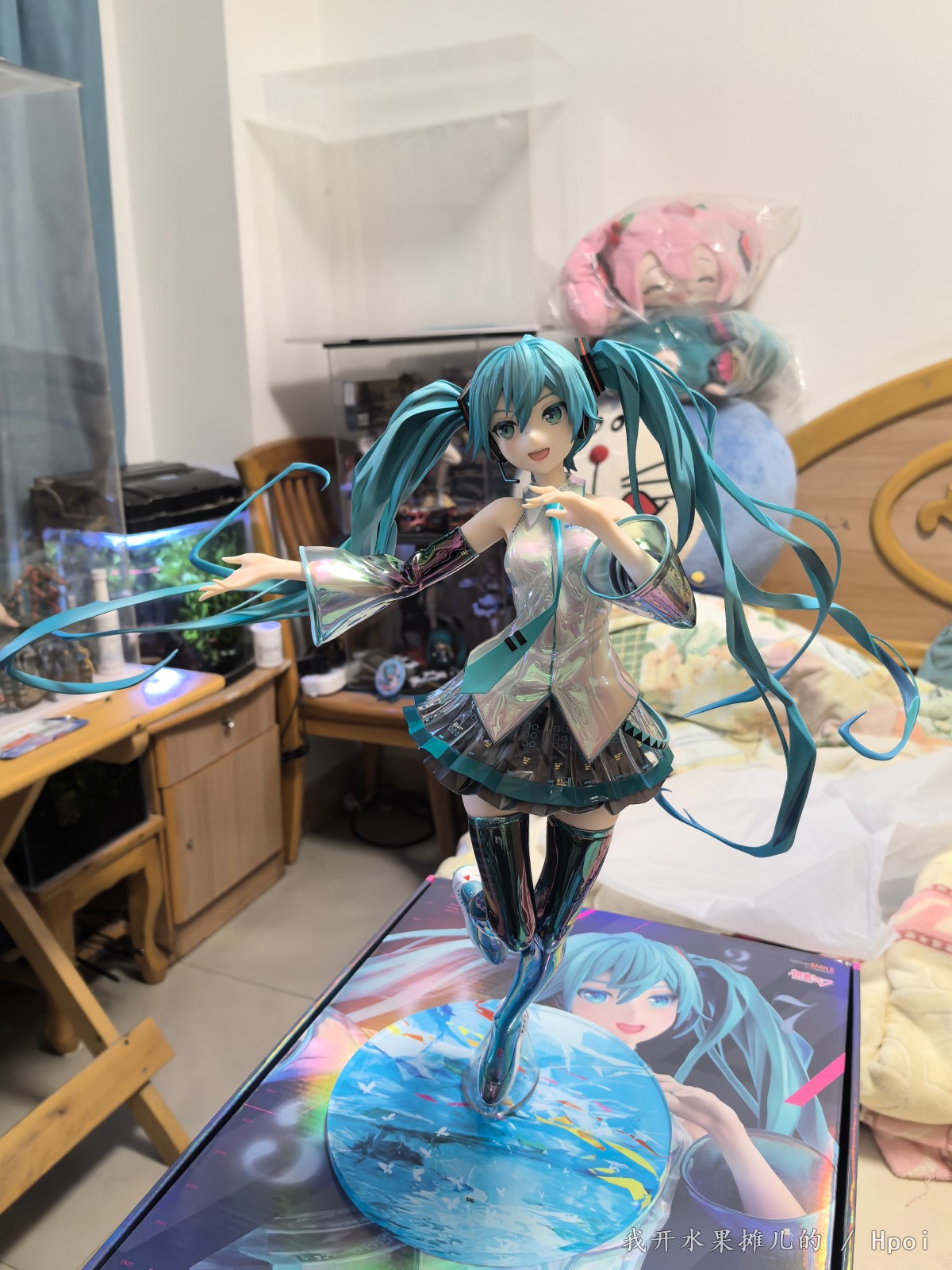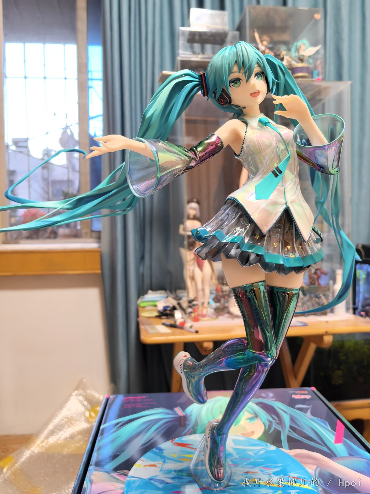 不过那都是之前的事情,最近Gsc的品控频频出问题,如我买的八音盒的初音,这个原画堪称殿堂级别的原画,因为做工用料的问题,头发容易塌。前段时间樱花初音也听说很多人的大腿出现了发黑的情况。很多人都在想这一款手办到底表现如何?有的人吐槽说这个手办太大了,然后脸啊,腿呀鞋子呀有问题之类的。现在呢就让我们一起来看一看这款1:4的gsc手办到底能够做到什么样的程度。