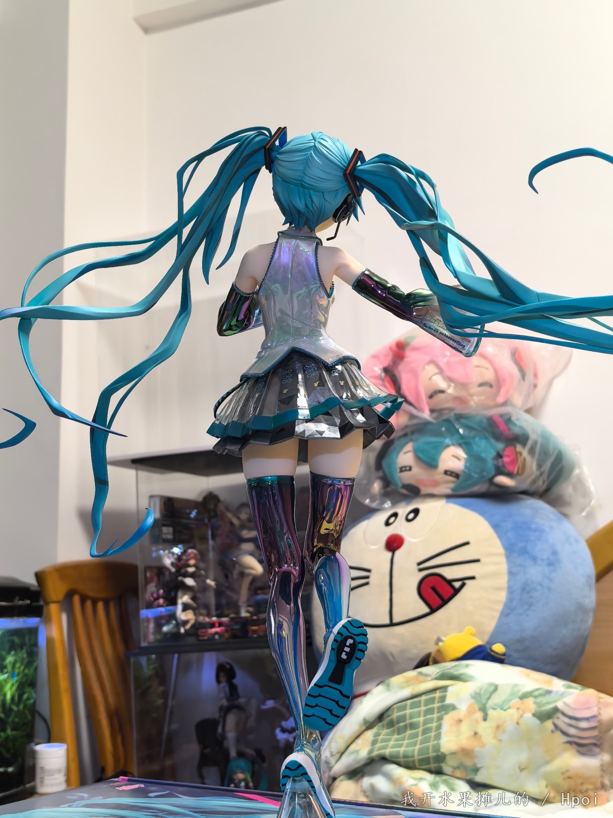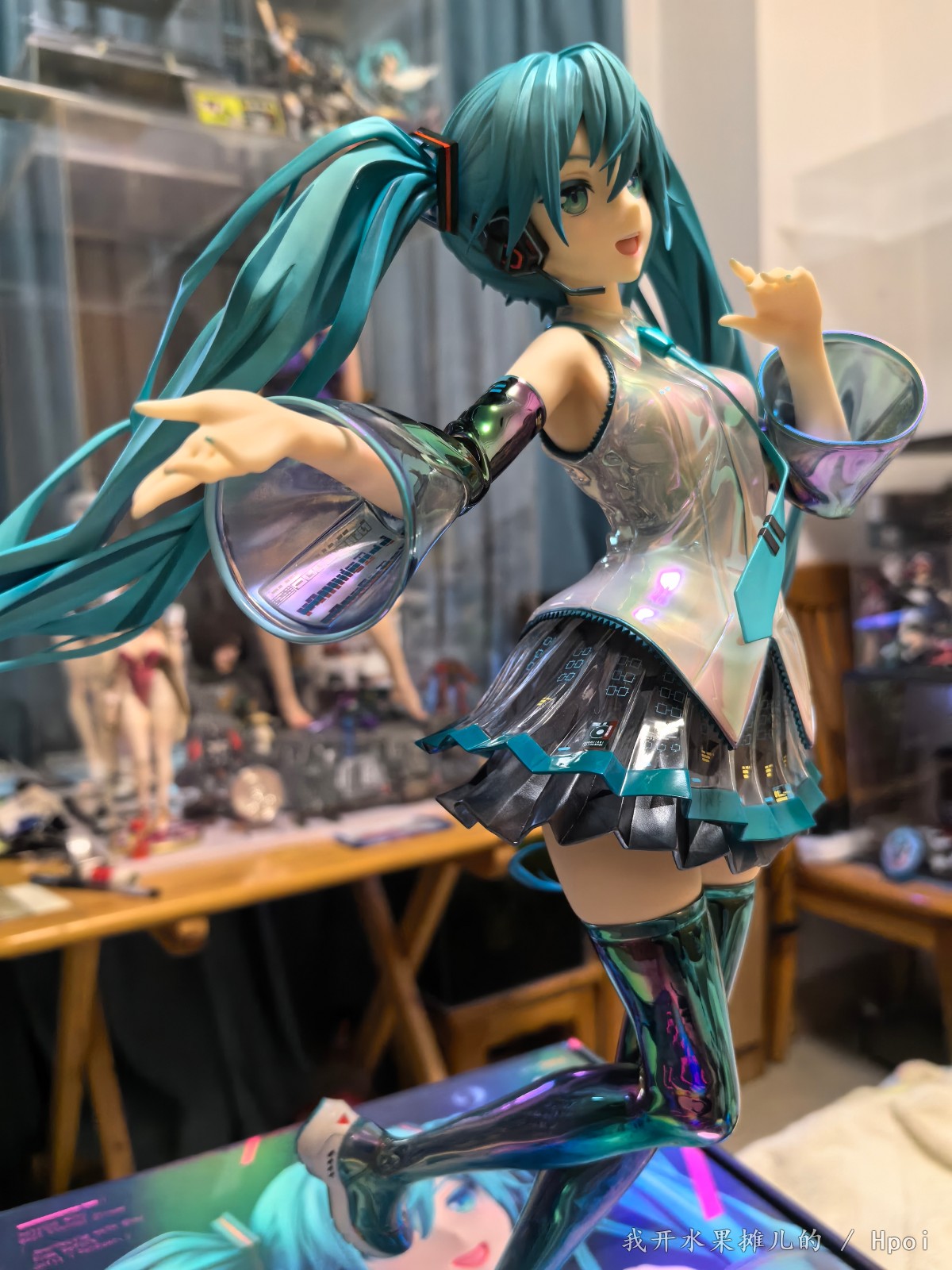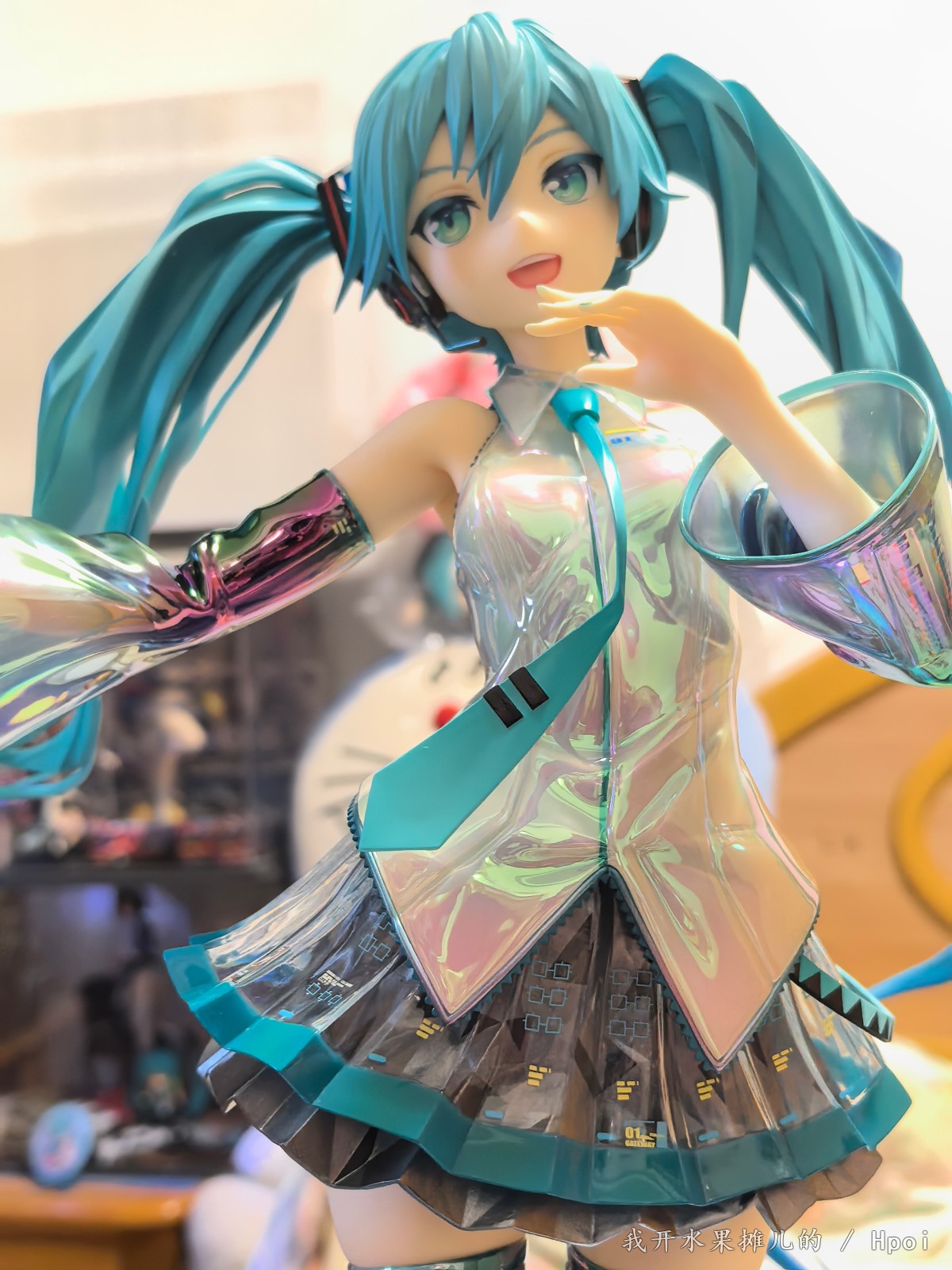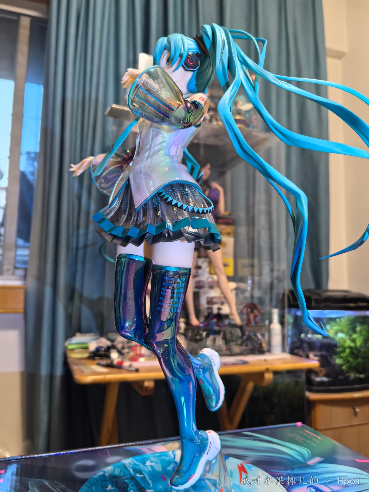 不过那都是之前的事情,最近Gsc的品控频频出问题,如我买的八音盒的初音,这个原画堪称殿堂级别的原画,因为做工用料的问题,头发容易塌。前段时间樱花初音也听说很多人的大腿出现了发黑的情况。很多人都在想这一款手办到底表现如何?有的人吐槽说这个手办太大了,然后脸啊,腿呀鞋子呀有问题之类的。现在呢就让我们一起来看一看这款1:4的gsc手办到底能够做到什么样的程度。