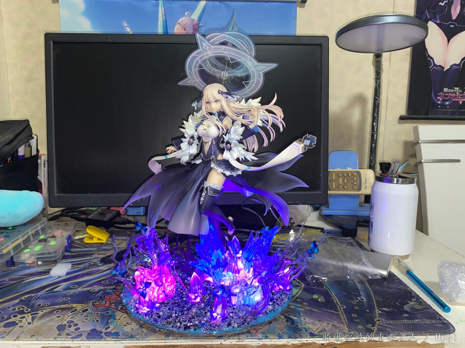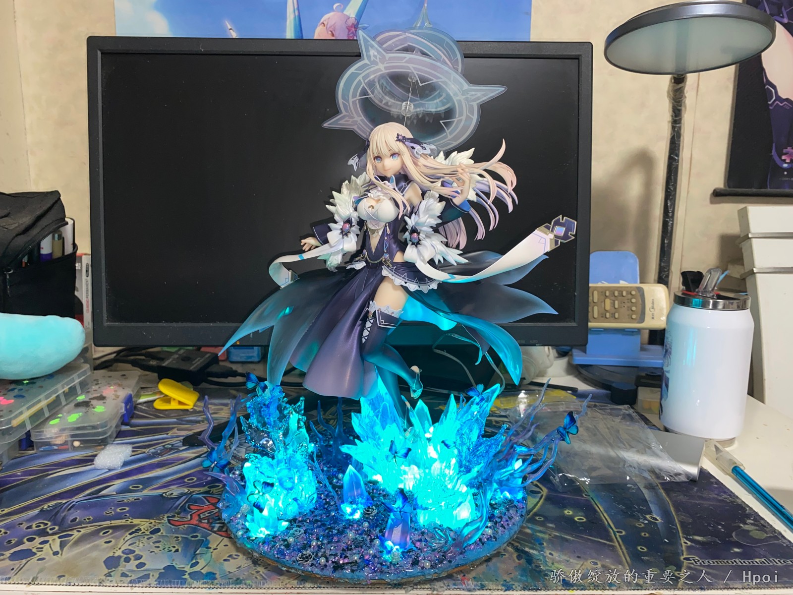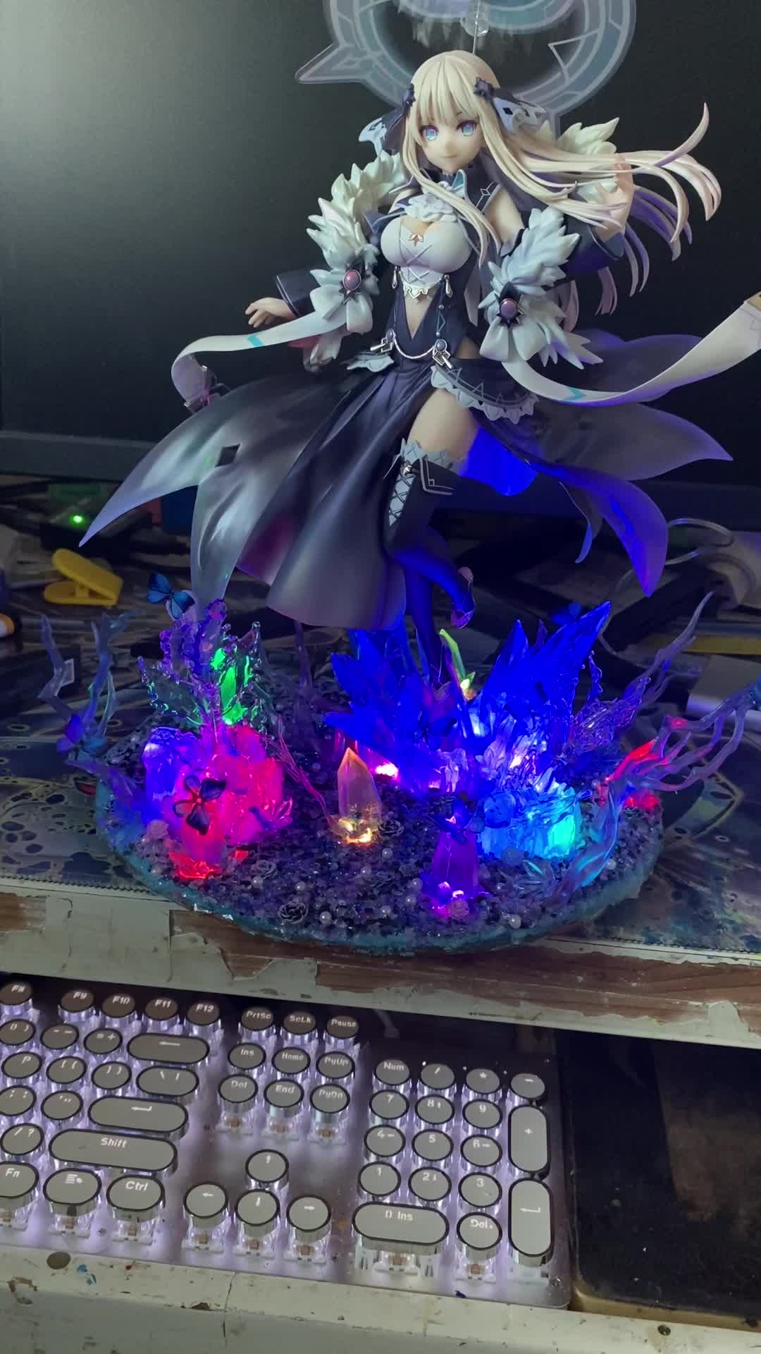 开个玩笑开个玩笑,这款没什么特典版,是我自己瞎编的。众所周知我是非常喜欢Tsunako画的角色的,海王星,约会大作战,妖精剑士f等等,这次当然也不例外。这款做的还是可以的,虽然小问题肯定有,不过瑕不掩瑜。但还是那个问题,底座稍微有点简陋,而且单脚桩还是斜的,装的时候就感觉不是太稳定。出于对单脚斜桩耐久度的担忧,我改了一个地台出来,并且这次做了两处隐藏的辅助支撑,在尽量保证不影响外观的同时,对手办本体进行辅助支撑,这下心里就踏实了。这次做地台也用了新的思路,也用了可变换颜色的灯组,效果确实比以前的那些地台提升了不少,总之自己还算满意。我拍照很烂,大家凑活着看一下吧,不喜勿喷。