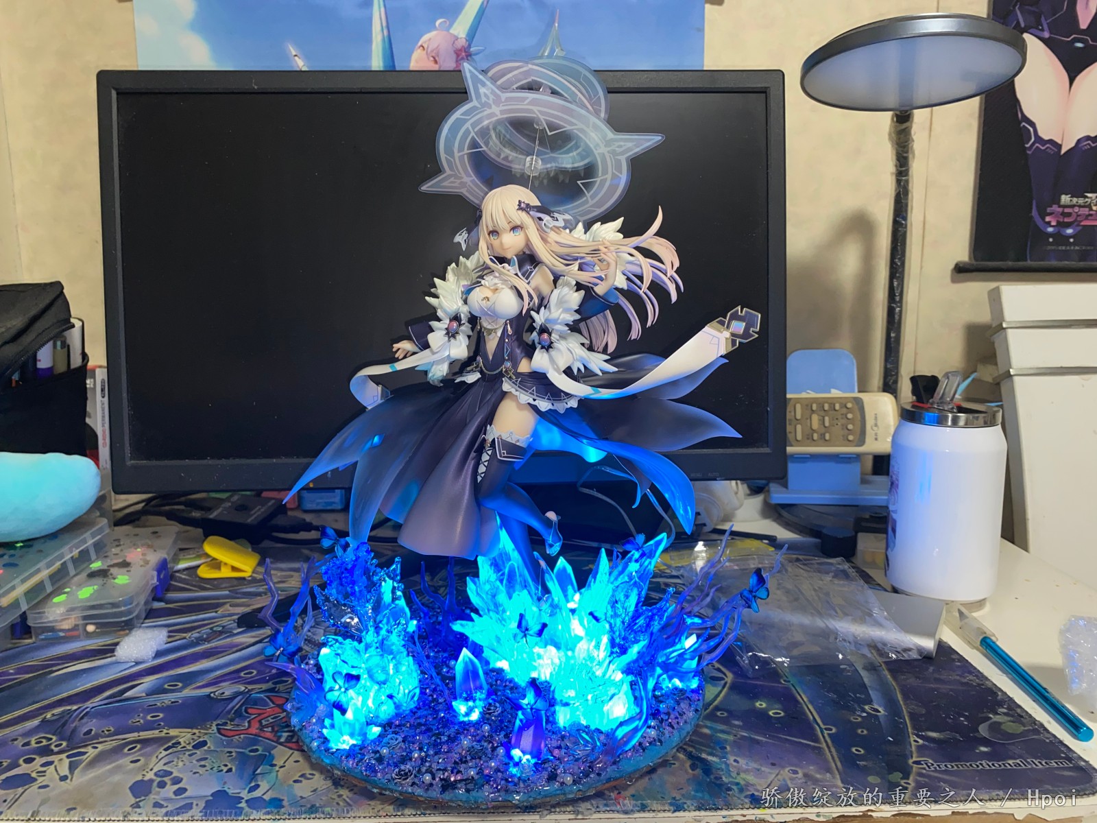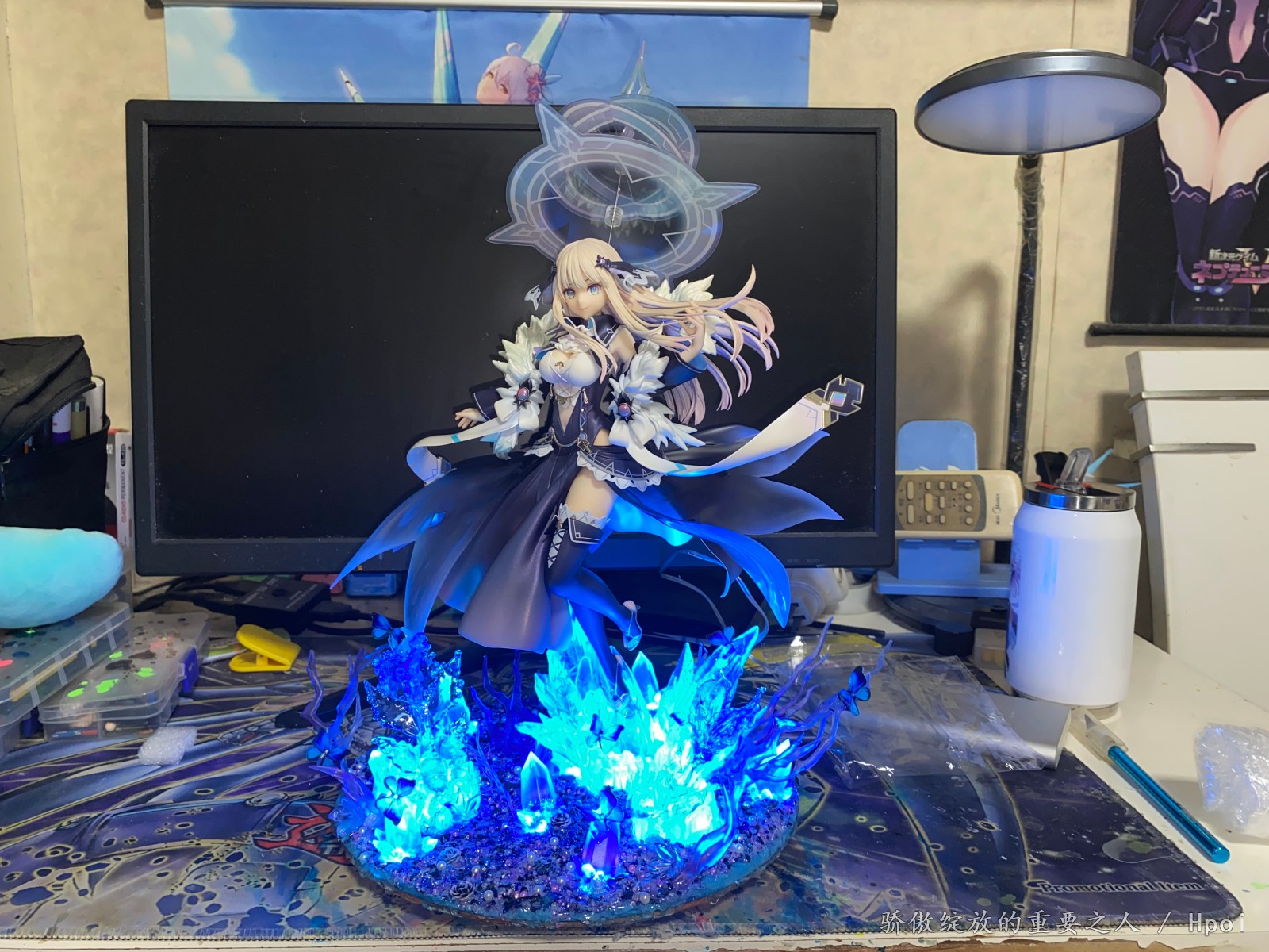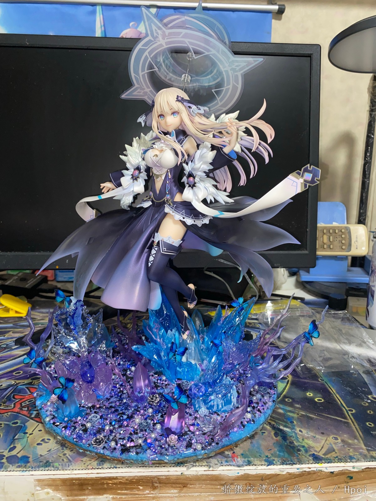 开个玩笑开个玩笑,这款没什么特典版,是我自己瞎编的。众所周知我是非常喜欢Tsunako画的角色的,海王星,约会大作战,妖精剑士f等等,这次当然也不例外。这款做的还是可以的,虽然小问题肯定有,不过瑕不掩瑜。但还是那个问题,底座稍微有点简陋,而且单脚桩还是斜的,装的时候就感觉不是太稳定。出于对单脚斜桩耐久度的担忧,我改了一个地台出来,并且这次做了两处隐藏的辅助支撑,在尽量保证不影响外观的同时,对手办本体进行辅助支撑,这下心里就踏实了。这次做地台也用了新的思路,也用了可变换颜色的灯组,效果确实比以前的那些地台提升了不少,总之自己还算满意。我拍照很烂,大家凑活着看一下吧,不喜勿喷。