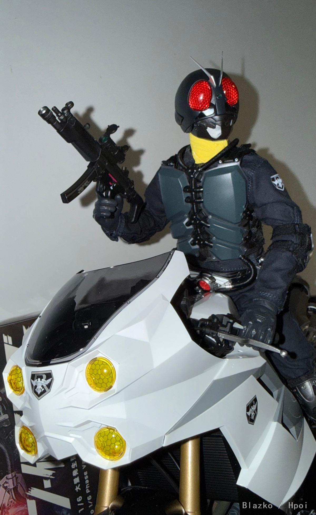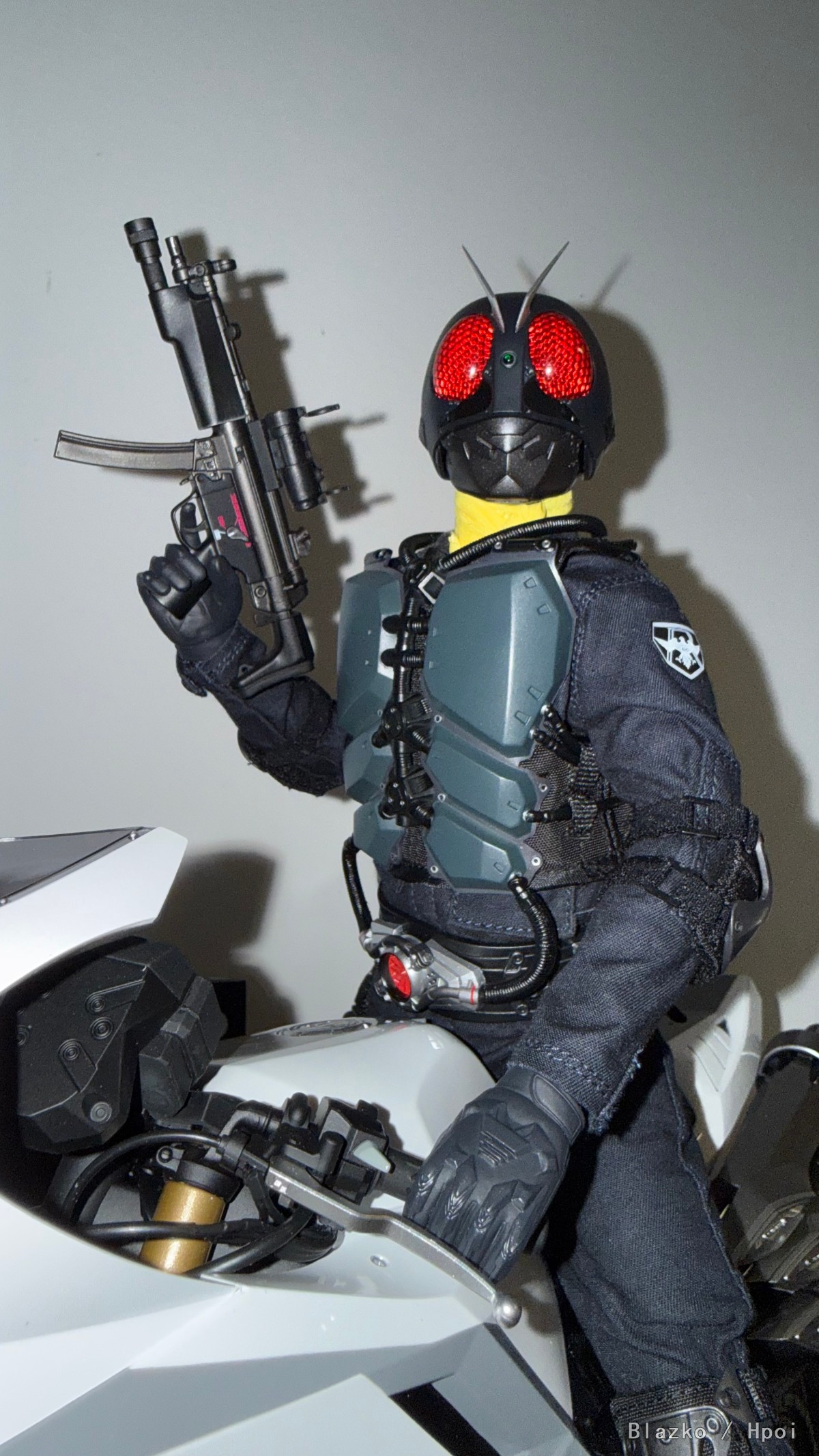 主武器用了Soldier Story的SS100纽约警局紧急勤务组MP5A5,然后配了FigZero的同比例量产蝗虫人摩托。这版修卡骑士保持了恰到好处的战术感和非人感,痞子总是在一些奇怪的地方保持着高审美水准。