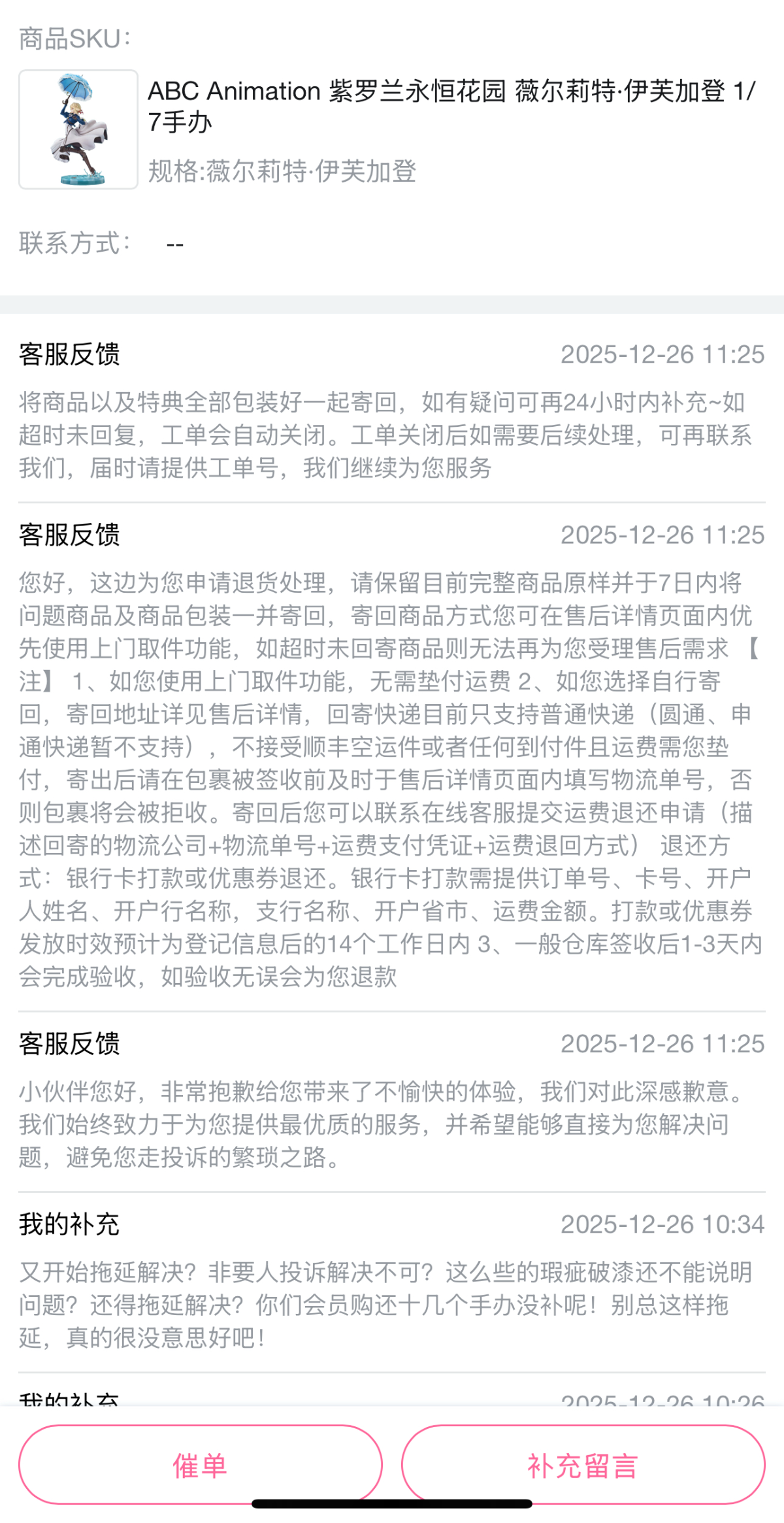 完结撒花,我退货退款了,非逼得我真要投诉了才抓紧处理是吧?这不是可以立马处理吗,拖延什么拖!(兄弟们,手办一定要录制开箱视频保留证据,有较多瑕疵一定要态度坚定,不然他们只会敷衍了事。)