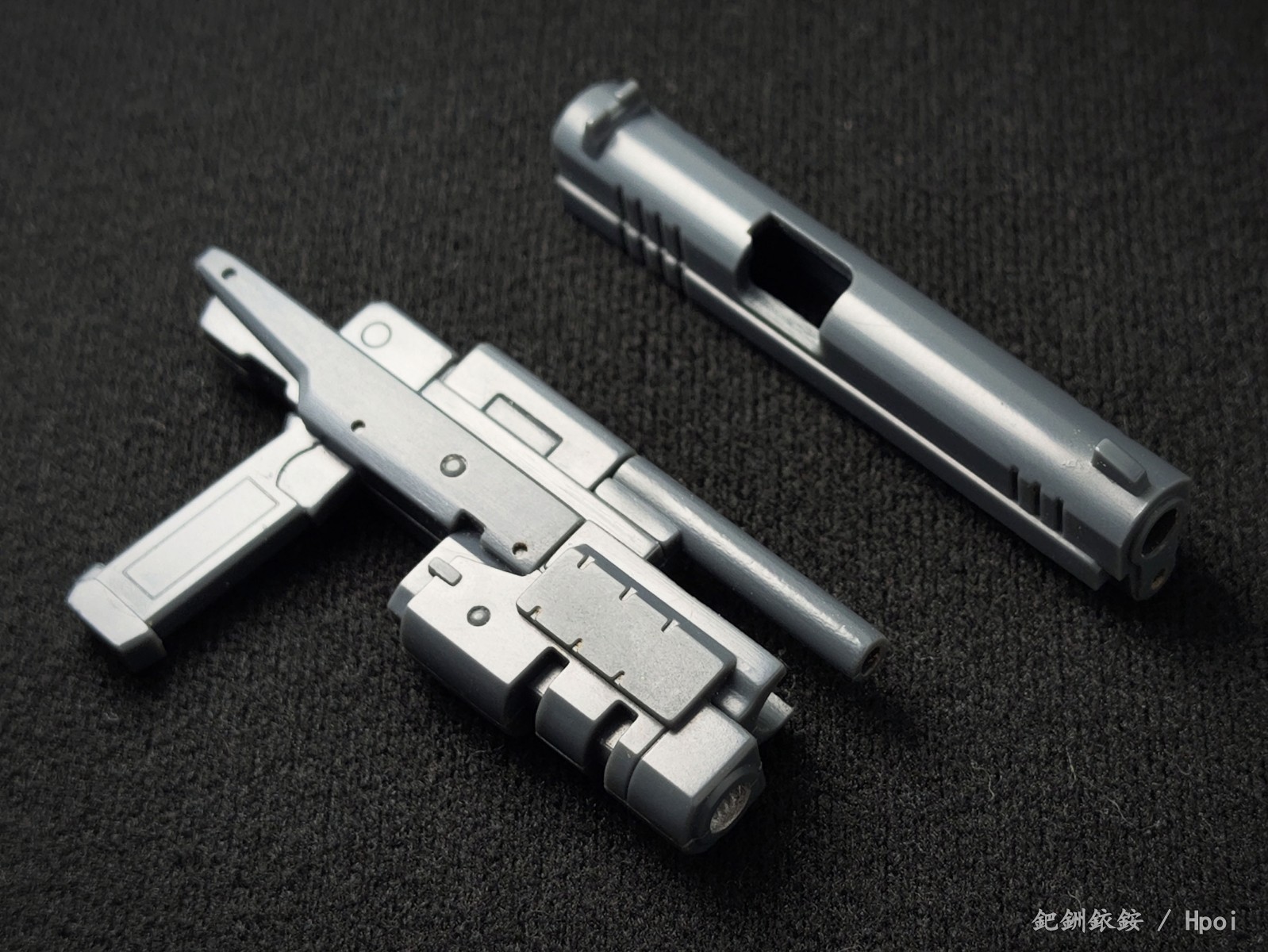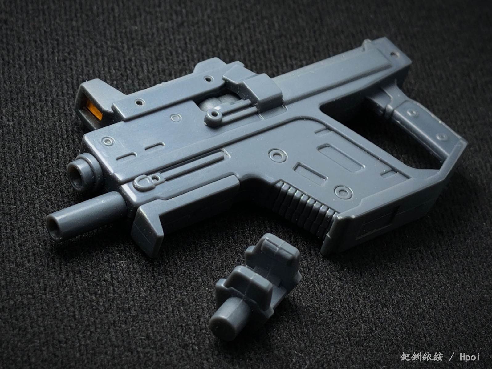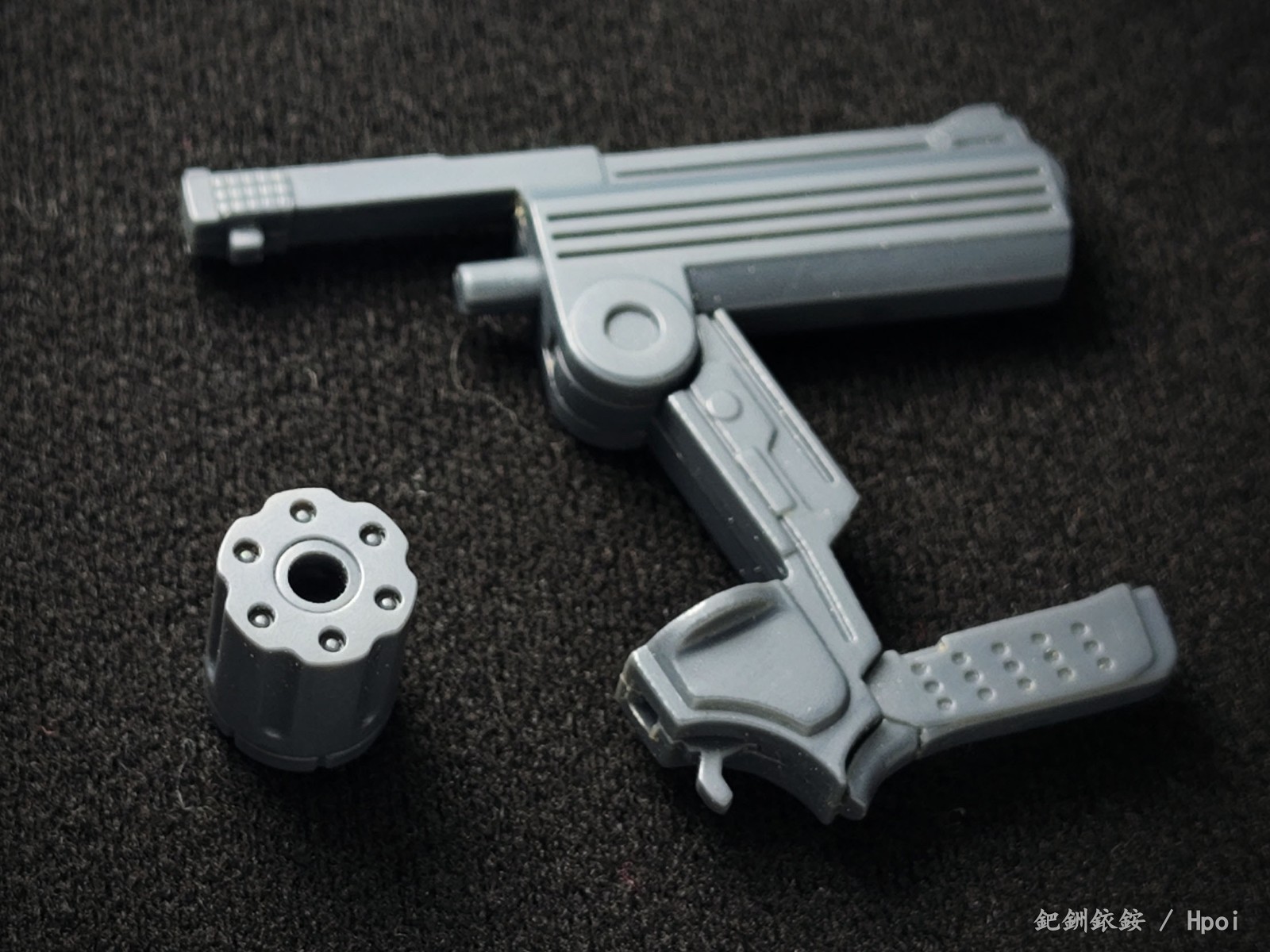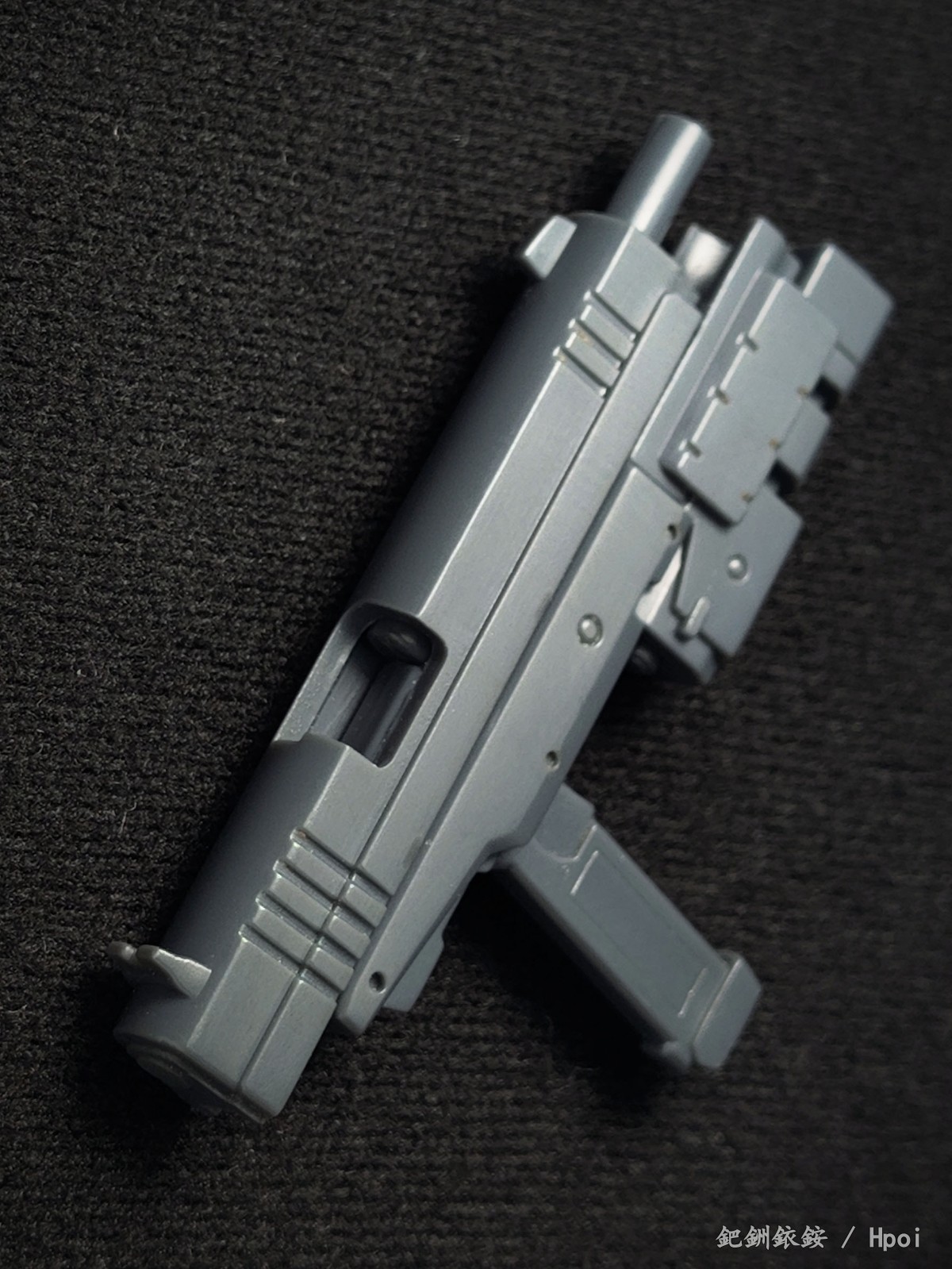 这套配件三把枪尺寸比较迷惑,只有冲锋枪比较适配1/144高达近似尺寸的人形使用者,两把手枪握把规格基本与冲锋枪相同但枪身总感觉大得有点离谱。除开本相册出现的使用者,JOYTOY的战锤40K星际战士拿这三把枪在尺寸上倒是不怎么违和(毕竟星际战士的标配武器本身就有点蜜汁卡通夸张比例),不过画风又不搭,就没专门拍了。