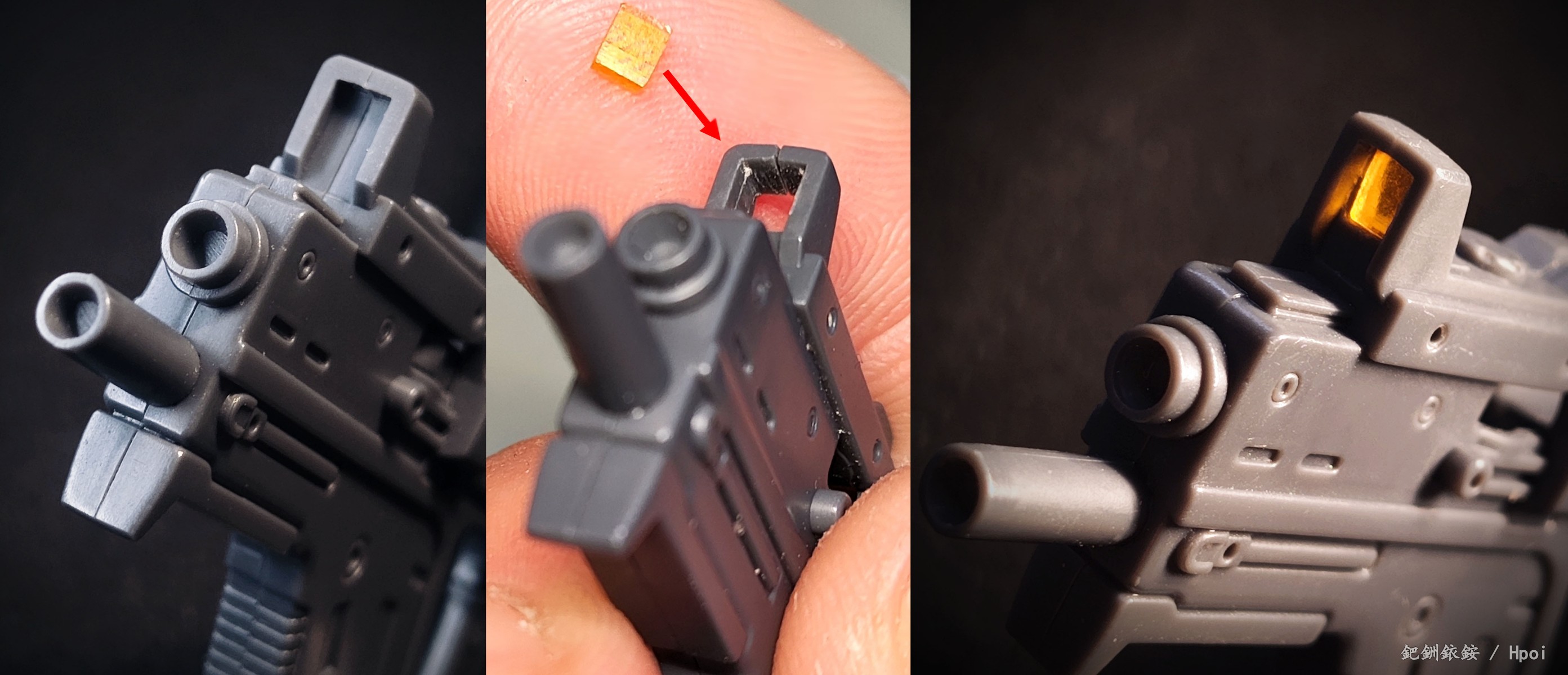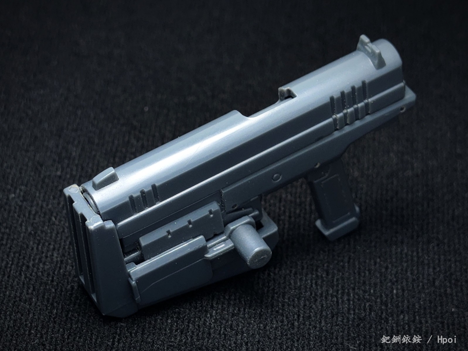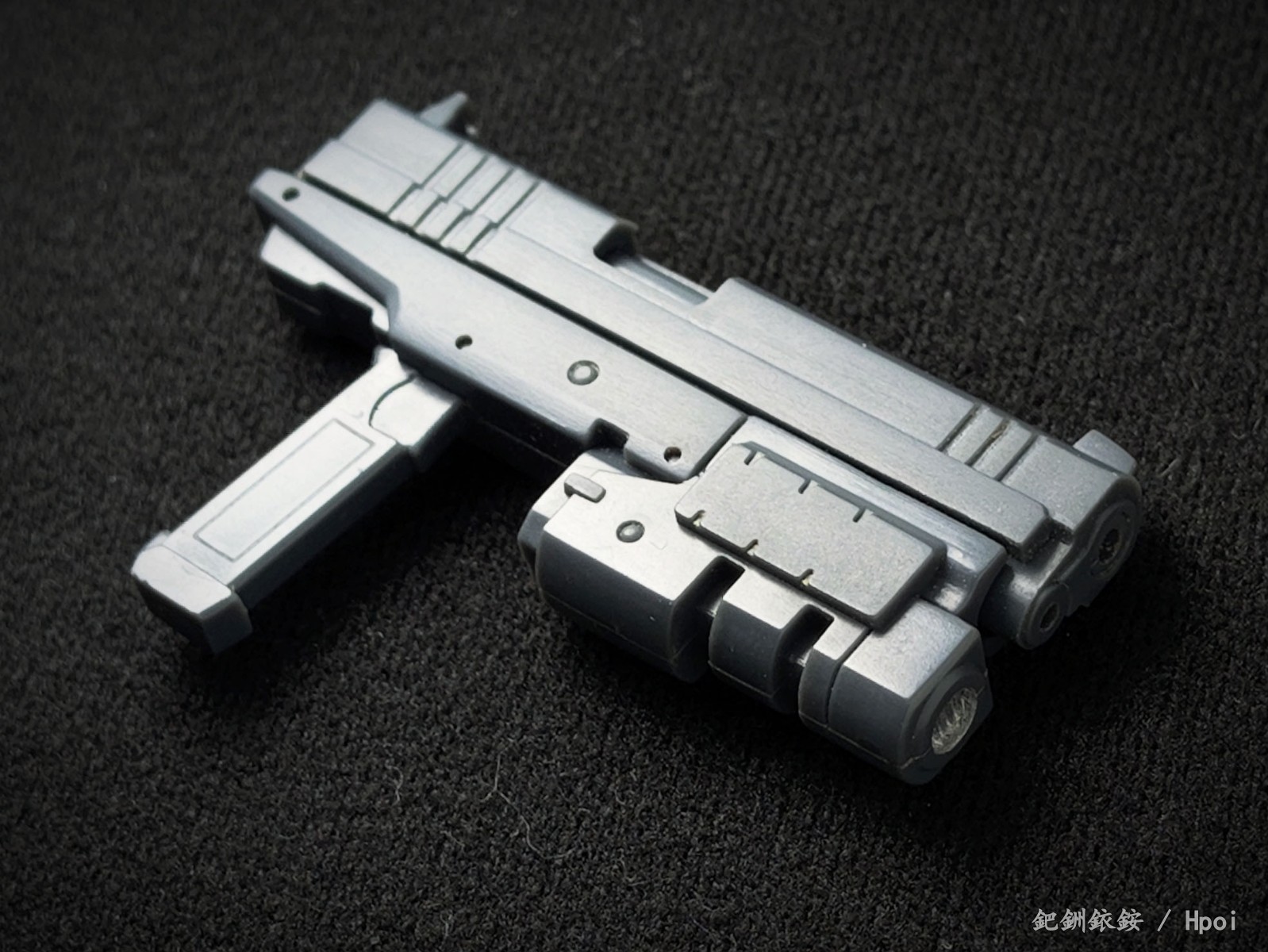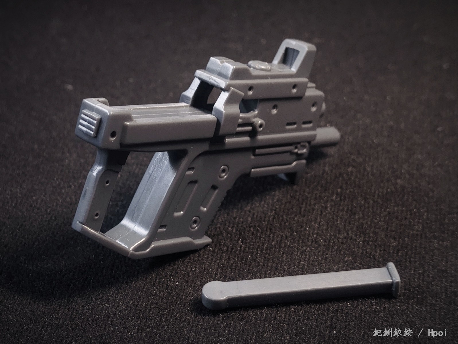这套配件三把枪尺寸比较迷惑,只有冲锋枪比较适配1/144高达近似尺寸的人形使用者,两把手枪握把规格基本与冲锋枪相同但枪身总感觉大得有点离谱。除开本相册出现的使用者,JOYTOY的战锤40K星际战士拿这三把枪在尺寸上倒是不怎么违和(毕竟星际战士的标配武器本身就有点蜜汁卡通夸张比例),不过画风又不搭,就没专门拍了。