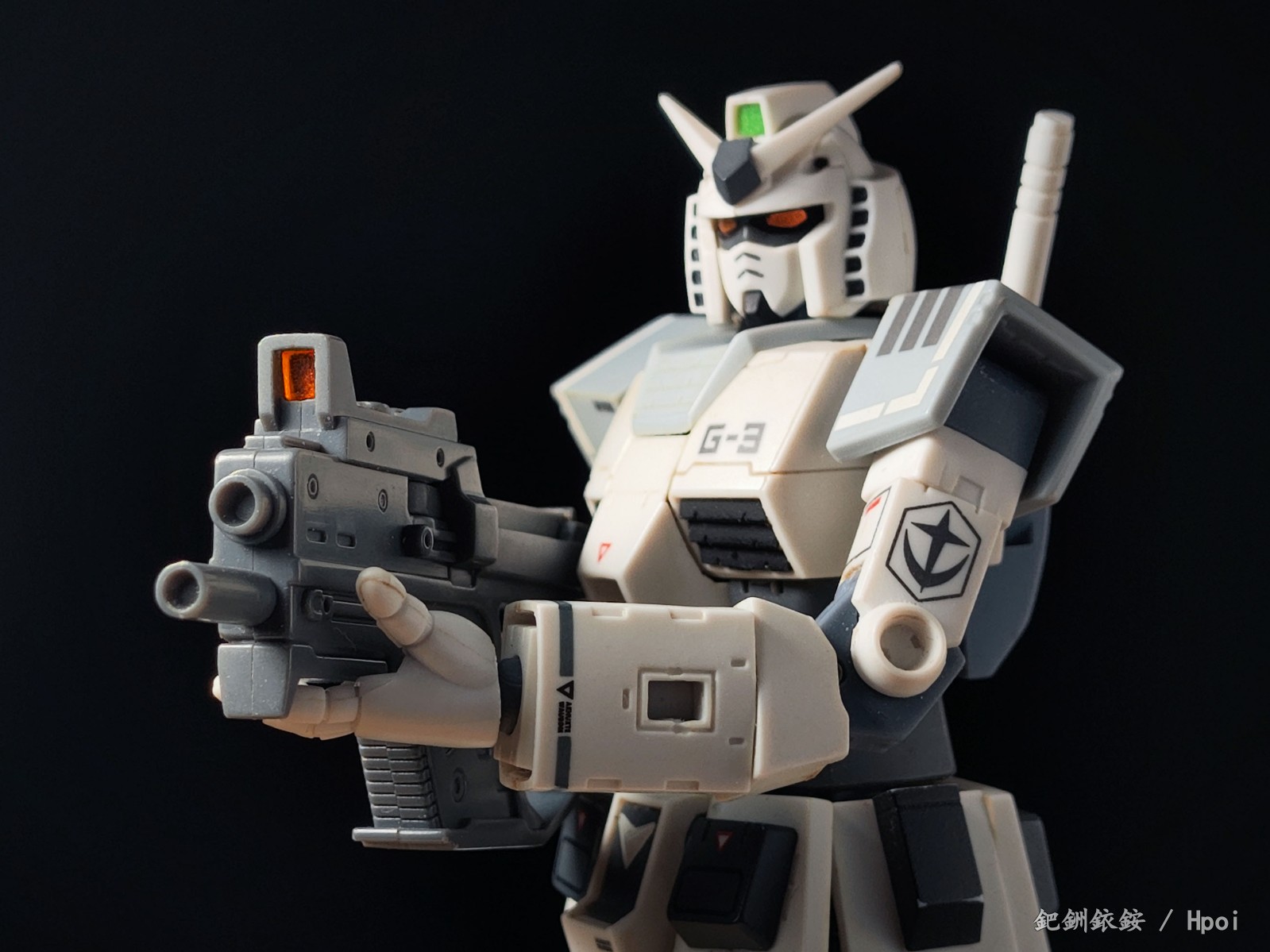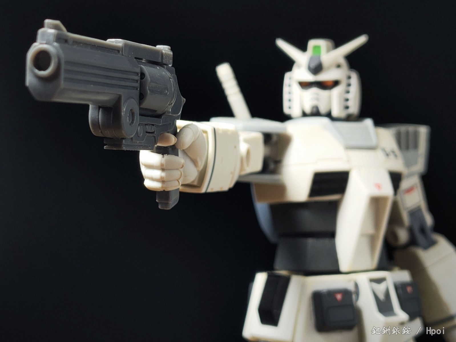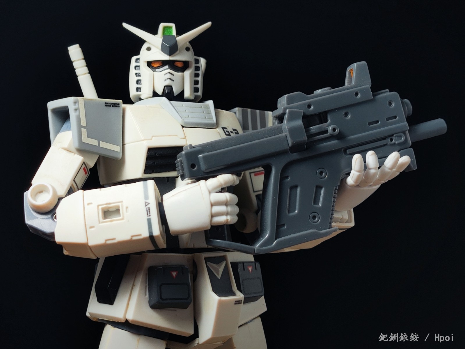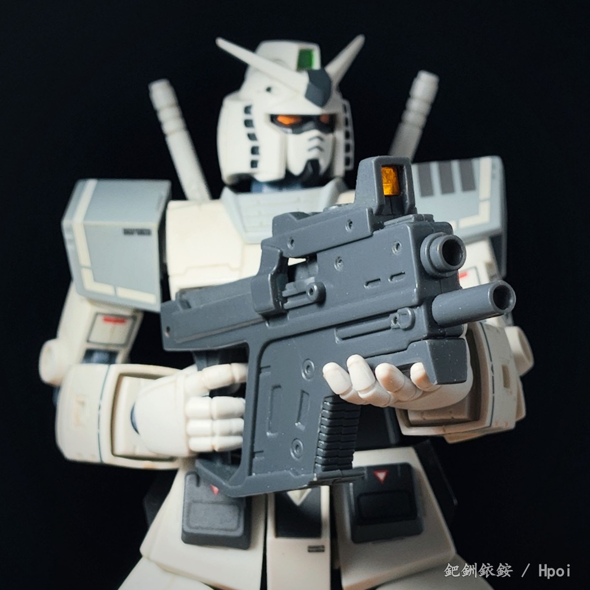 这套配件三把枪尺寸比较迷惑,只有冲锋枪比较适配1/144高达近似尺寸的人形使用者,两把手枪握把规格基本与冲锋枪相同但枪身总感觉大得有点离谱。除开本相册出现的使用者,JOYTOY的战锤40K星际战士拿这三把枪在尺寸上倒是不怎么违和(毕竟星际战士的标配武器本身就有点蜜汁卡通夸张比例),不过画风又不搭,就没专门拍了。