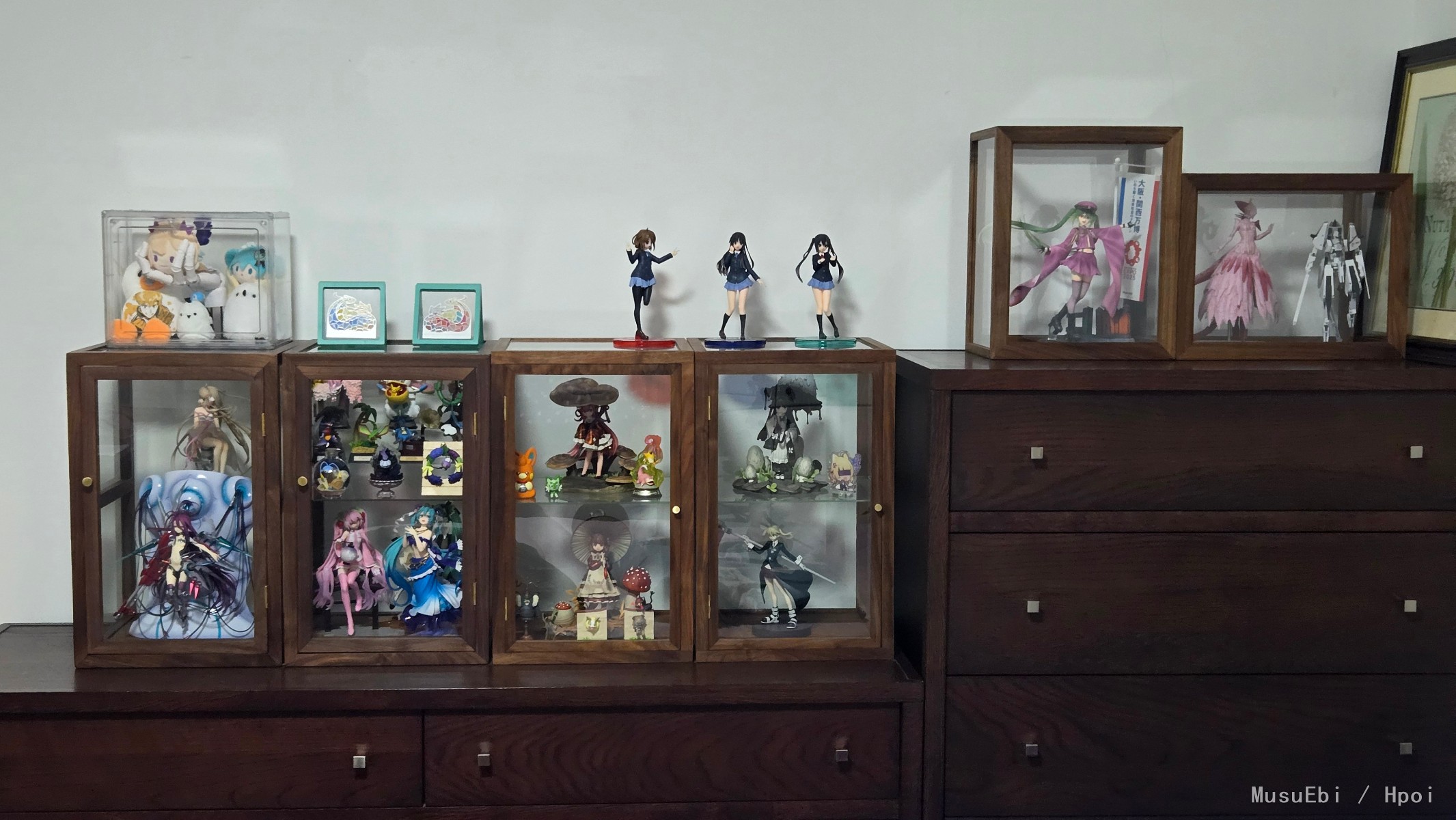 现在看看在自家客厅摆的柜子真是啥也不懂,买的又小又暗,每次想拍两张都觉得很难绷。 柜子爆了以后开始在家里搭积木一样买小柜子也不是很能根本上解决问题,只能等过两年看看有没有地方搞个一整面墙的大柜子来解决了。