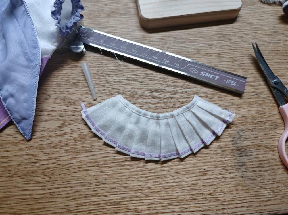 然后就是这外衣,腰部太宽松了,导致左边下摆是歪的,拆了扣子往外边挪,虽然导致腹部的布料多了没法突显胸部,裁了又不好看,搁置;从胸部到脖子的一圈外衣边也用装着熨头的电烙铁烫了遍