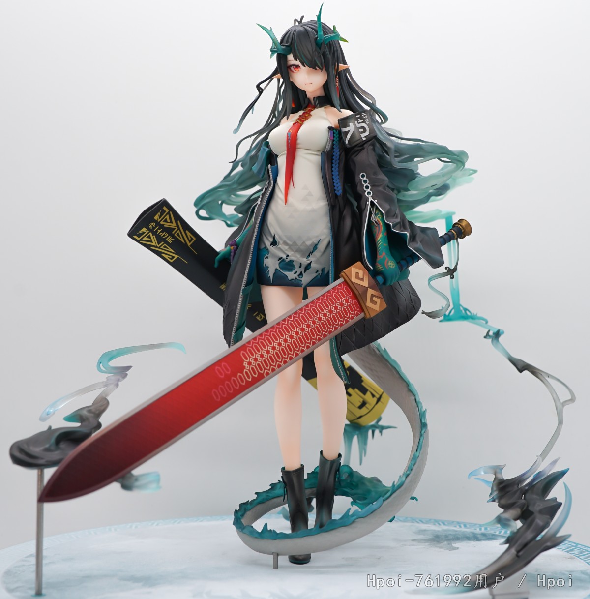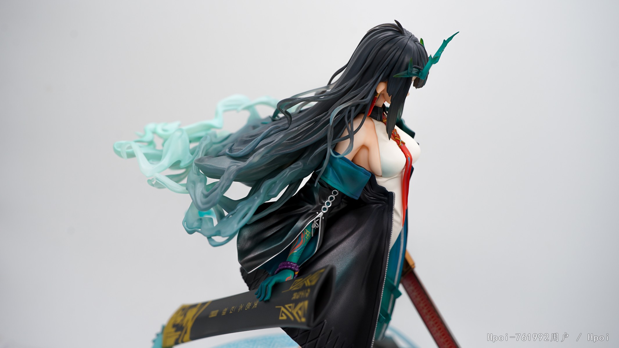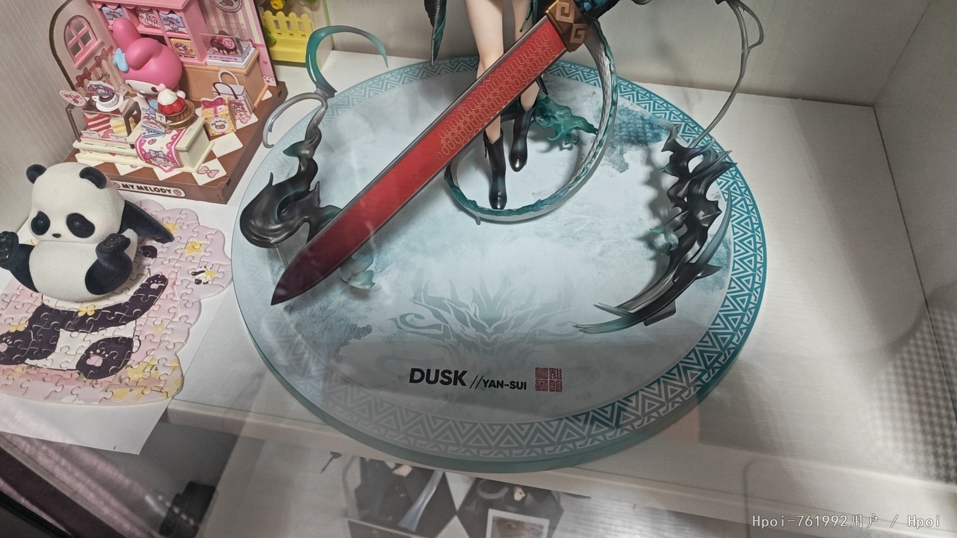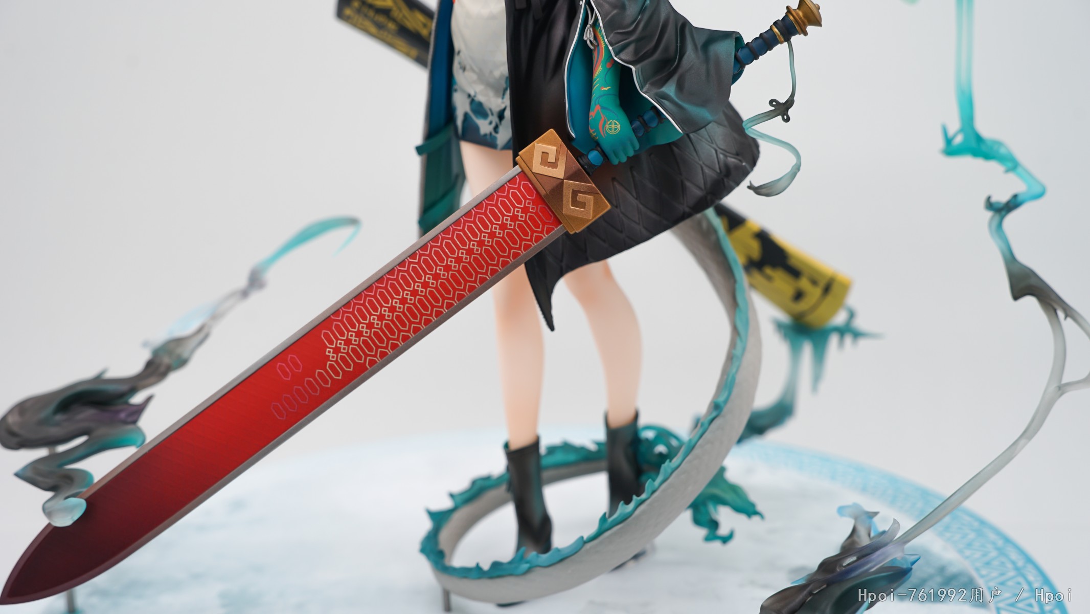 正面,只能说符合预期吧,除了头发和侧乳都还不赖,目前在夕宝的手办中属于最还原的一款。 剑鞘的细节非常好,符合一线大厂的水准!头发的细节,确实不够精细也没有那么的一坨。官方出荷的头发实在是太油了,个人不太喜欢那种油腻的质感,喷完消光后感觉还不错呢! 衣服上的细节与层次感做的还行,几乎没有什么瑕疵.最不满意的一个地方,侧ru的线条太明显了,还不如不漏ε=(´ο`*)))唉!!最后吐槽一下这个比面盆还大的底座差点没放进去,大A是觉得定价不合理所以才用这么大的一块白塑料!??