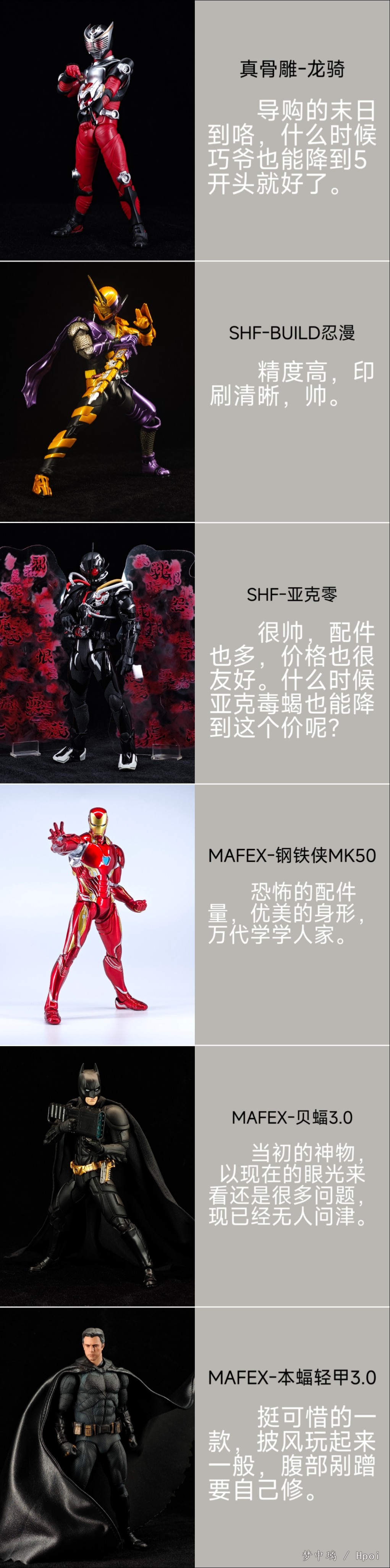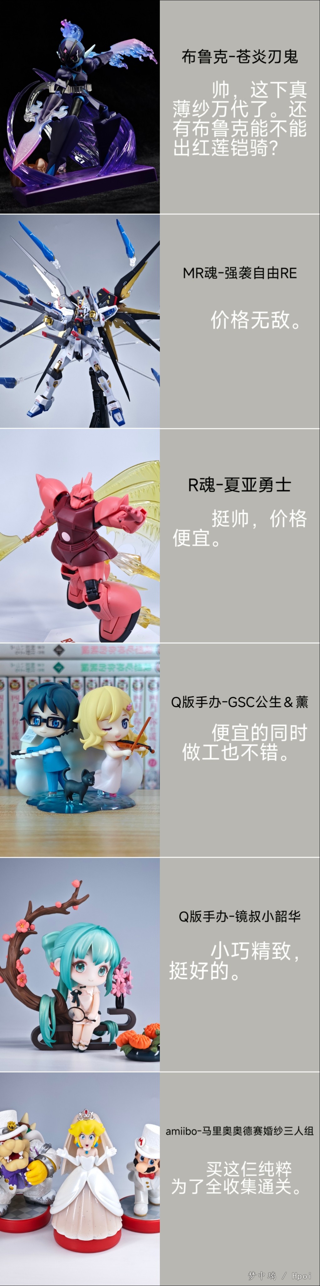 今年的消费欲望进一步降低,最后附上对2025年购买的所有玩具的简单评价,希望2026能买到更多更棒的玩具! 回顾一下2025的战绩: Q版方面,购买了10只粘土人、1只Qset+、1只镜叔; 手办方面,购买了4只正比手办和1只POP UP; 6寸人偶方面,购买了18只SHF、3只MAFEX、1只FIGMA、3只海洋堂、3只INART、2只良品制造、1只形刻、1只梵境,1只ML; 高达方面,购买了1只MR魂、1只R魂; 还有些杂七杂八的,购买了1只布鲁可、3只amiibo。