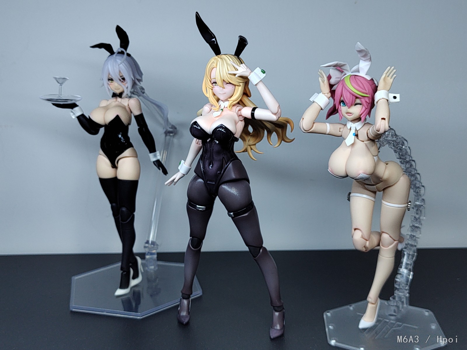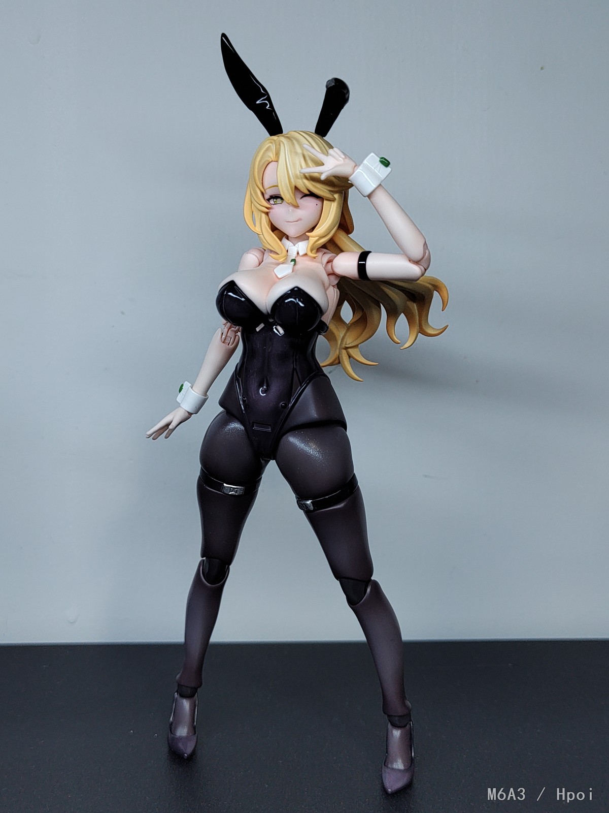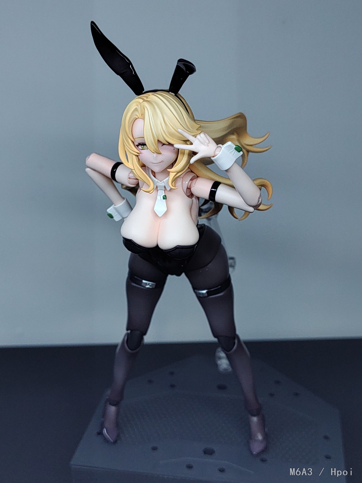 申請的補件至今消息全無(更新補件已發),只好自己動手修一下到能動為止,一般看還可以拍照還是有瑕疵 關節高跟鞋全部只用膠水黏貼,球關打磨和加油才能正常動作, 武器先不玩怕再斷,再跟自家女神兔随拍合照一下, 不得不說溯行兔這身材面雕真的太合我口味