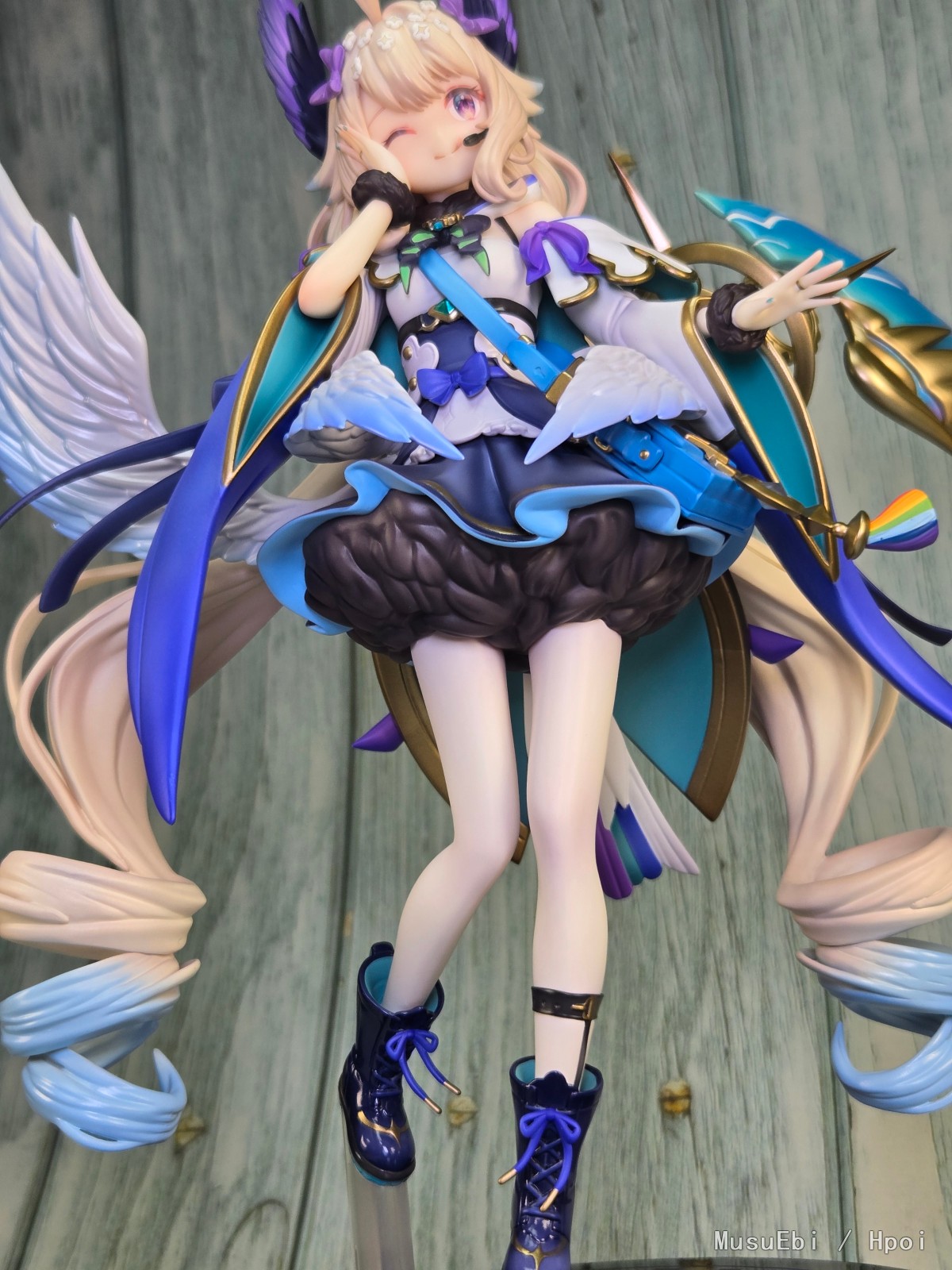 背后翅膀连接处不知道是裂开了还是缝就这么大,不过摆着也看不见就包容了。 下半身腿型还算不错但是裙下直接一大坨鸟毛就忽悠过去了,比彩虹社之前那些演出服的打底裤还难绷(
