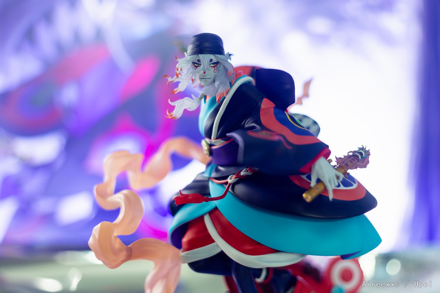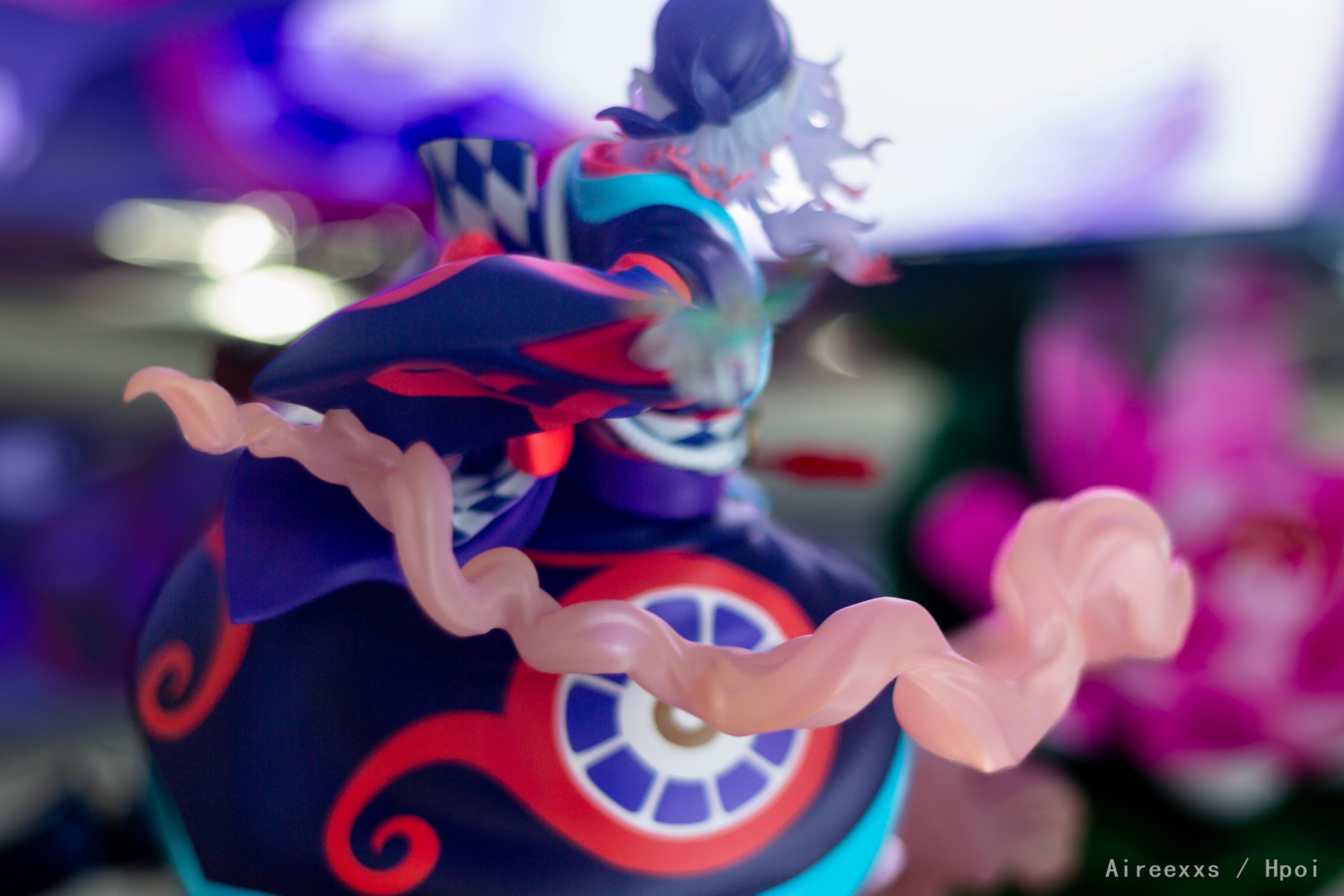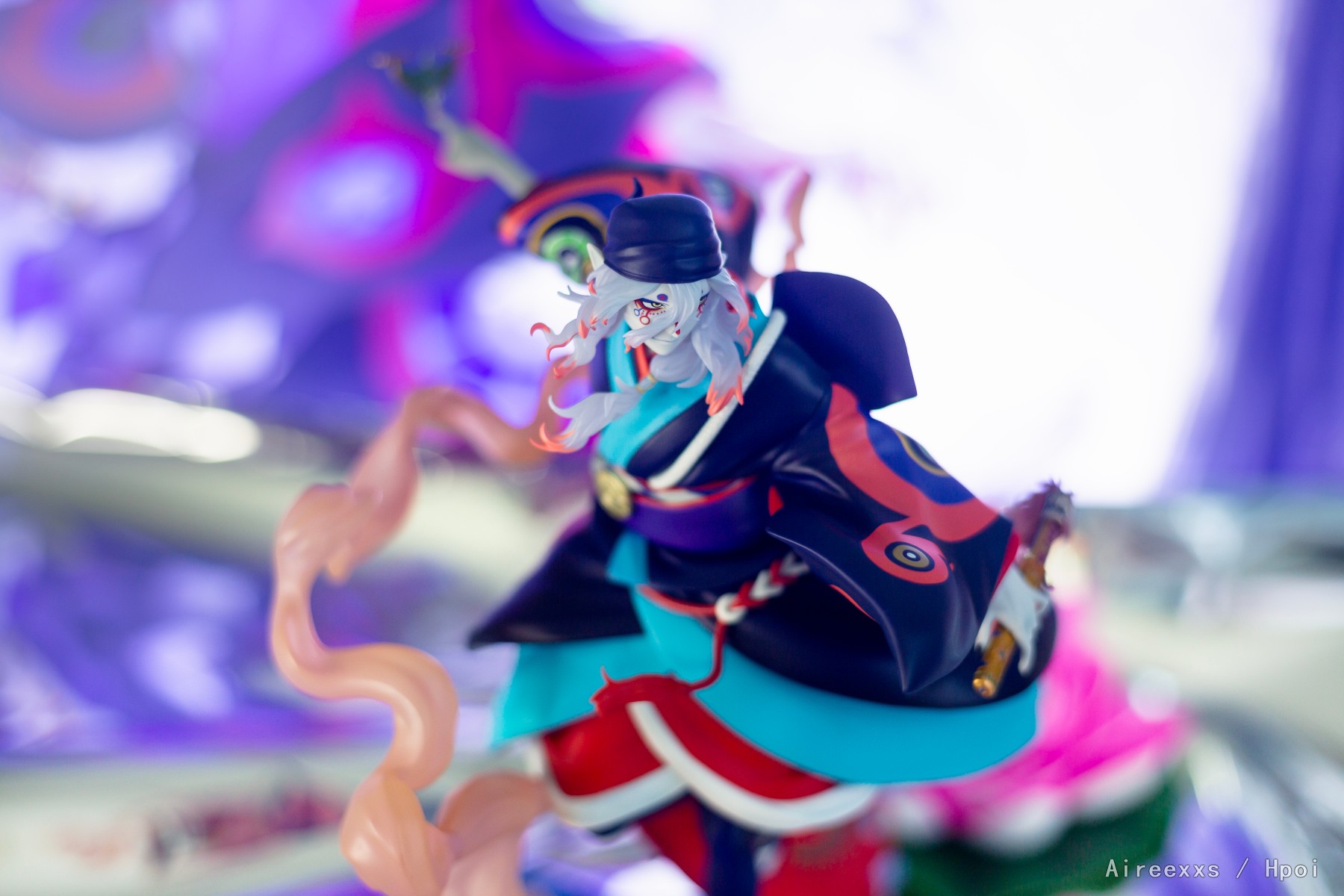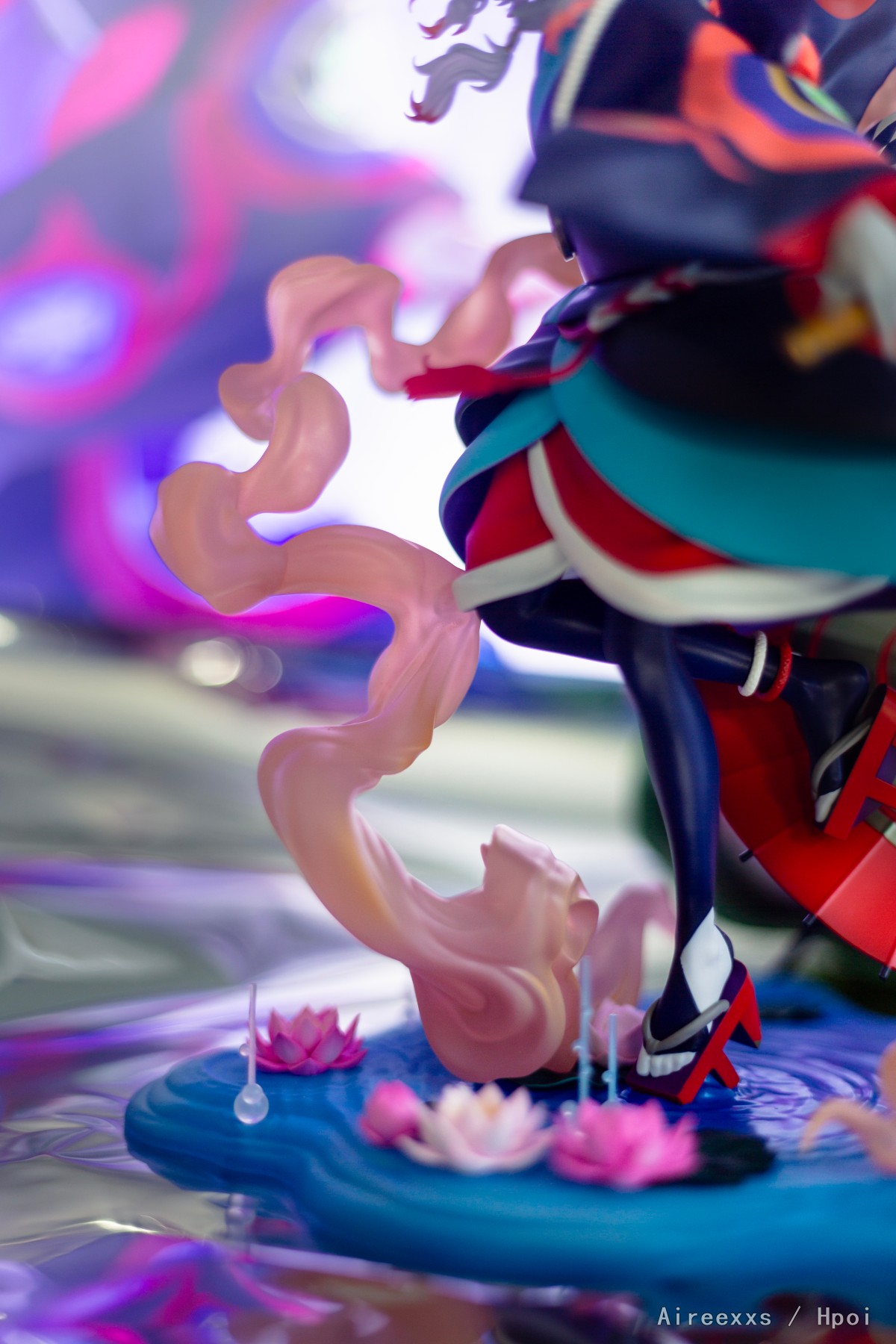 这款手办不仅仅是一件收藏品,更像是一帧凝固的梦境画面,由薄雾、舞台灯光与静谧交织而成。配色非常大胆:对比鲜明的青绿色、红色与深色调彼此并不冲突,而是构成了一个和谐统一的整体。涂装十分精致,边界清晰,所有细节都经过了细致入微的刻画。