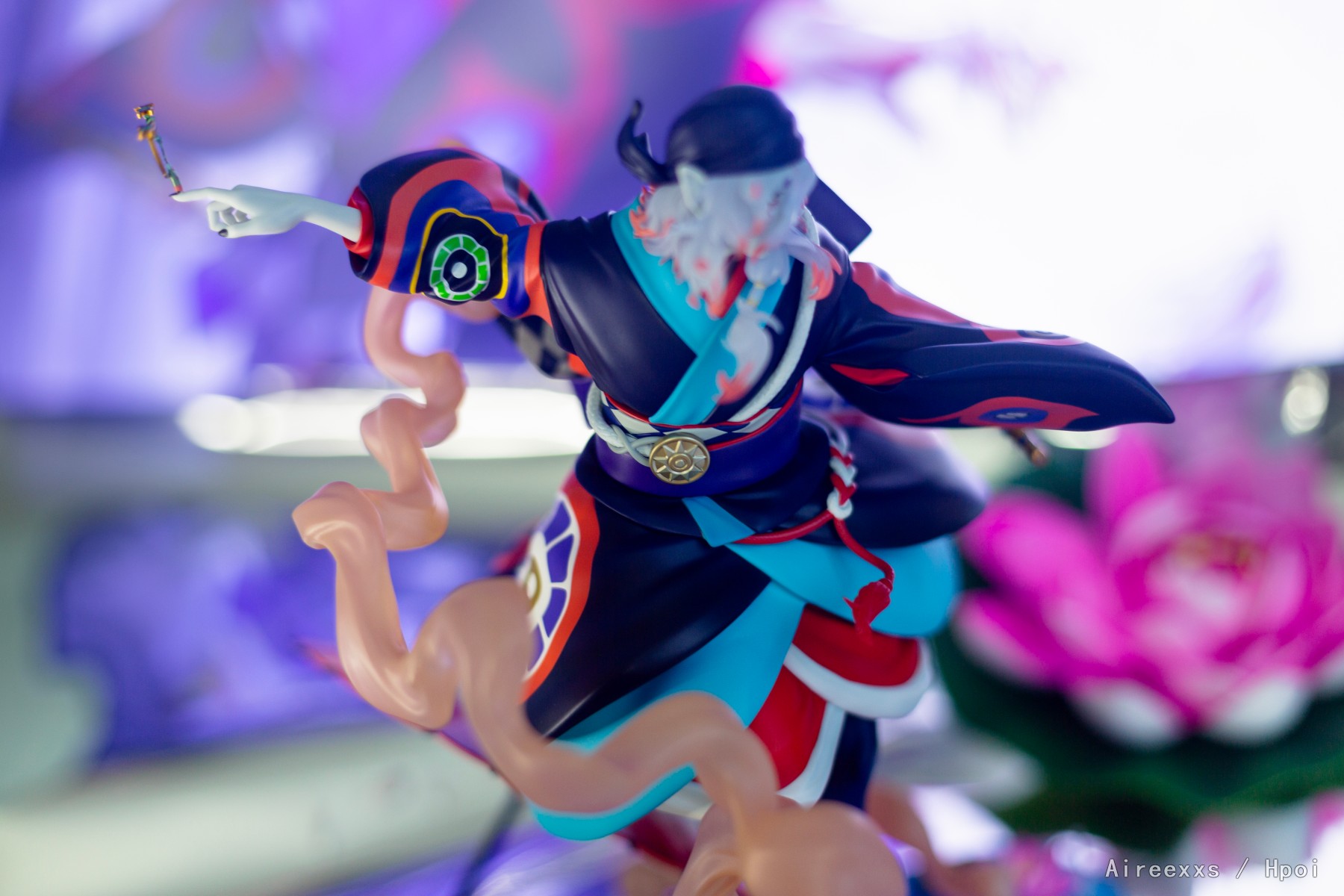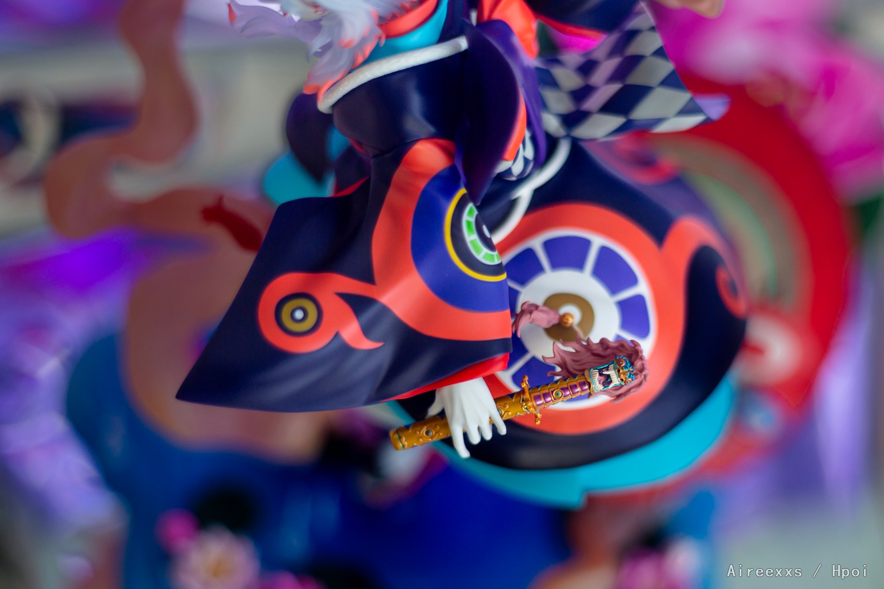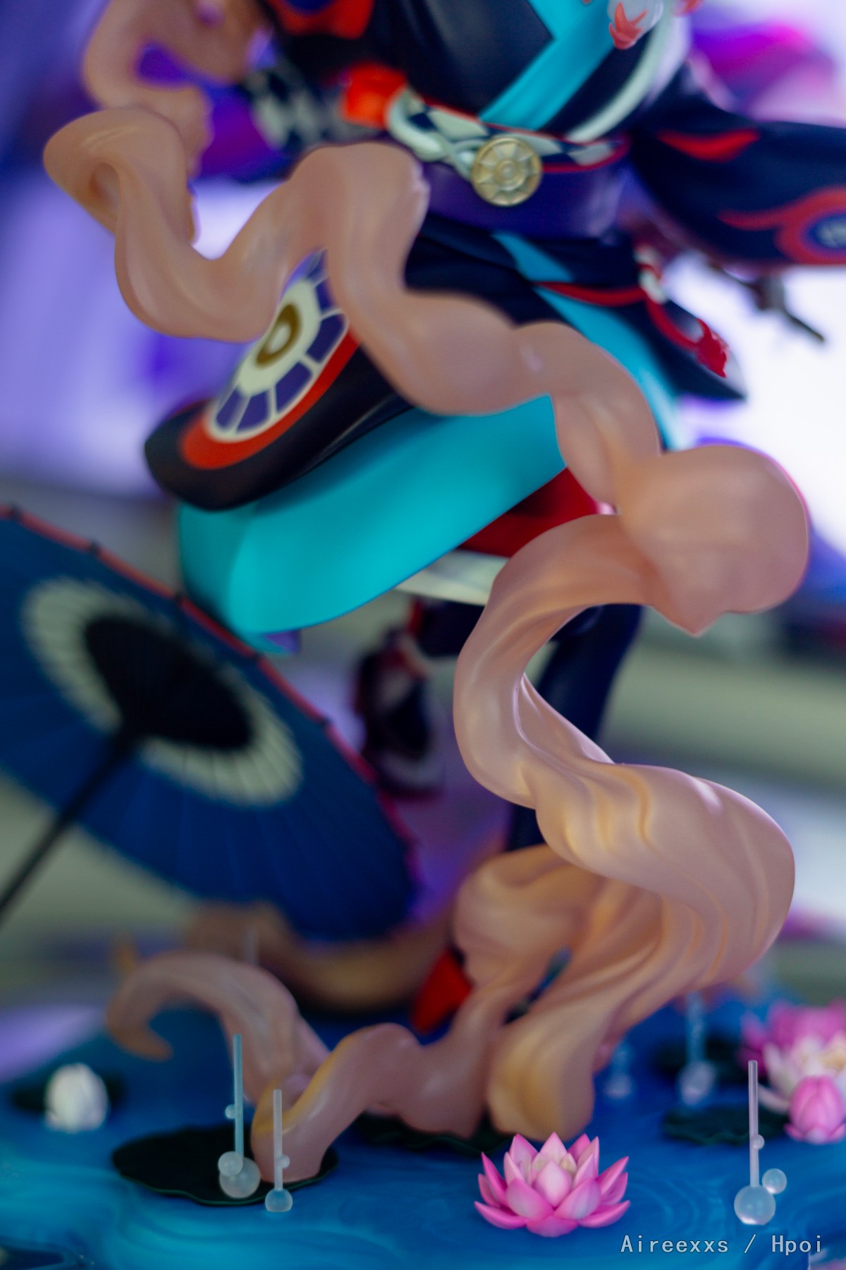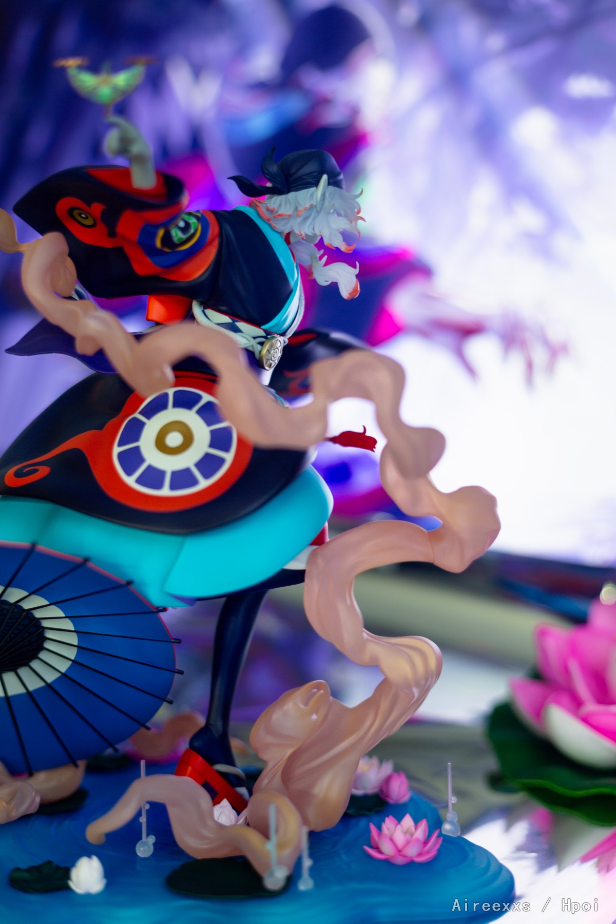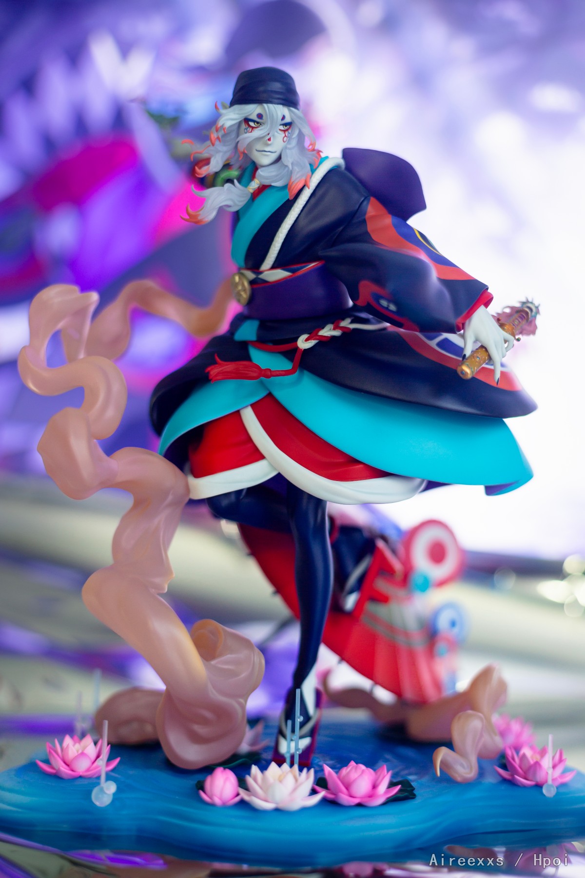这款手办不仅仅是一件收藏品,更像是一帧凝固的梦境画面,由薄雾、舞台灯光与静谧交织而成。配色非常大胆:对比鲜明的青绿色、红色与深色调彼此并不冲突,而是构成了一个和谐统一的整体。涂装十分精致,边界清晰,所有细节都经过了细致入微的刻画。