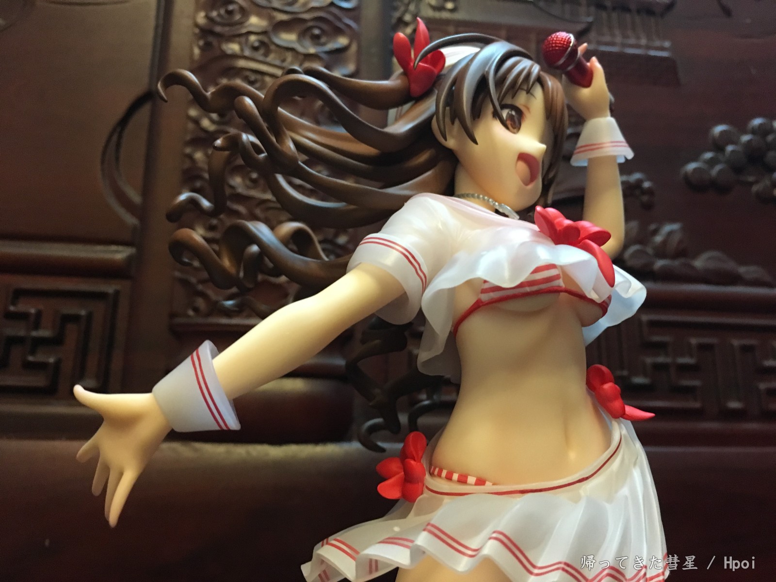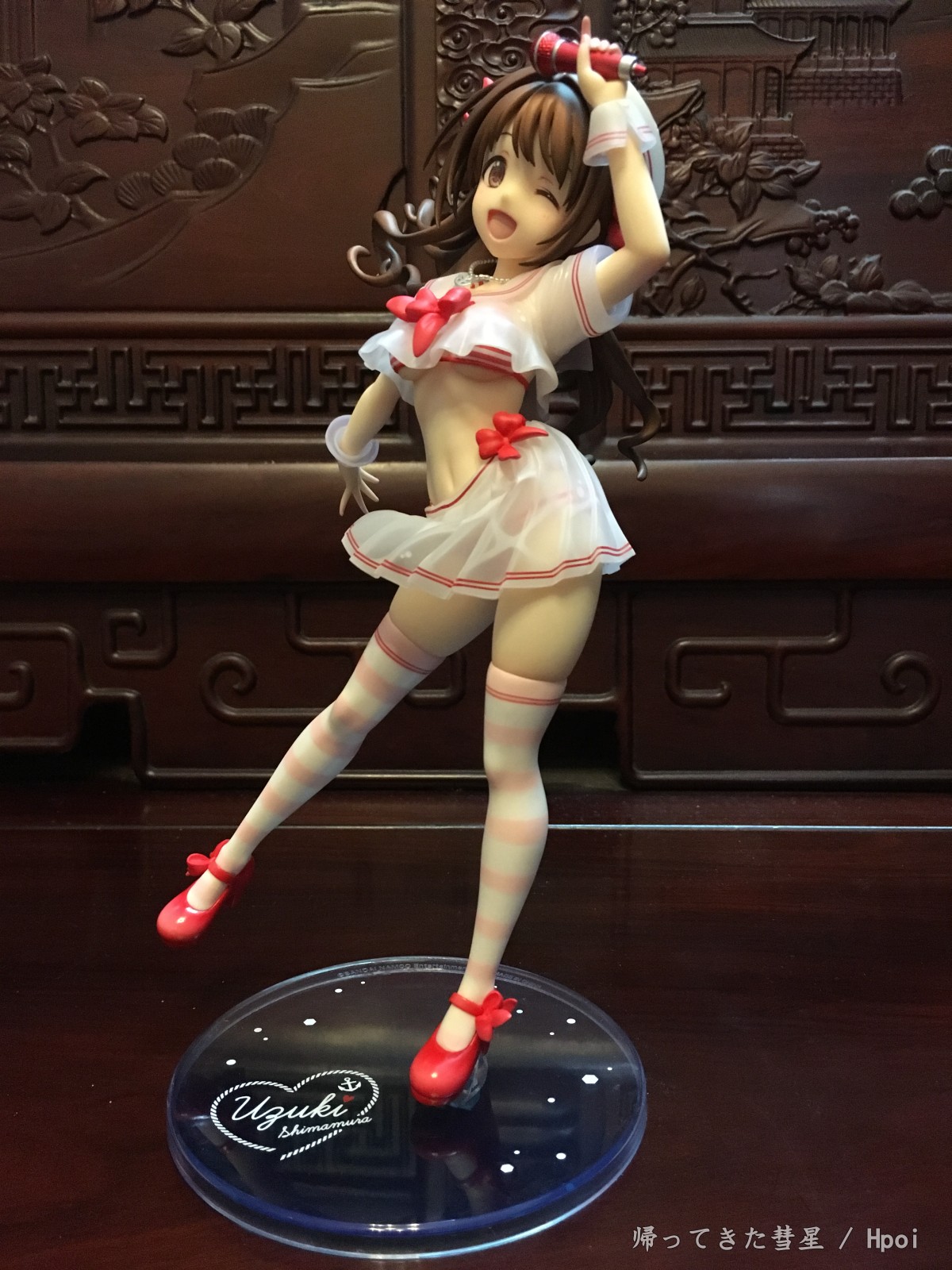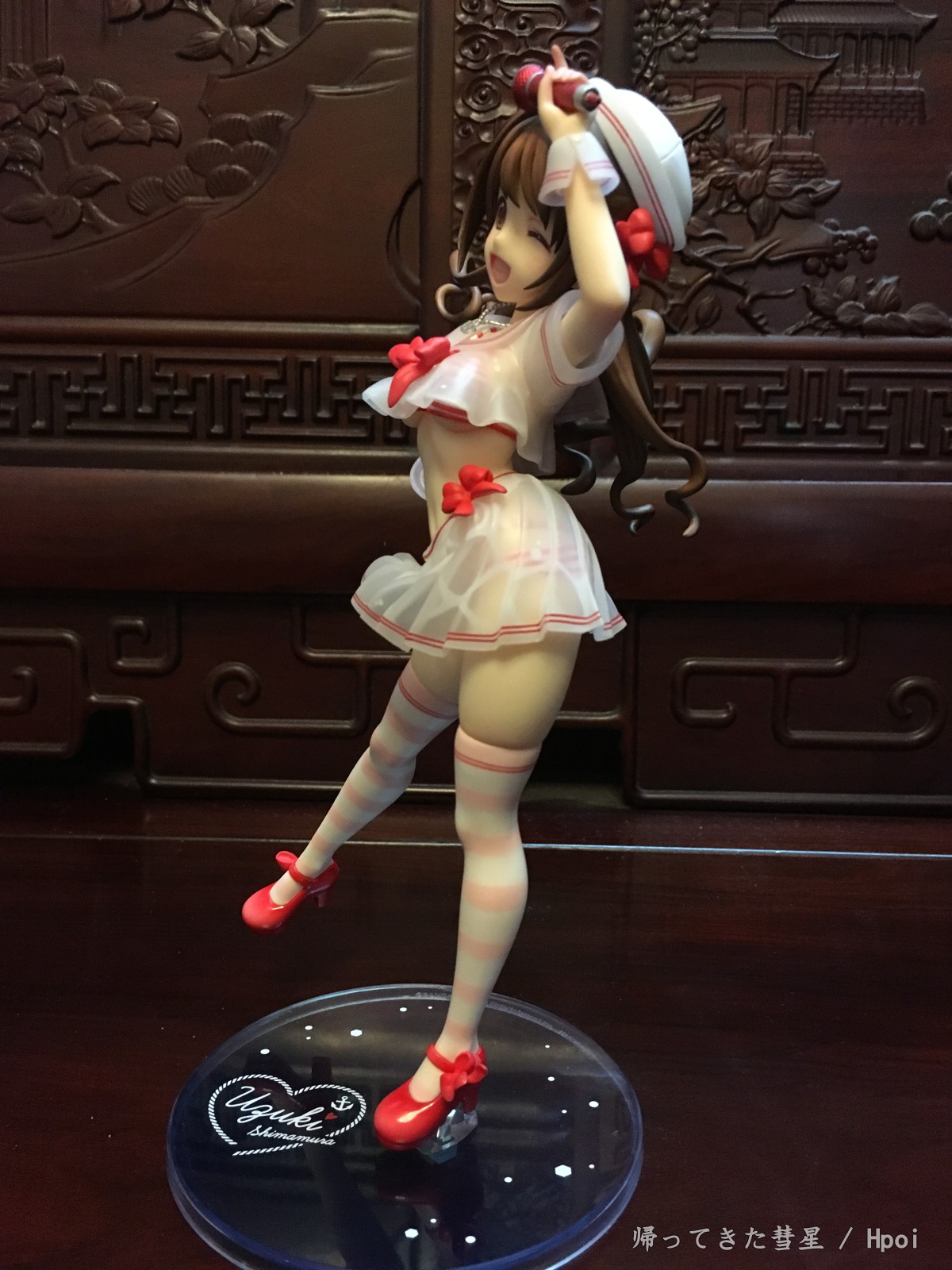 总的来说这款卯月真的很漂亮,天使般的笑颜,活力满满,飘逸的长发也是美美哒。绅士一下,欧派也很美型,典型的美乳啦,尤其这个有南半球(啧啧,超赞啦,我的最爱)。腹部的曲线线条处理的也很有层次感,加上大A的涂装功力,真的是完美呈现!最后底座虽然是偏简单,也是大A一贯风格了。但配上这个卯月还是观感相当不错的呢。要说唯一美中不足的话,就是乍看起来相当之还原了,但真的拍起来?我发觉似乎很难找到能跟原画一致的呈现角度呢[嗯,主要那个裙摆和胖次的露出度.. (~ ̄▽ ̄)~ ]。或许拍摄dalao们可以在尝试下?~