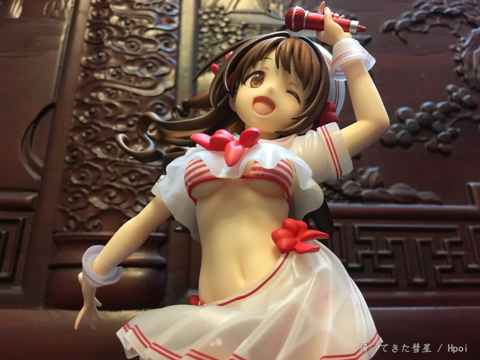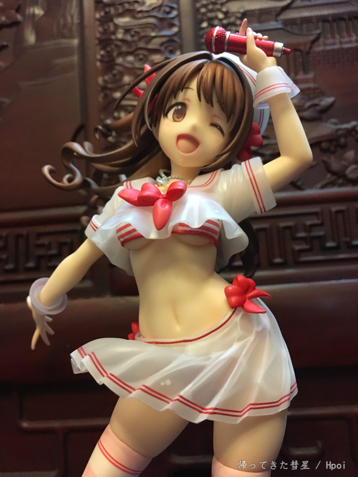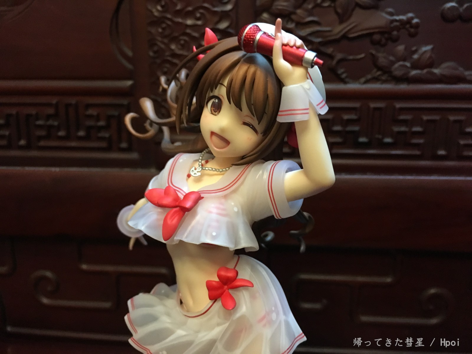 总的来说这款卯月真的很漂亮,天使般的笑颜,活力满满,飘逸的长发也是美美哒。绅士一下,欧派也很美型,典型的美乳啦,尤其这个有南半球(啧啧,超赞啦,我的最爱)。腹部的曲线线条处理的也很有层次感,加上大A的涂装功力,真的是完美呈现!最后底座虽然是偏简单,也是大A一贯风格了。但配上这个卯月还是观感相当不错的呢。要说唯一美中不足的话,就是乍看起来相当之还原了,但真的拍起来?我发觉似乎很难找到能跟原画一致的呈现角度呢[嗯,主要那个裙摆和胖次的露出度.. (~ ̄▽ ̄)~ ]。或许拍摄dalao们可以在尝试下?~