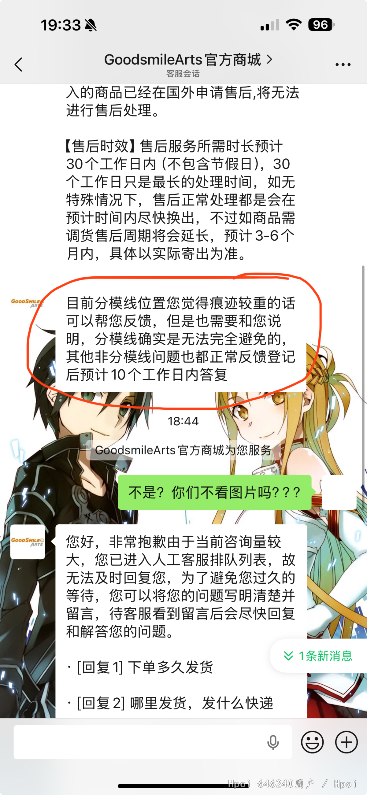 我发的哪里是分磨线问题????就这么敷衍回复???这叫售后???还等了24小时才回复!我滴妈!
