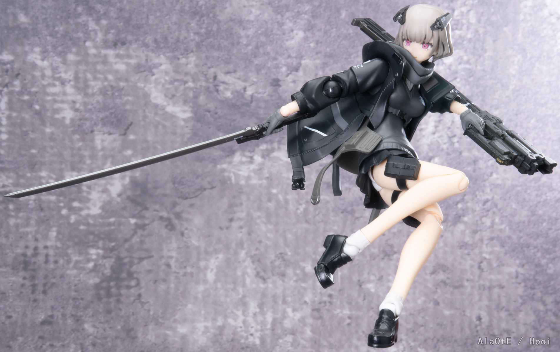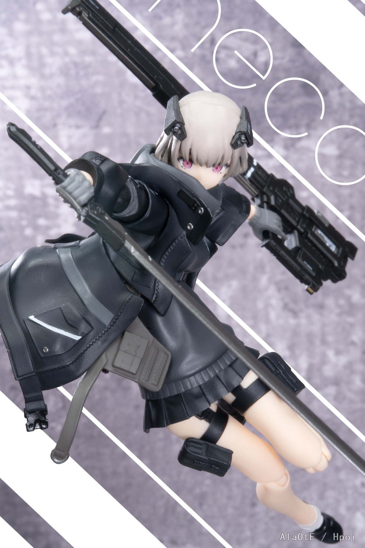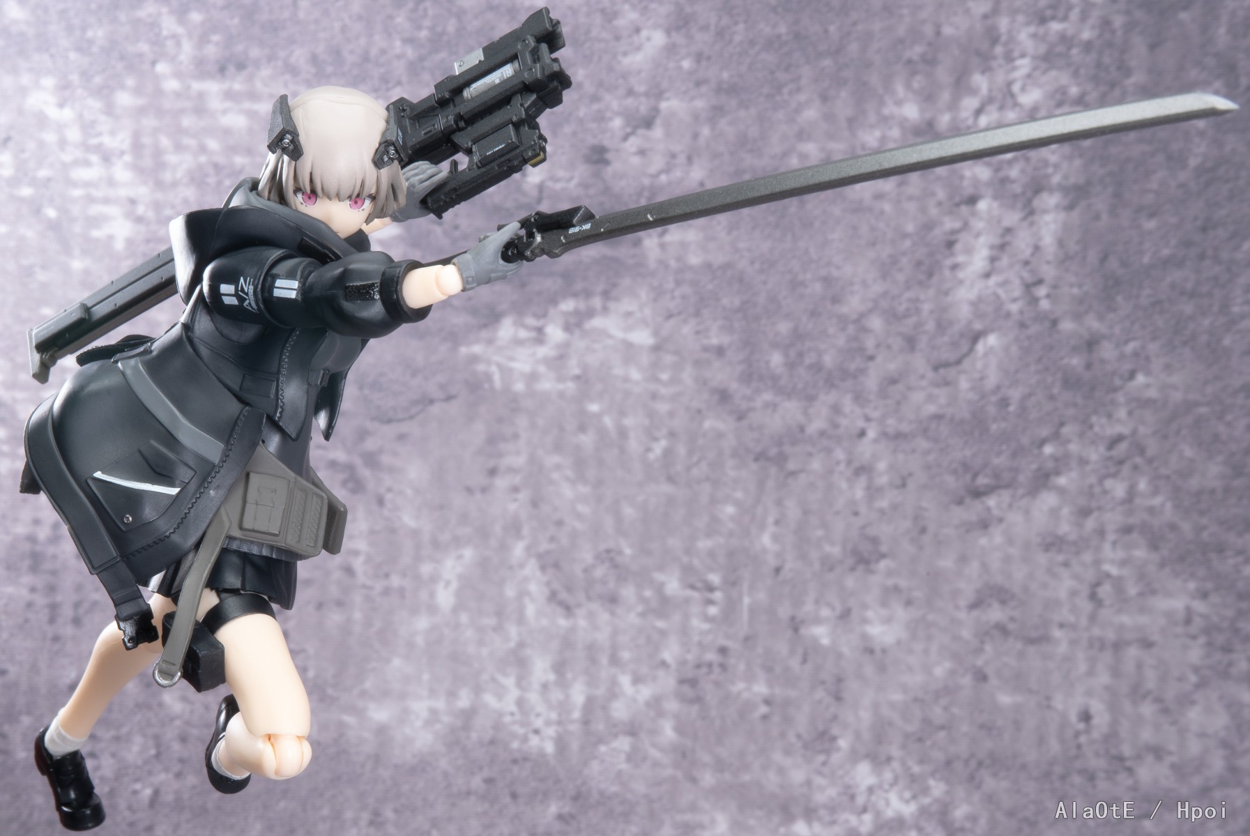 还有就是配件方面上,这只除去上文提及的三枚面雕外,也就只剩原画中的复合剑鞘加上新添的双管步枪了(