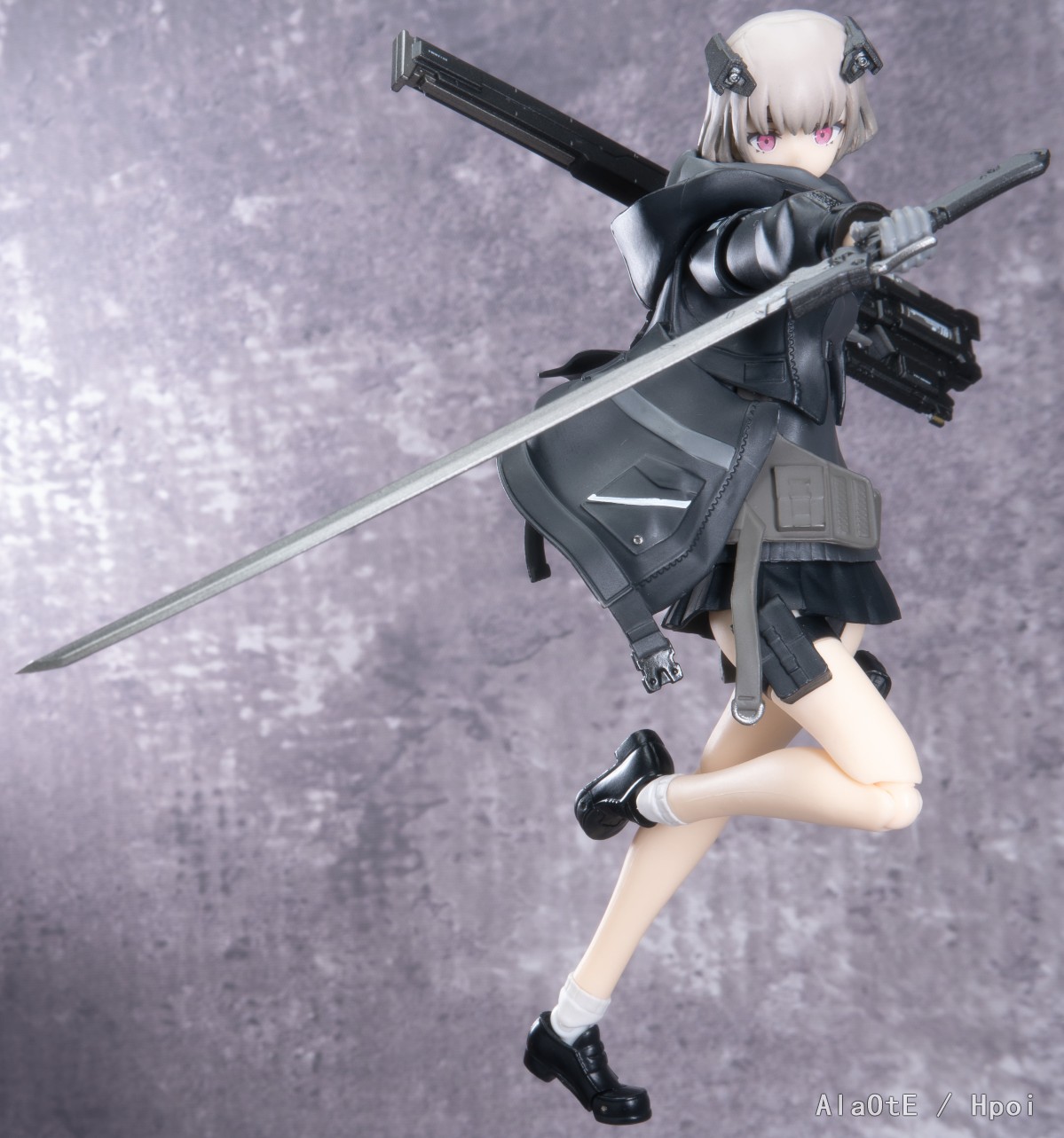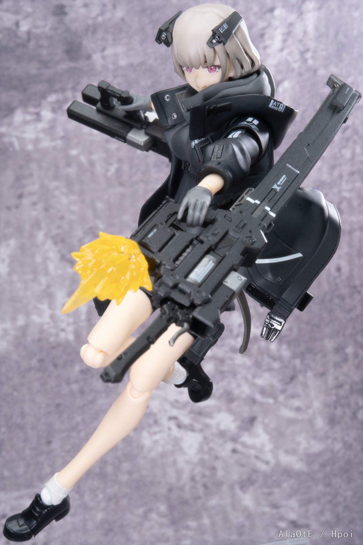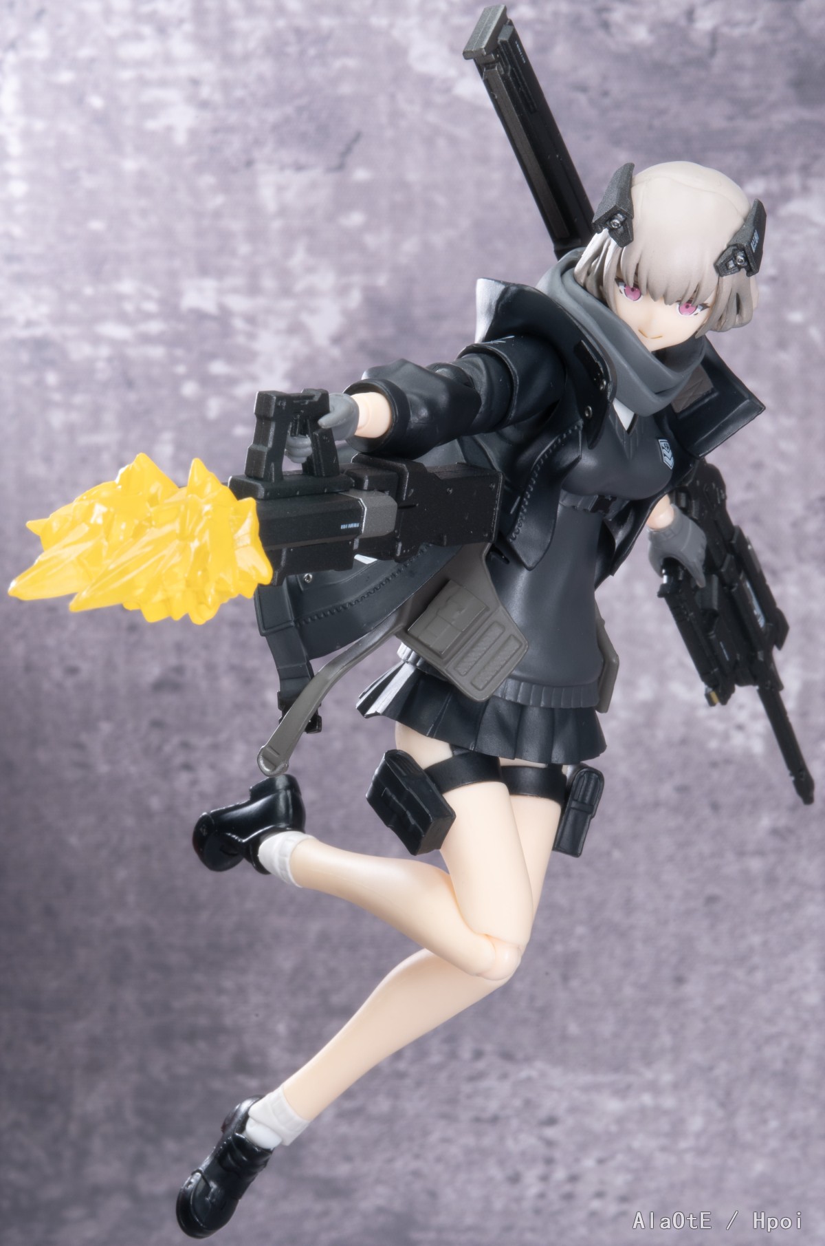 还有就是配件方面上,这只除去上文提及的三枚面雕外,也就只剩原画中的复合剑鞘加上新添的双管步枪了(