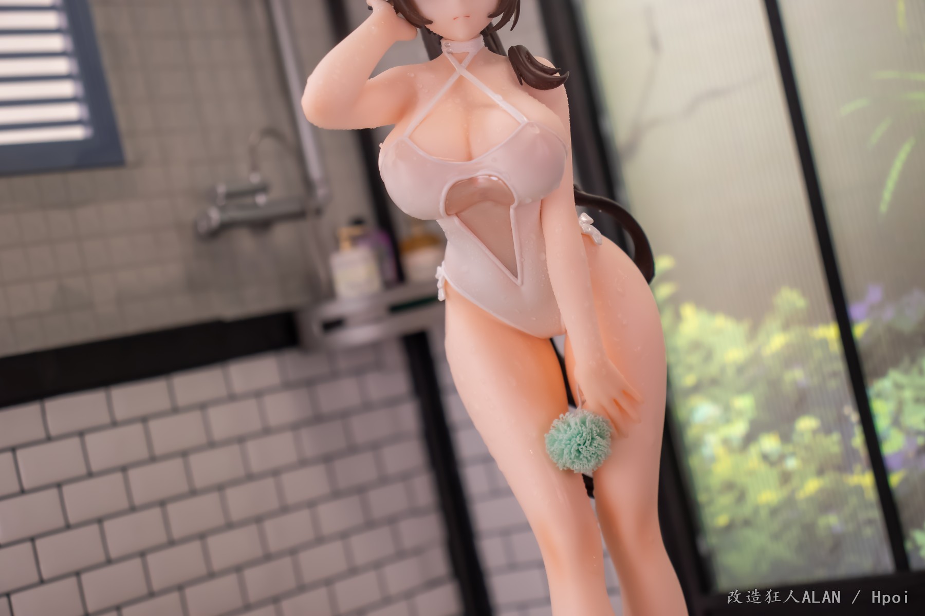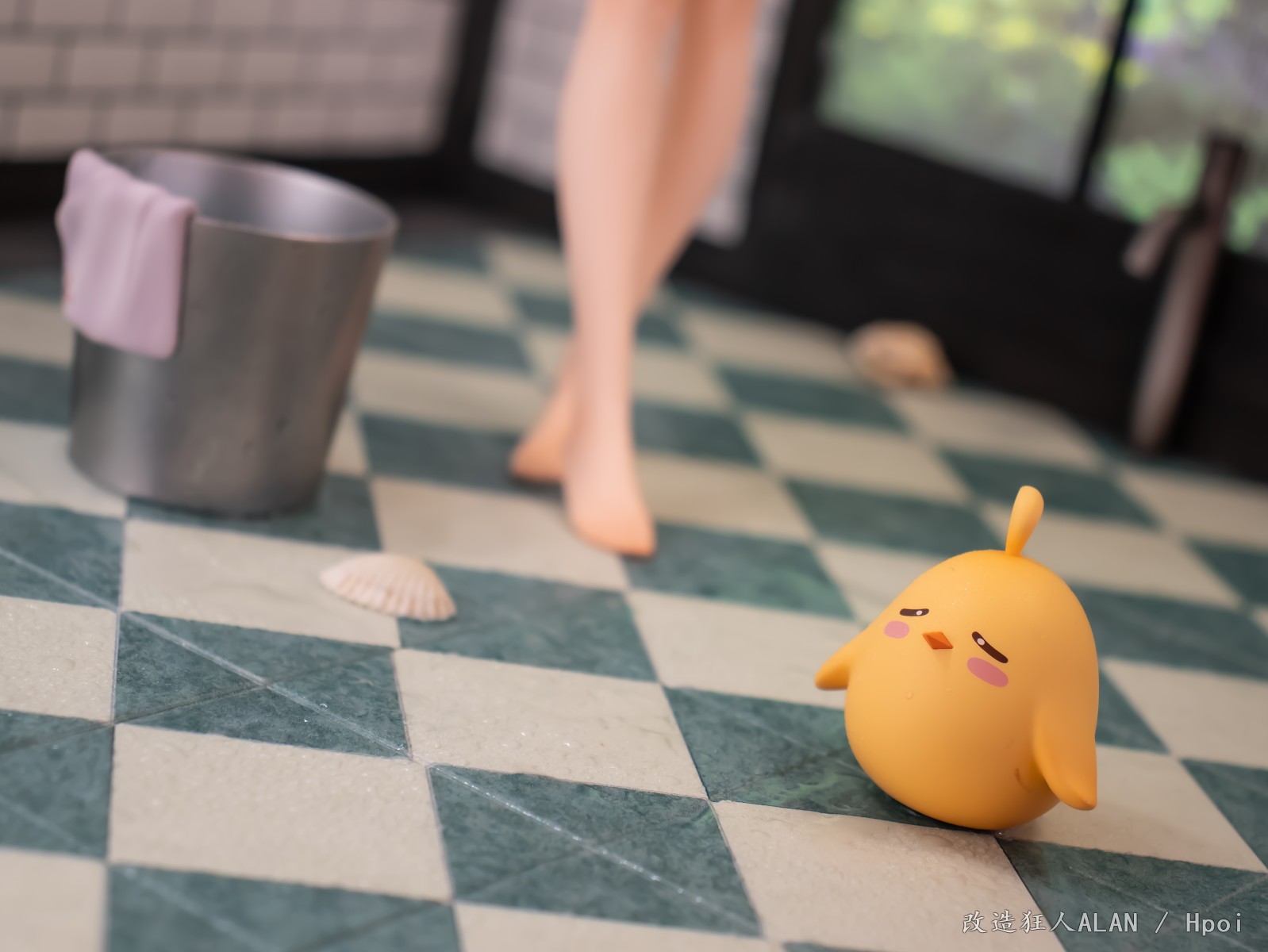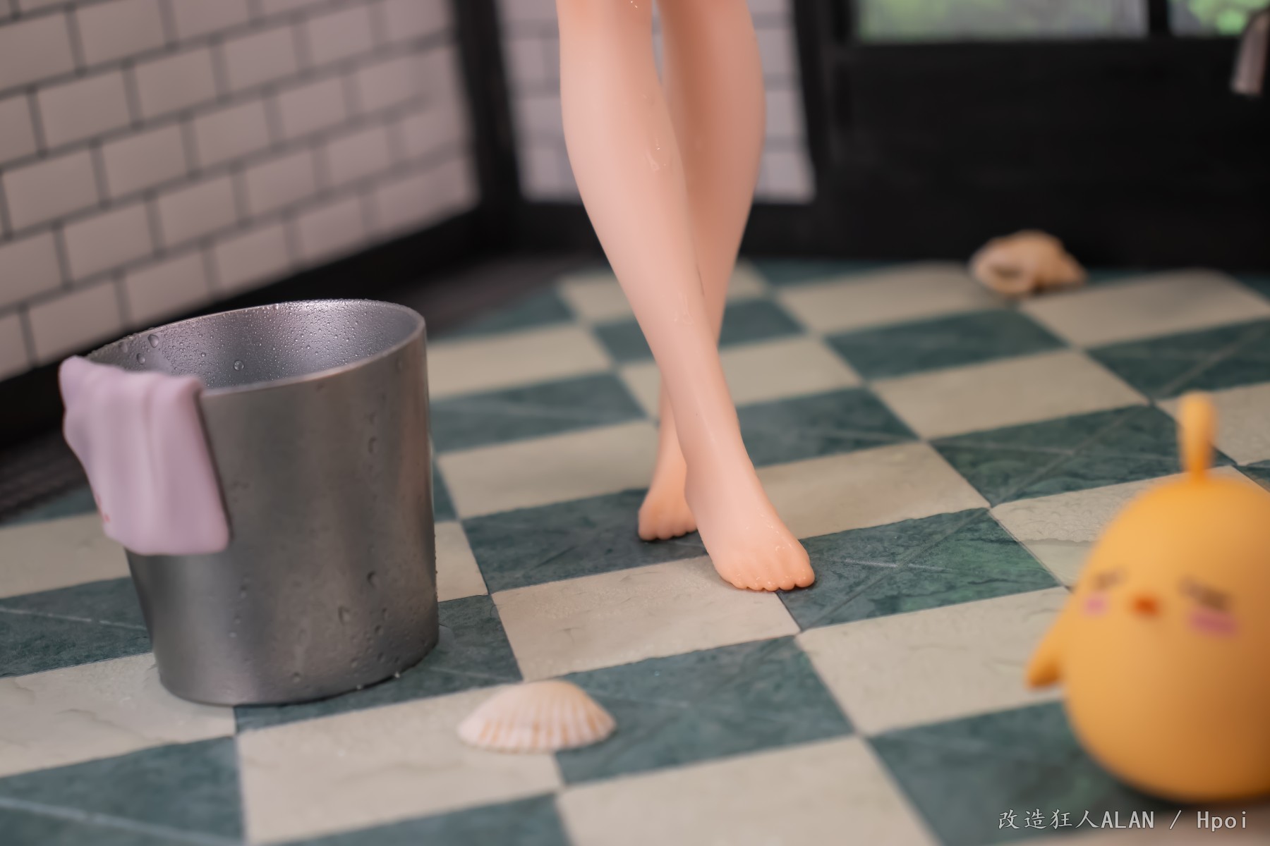 划到后面可以看到排水沟的细节,花洒、玻璃屏和黄鸡用的都是其他手办的零件~ 简单加点雾气的特效就很带派!!!