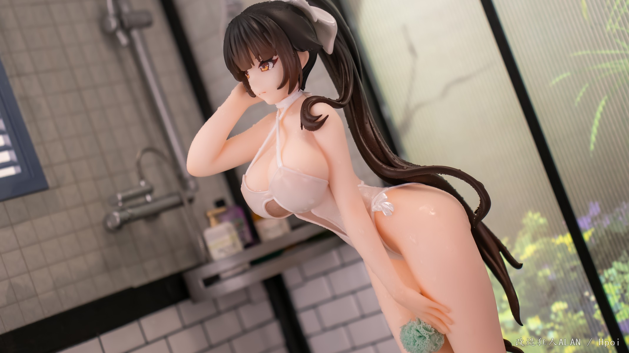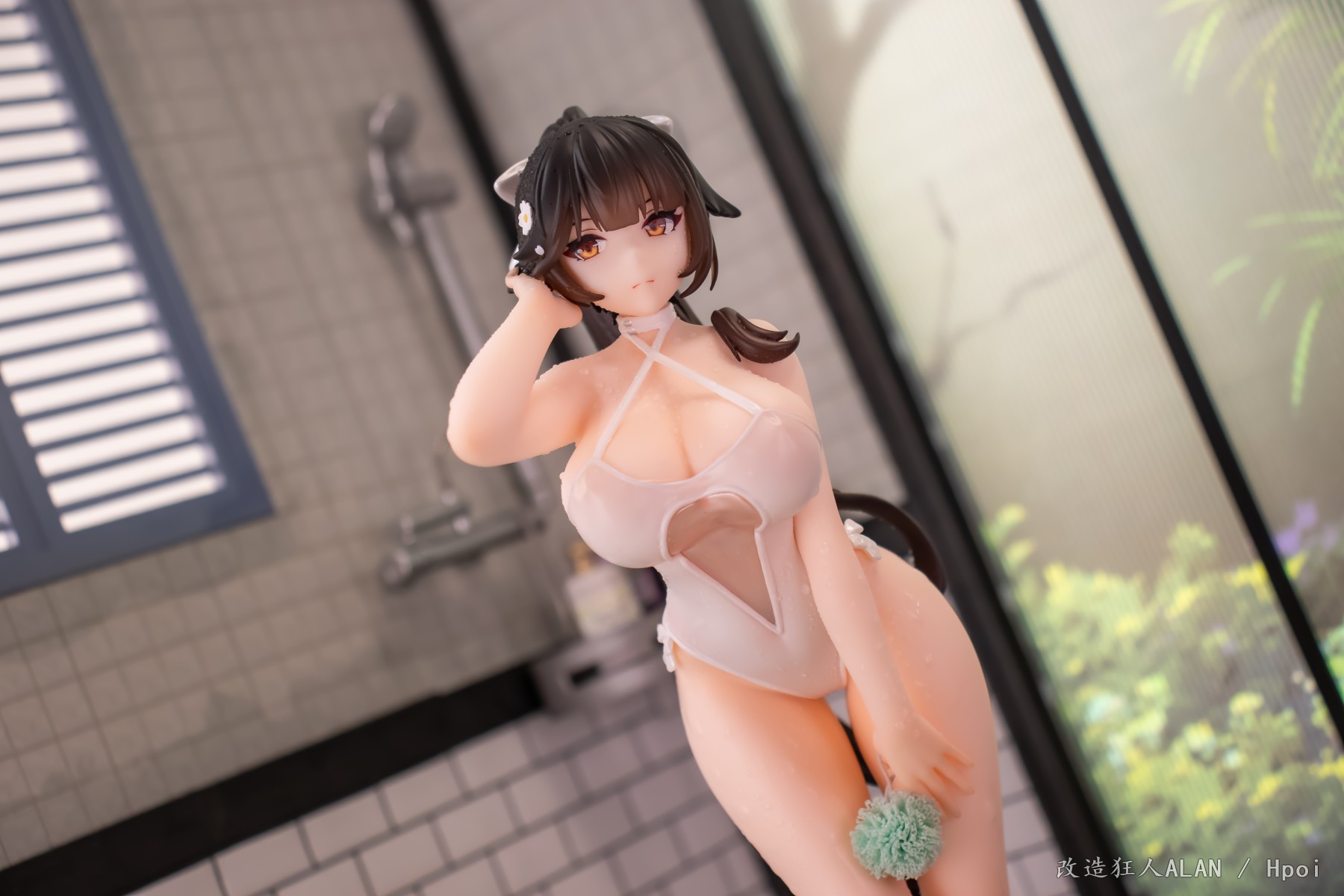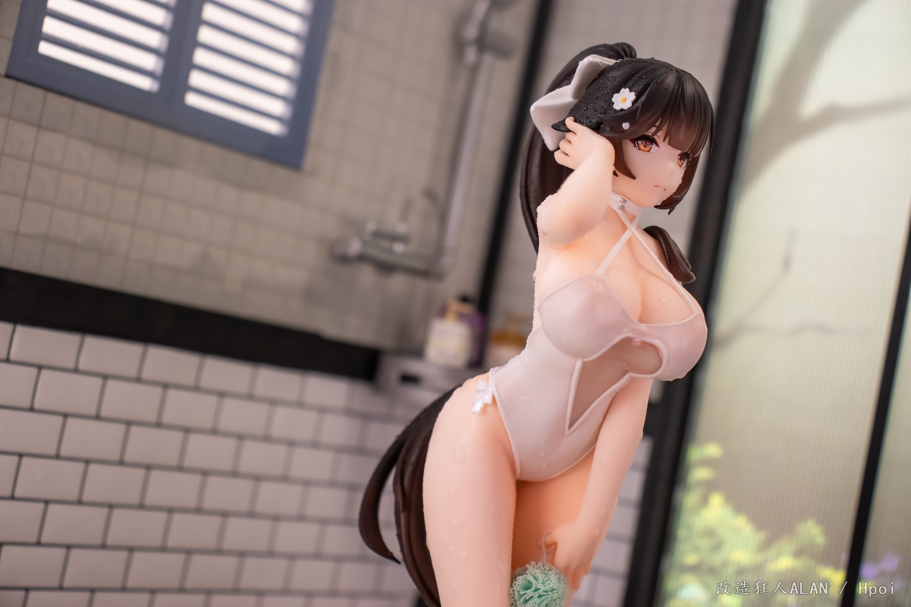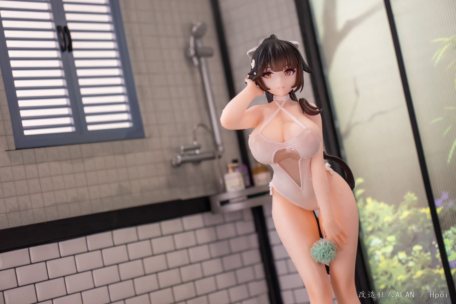划到后面可以看到排水沟的细节,花洒、玻璃屏和黄鸡用的都是其他手办的零件~ 简单加点雾气的特效就很带派!!!