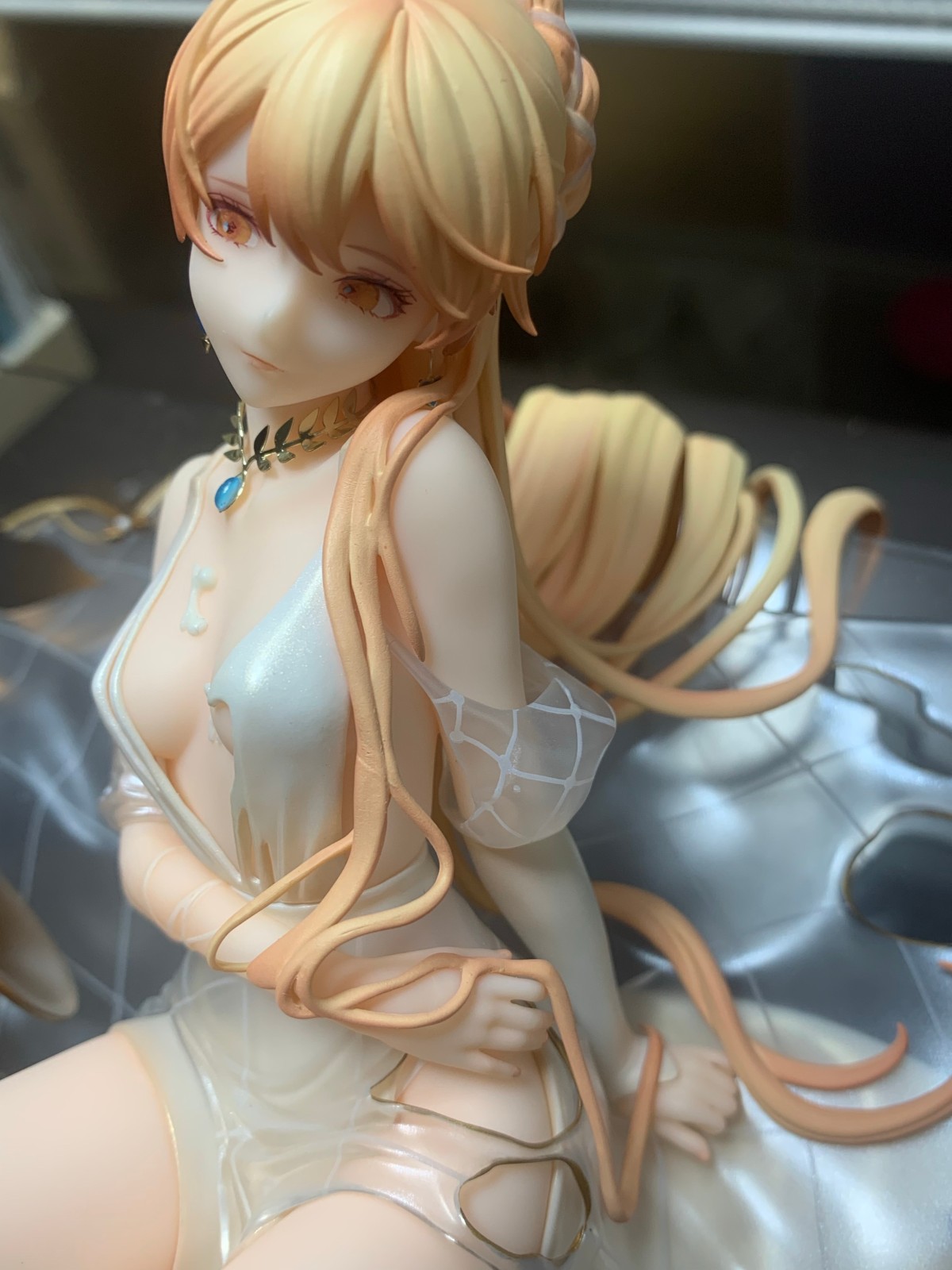 2.头发贴合平台的地方放上去就直接蹭色,没法贴合,现在已经把内侧头发的漆磨掉一大块了。要摆的千万不要直接放,一定要在头发和底座之间垫塑料膜,永远别摘下来。