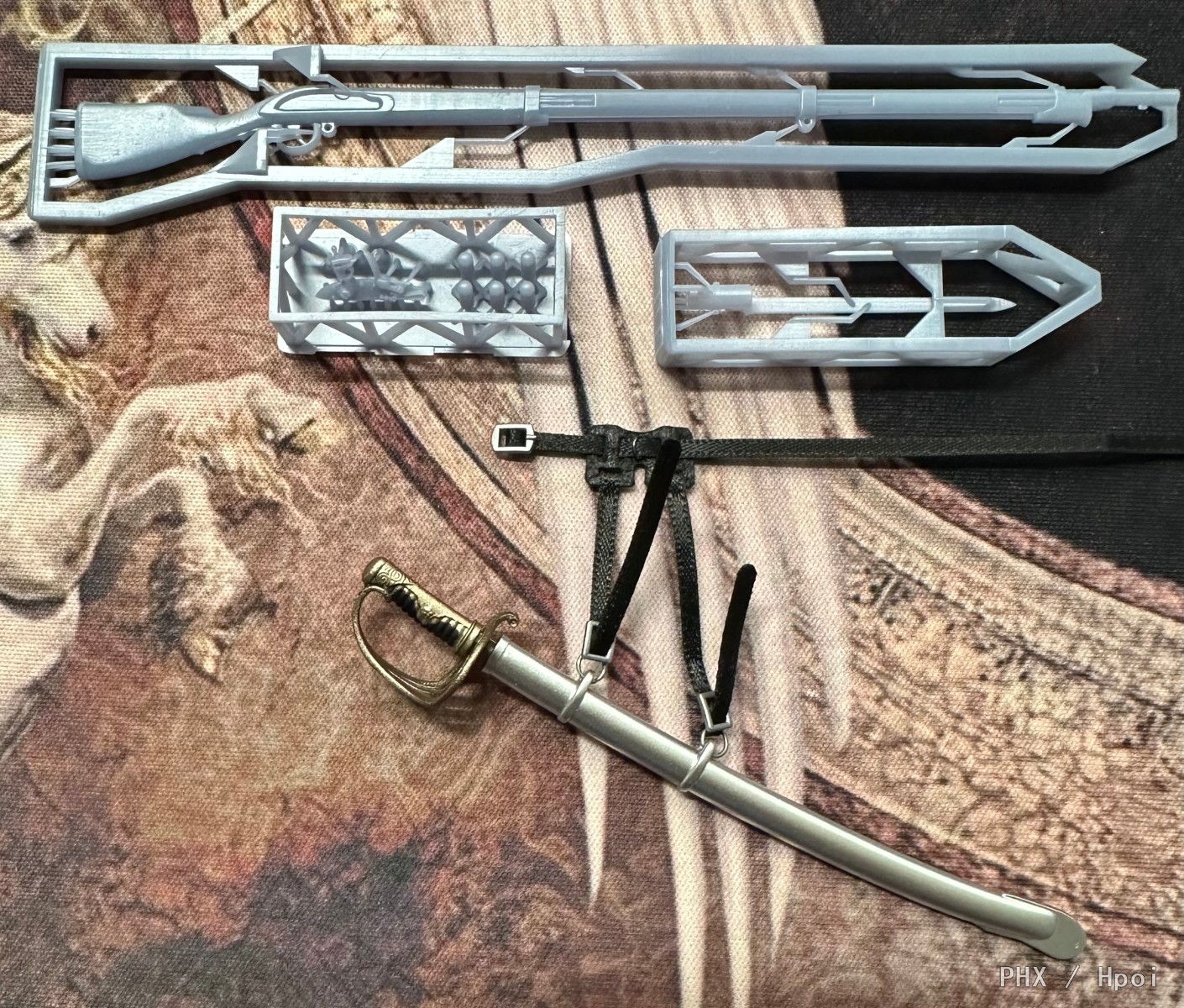 女仆装是白色的再去搞白色X形武装带不好看,换色又显得比较抽象,打算用南北战争时期的腰带+斜挎弹药袋形制,正好这刀也是南北战争时期的军刀。