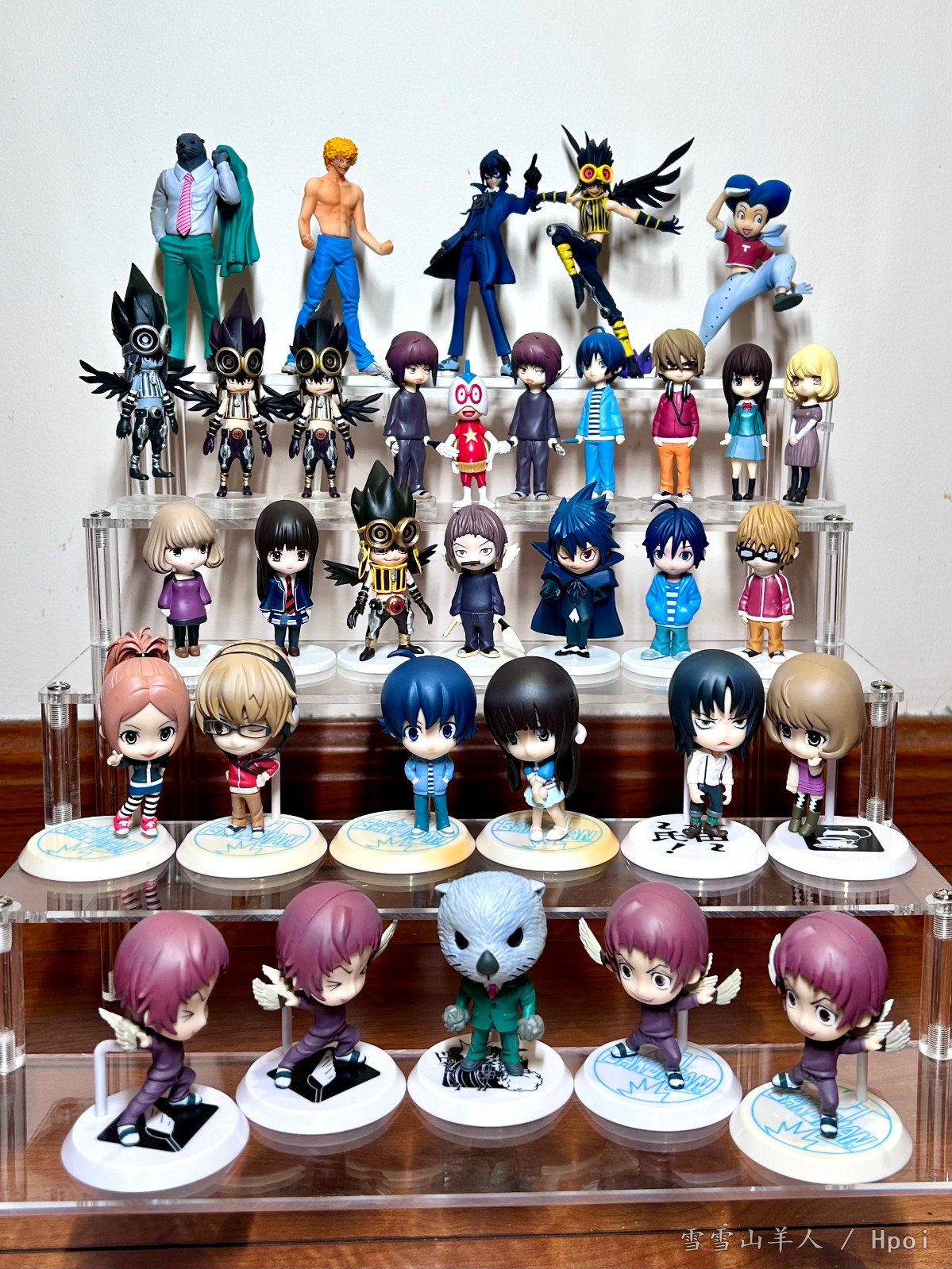 hpoi没有出那么多条目,但爆漫王出的盒蛋数量也算是很多的,主图第一排为剧中剧的盒蛋系列,也是个人很喜欢的一套。第二排是Phat出的盲盒盒蛋,第三排是我最喜欢的版本,风格很特别,这一排分别出了吊卡和挂坠版本,挂坠版本放在后面了。下方两排是一番赏出的赏品盒蛋,个别角色会有面部有略微差别的版本。比如说最高和美保常规版本的眼神是直视前方,有一个双人套装的特别版是眼睛看向对方的,秋人除了我这个眨眼运动装版本还有一个更换了服装的全睁眼版本。以上这些不同版个人觉得差别不大所以就没收,可能有机会以后会重新收集再拍一个合集。因为个人比较偏爱新妻,所以新妻的两个版本我是收齐了,分别是全睁眼和wink版本。非主要角色的其他角色如平丸海獭苍树红等就只有一个版本了。除了这些盒蛋以外还有一个非常小的挂件个人感觉不算手办类所以就没放出来,爆漫王出的全部盒蛋手办基本上就是这些,发出来供大家参考