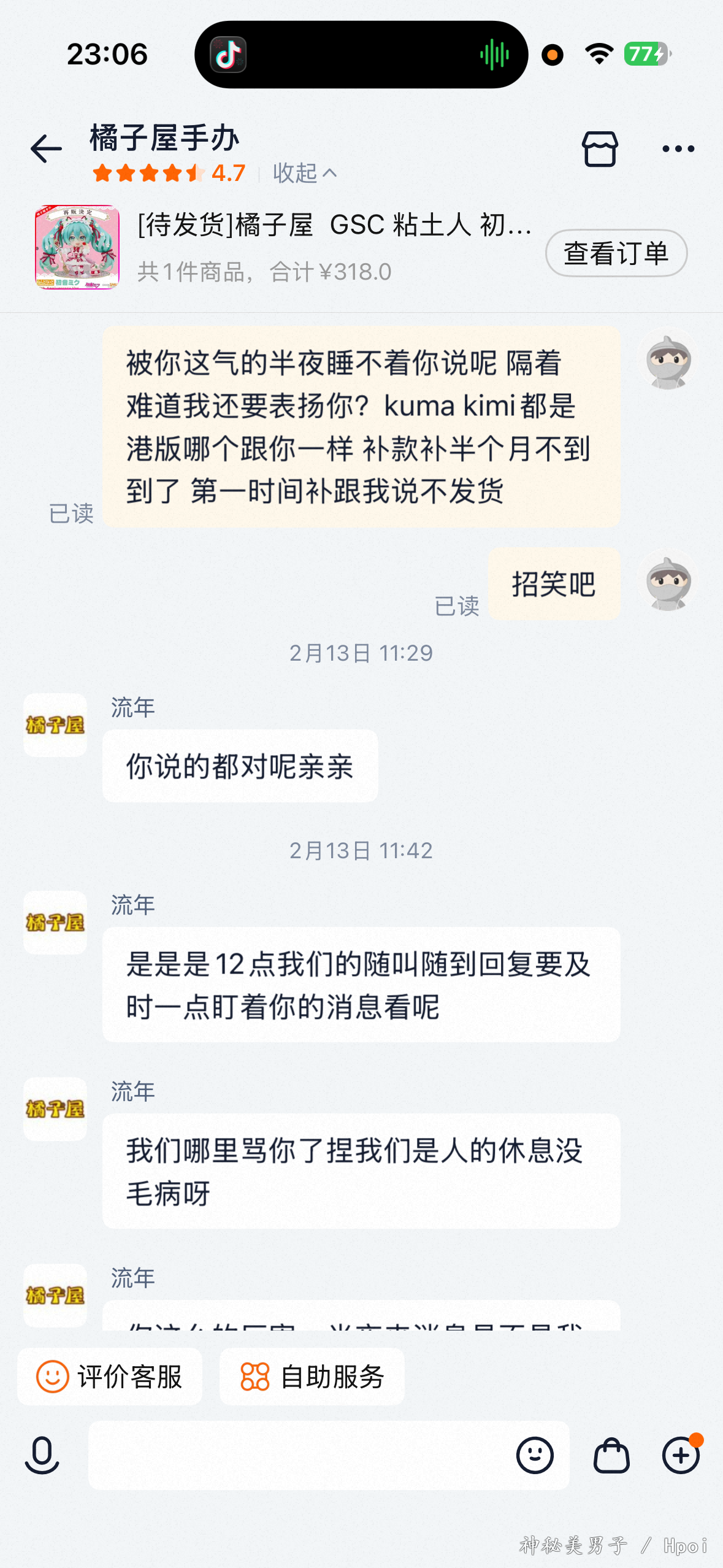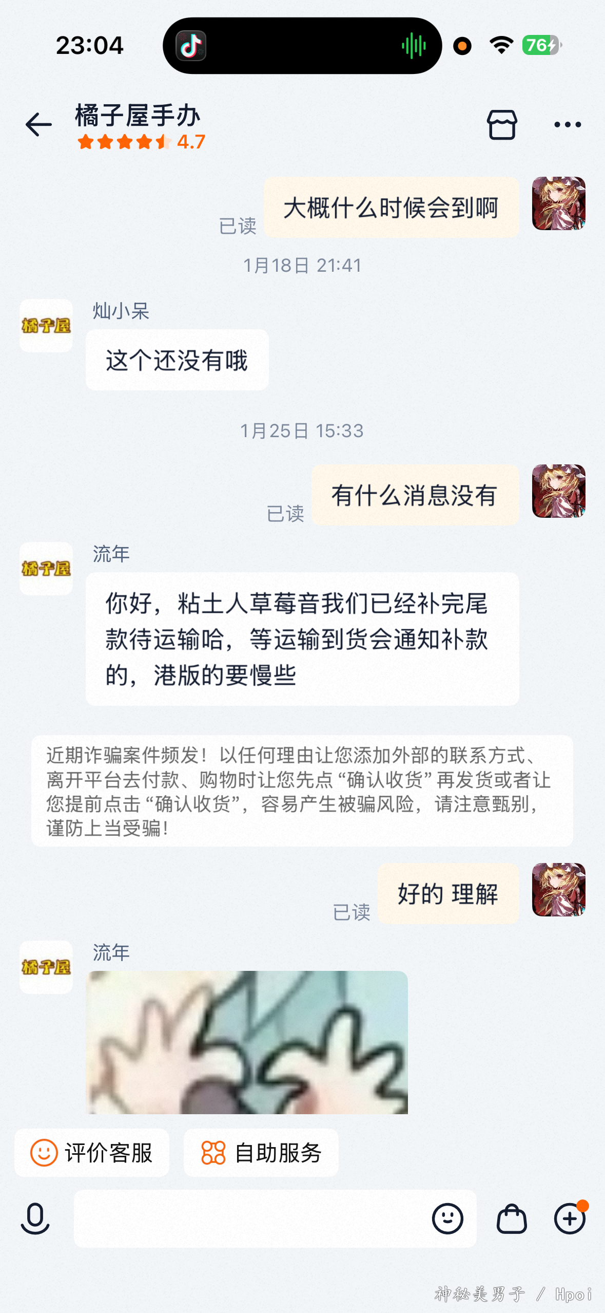 现在的人能把这种黑店跟其他两家很好的店比在一起就很离谱 可见请的水军之强大 招笑店是补的最慢的 之前好好的说话也正常询问 到货慢 服务态度差 客服还会隔18h才回复阴阳怪气 年前不发货还开补款也不通知 补款消息第一时候 过了1h就补了 补完等了一天才询问什么时候发 贴吧问完才知道比我晚了几天的很多兄弟补完都发了 就是故意不发恶心我 这种店声名远扬 好好避雷 神人店家年前完款才通知年后发货 本来已经避雷这种破店了 估计我也不是它的优质客户 最后还拉黑了 真是又急又破防 以后看到别的买家问这种破店 可以看看我的帖子和享受到的新年问候 给我带来了美好的心情👍