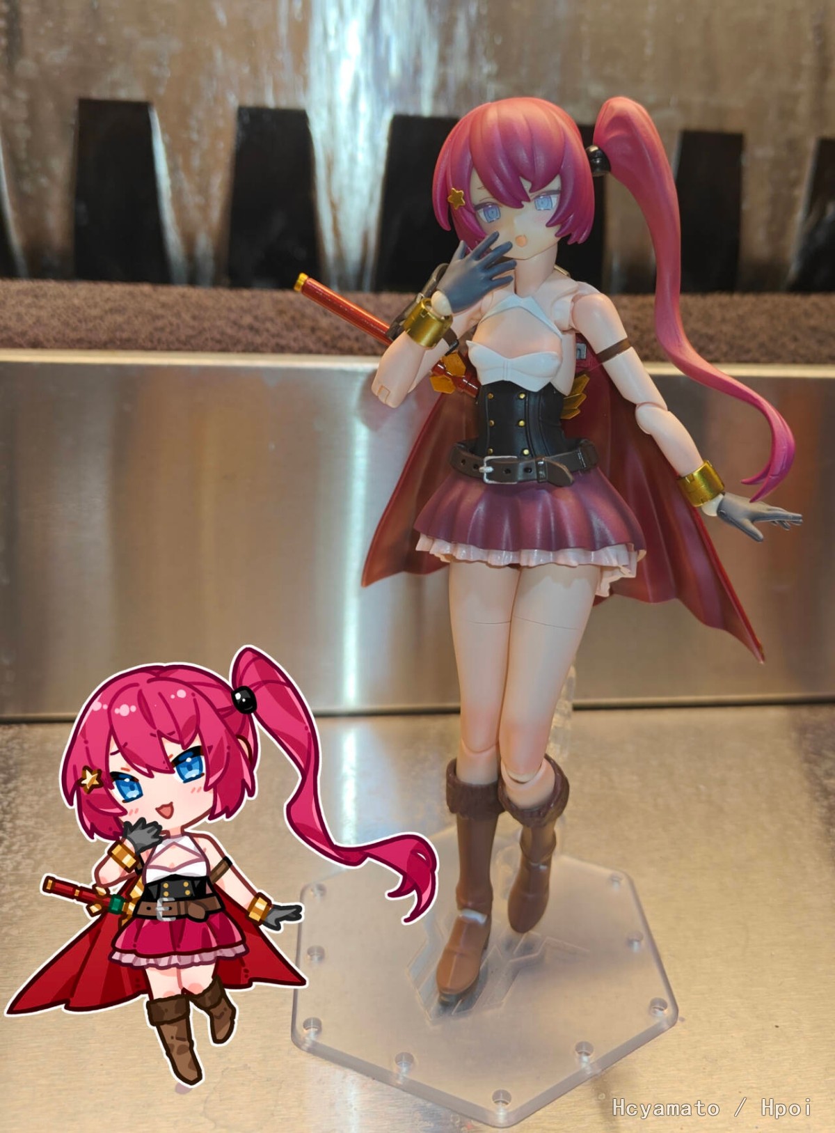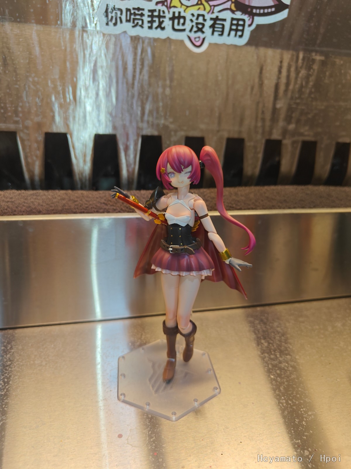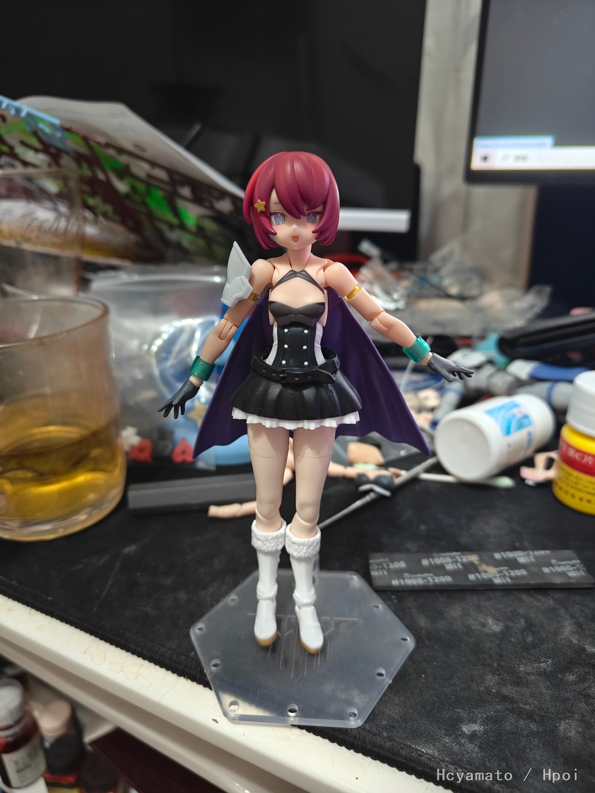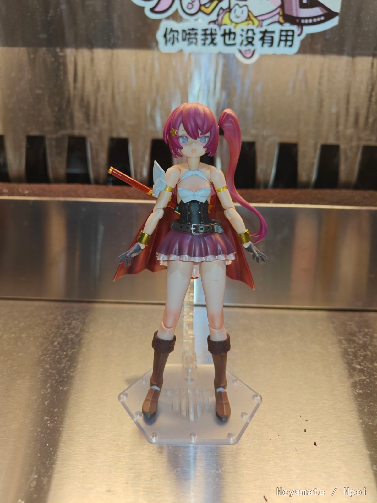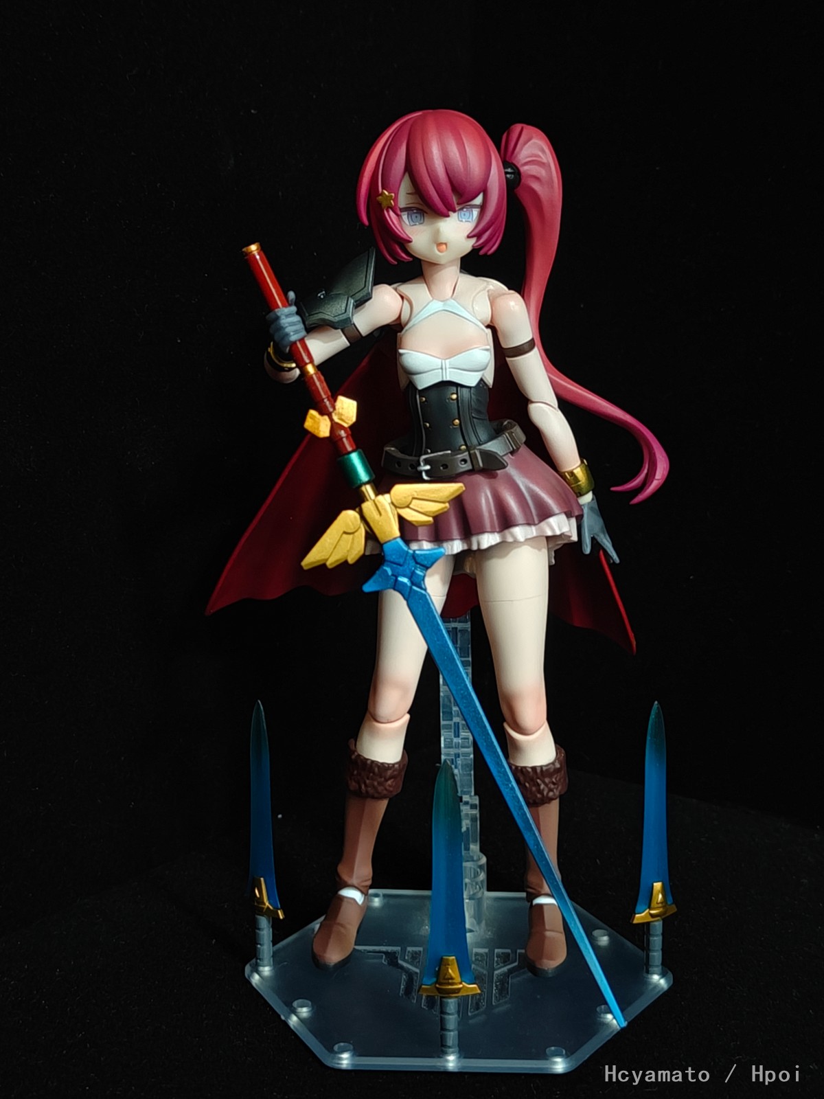 配合主题加了点料,长靴改成了飞跃蓝天的靴子,腰部是阿尔法魅影,裙子是GK件JK03褶皱裙,披风和护肩都是30mf的