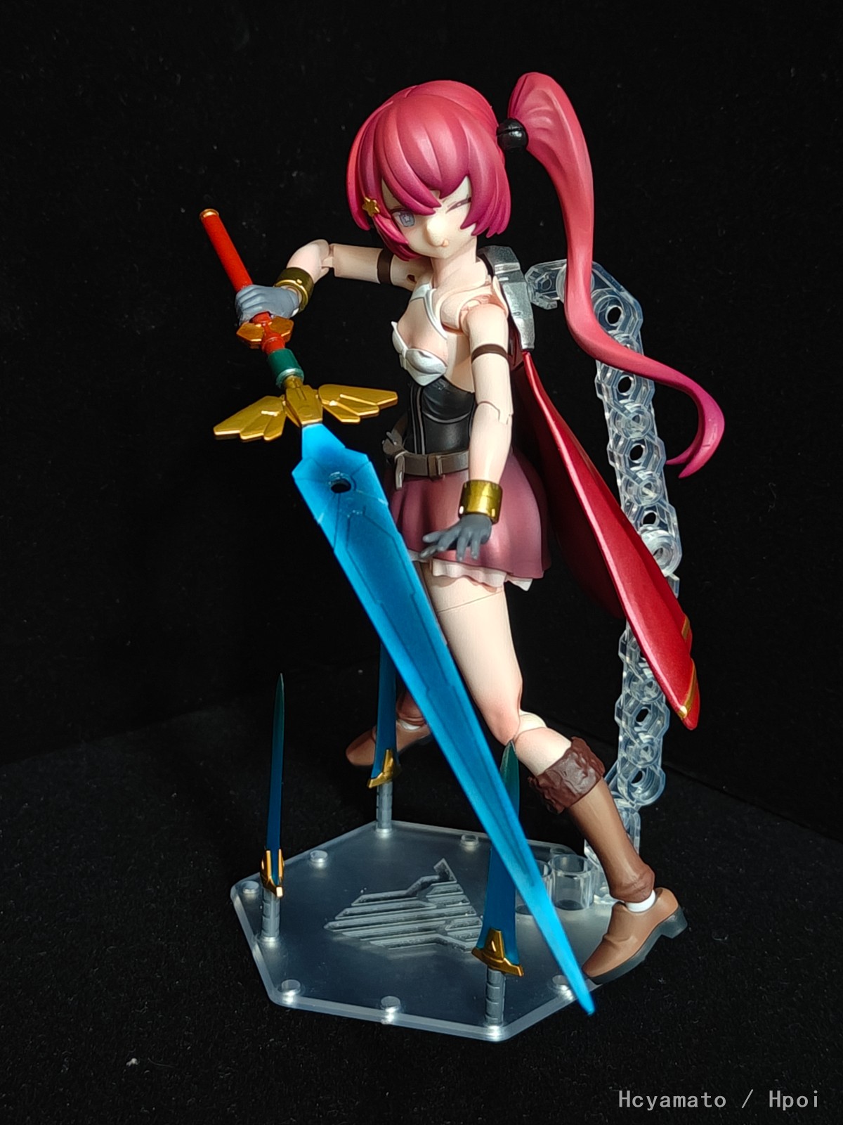 魔法阵做了磁吸,可以吸附到手掌替换件上,魔剑跟法阵都来自30mm魔法武装配件包