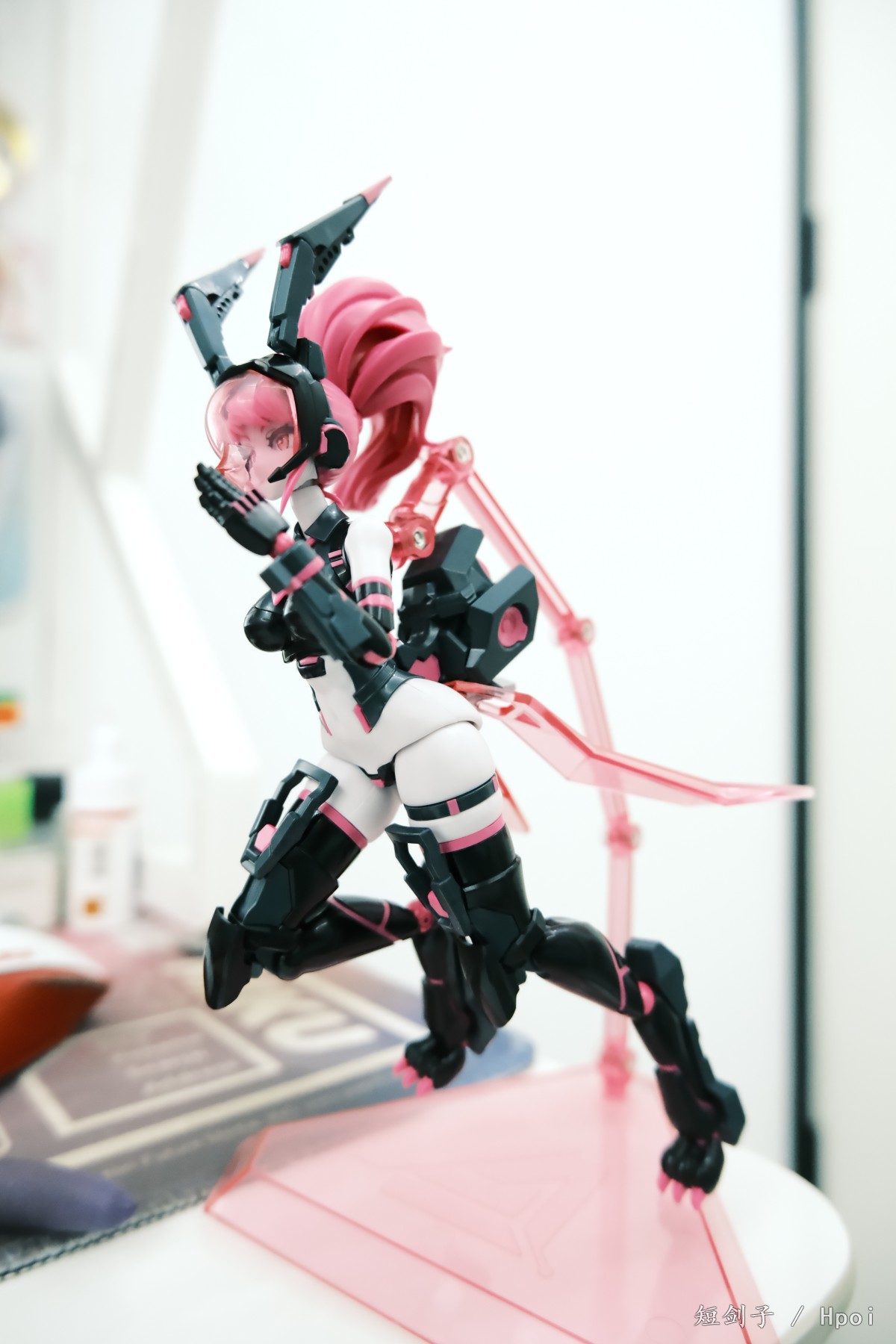 冲着胶衣题材和人棍题材买的,SP版能拼出来一黑一白2个素体,外加一个全包胶衣素体,人棍玩法在机娘题材里也非常有特色,断肢截面还有机械细节,非常有真“机娘”的感觉 素体本身的身形做的也很色大腿的勒肉,还有小肚子和后背曲线,都非常性感。 +++++++++++++++++++++++++++++++++++++++++++++++++ 拼装体验方面属于中等偏上,公差控制不错,除了少数几个abs连接件以外,基本不需要任何削桩扩孔,但是存在部分细小分色分件,比如福上面的粉色小三角,那个零件只有1~2mm大,我用手指甲尖都捏不住,修水口时候真的是享福了_(:3亅∠)_ +++++++++++++++++++++++++++++++++++++++++++++++++ 把玩体验只能说可动中等,比很多同行都要好,但是因为胯部用的还是传统Y桩,抬腿等大幅度动作必然受限,这个也是没办法的。 +++++++++++++++++++++++++++++++++++++++++++++++++ 有一个扣分项必须要说,就是手臂,我图里很多手臂掰到大概50°~60°,这个不是故意凹这个姿势,而是只能掰到这个角度!2025年出的机娘,居然无法做到90°屈肘!这个太不应该了!