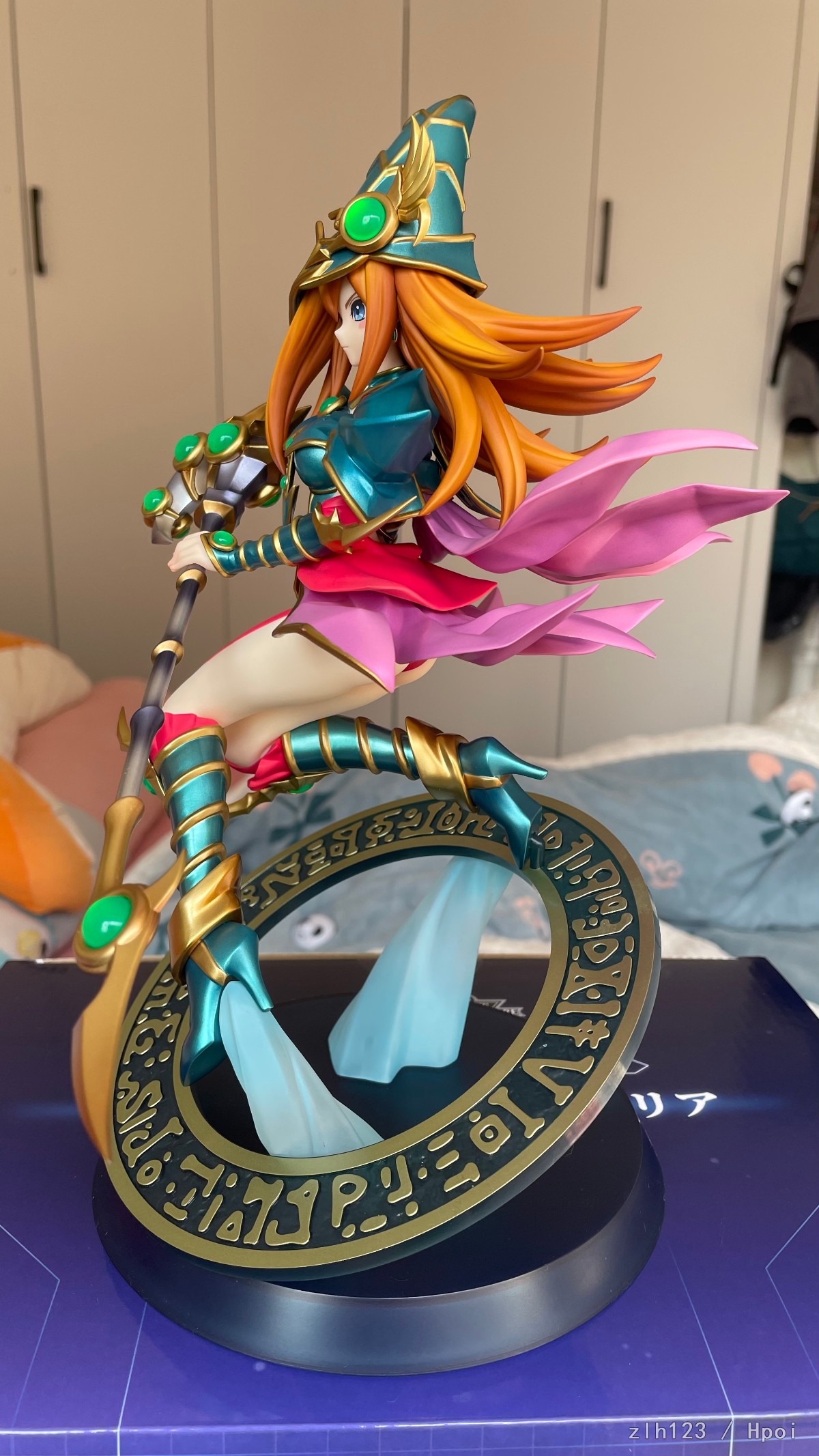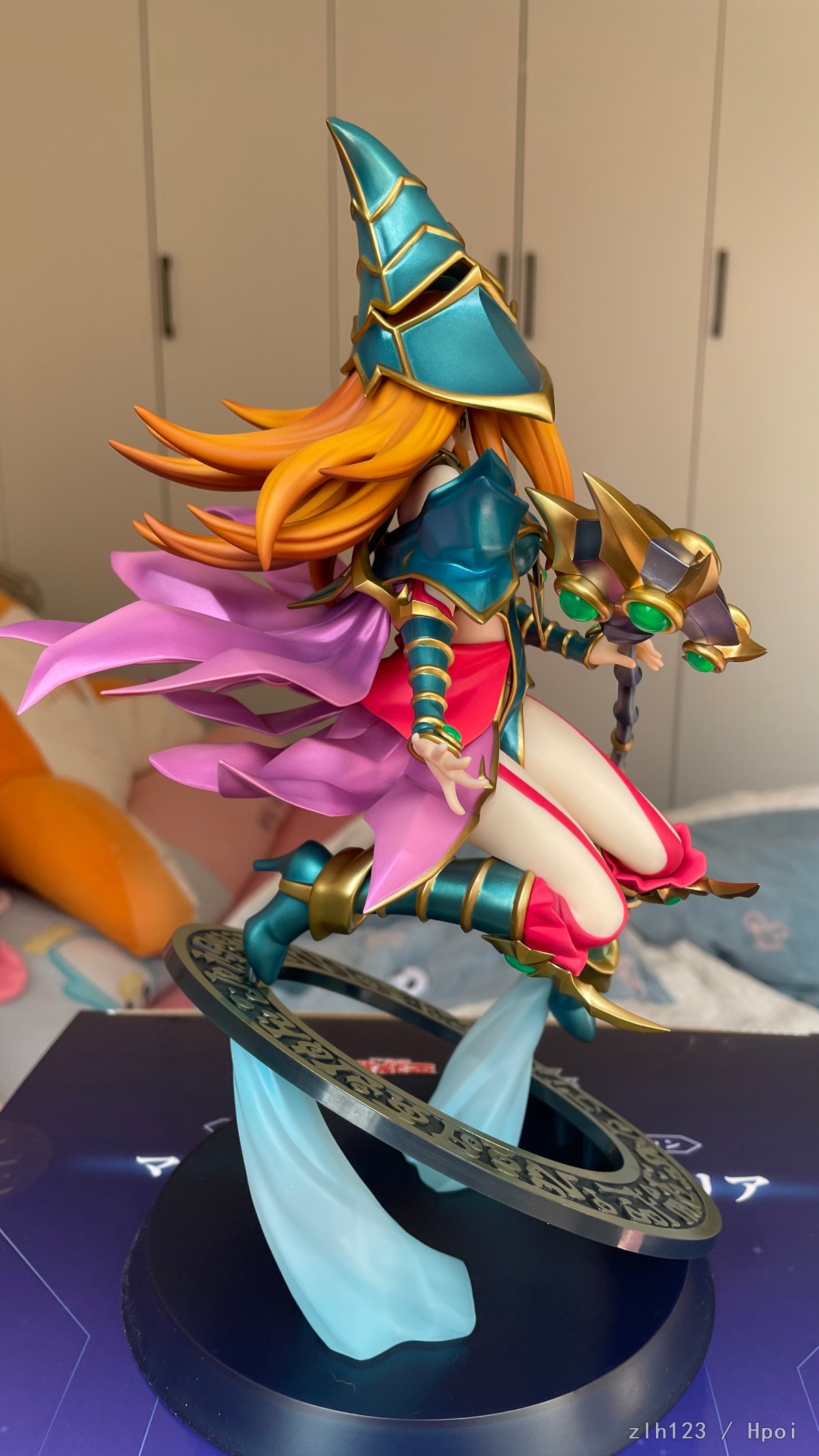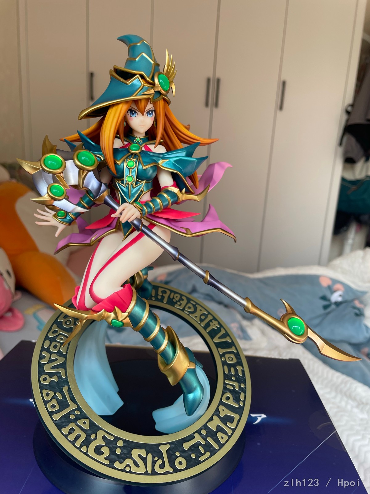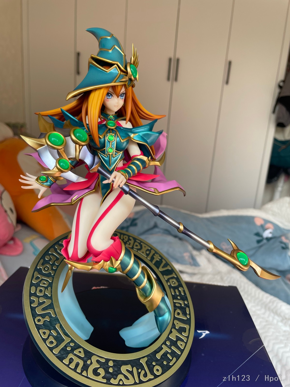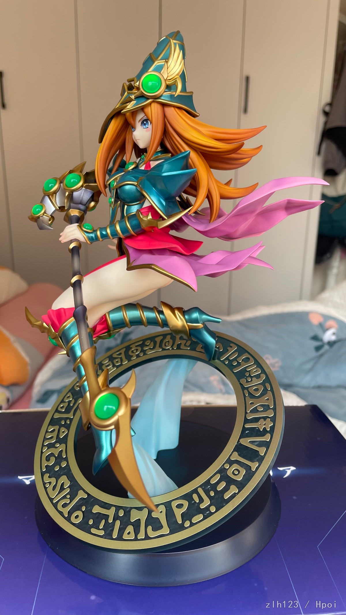 头发渐变涂得很好,宝石透明件非常透亮,绿色部分就是单纯金属色了。整体怪设非常还原,脸和法杖给人感觉真的跟原画一模一样,而且脸是真的各个角度都很好看。