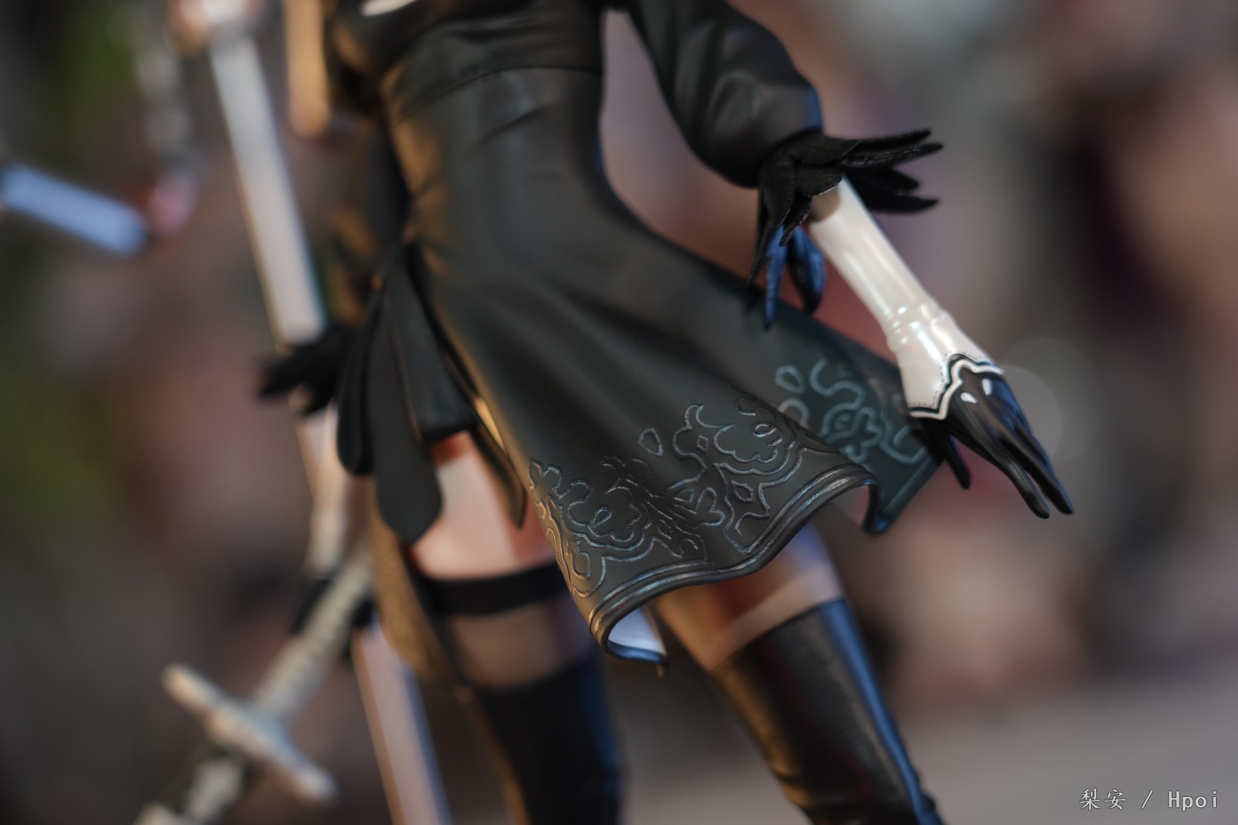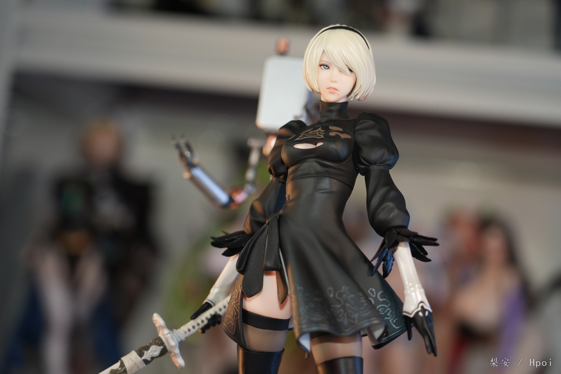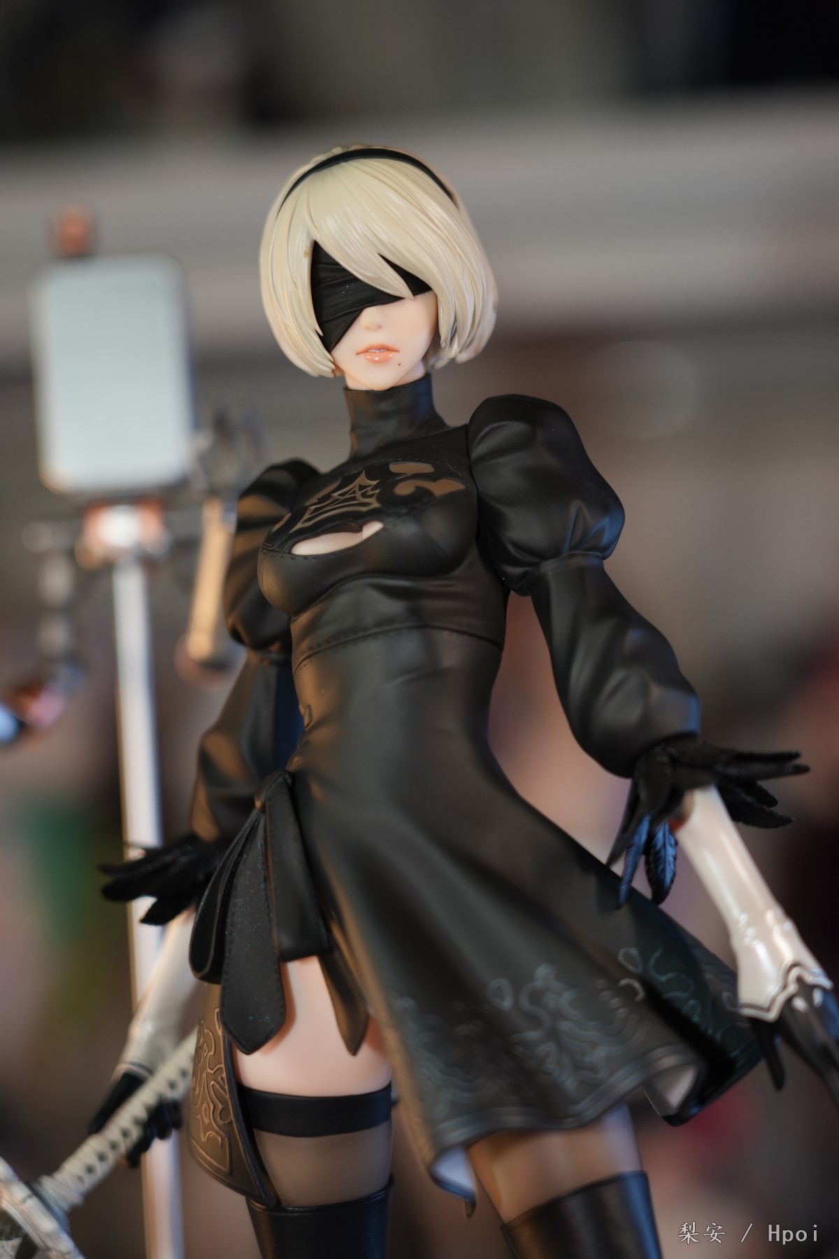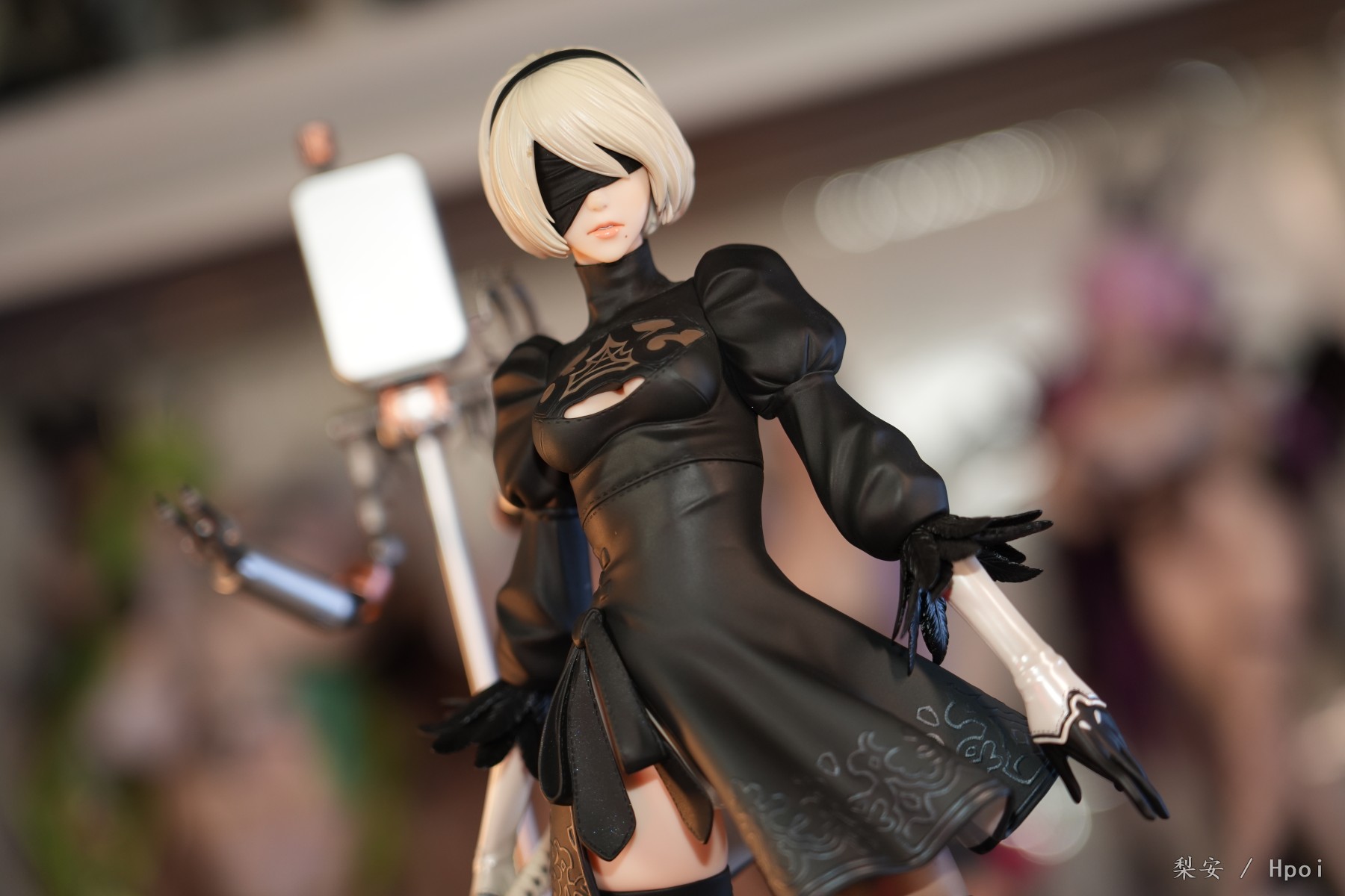 这次拍摄的2b真是太好看了,整体比例很大,腿很长,尤其喜欢这个高跟长筒靴,替换身的屁股也做得挺好的,小机器人手部可以动,有点做旧涂装,尤其喜欢眼罩头雕,看着挺好挺还原的,另外一个不戴眼罩的就有点一般了