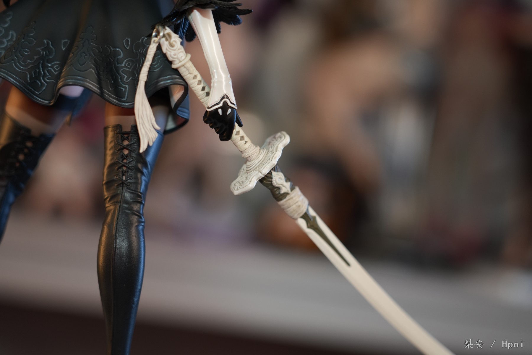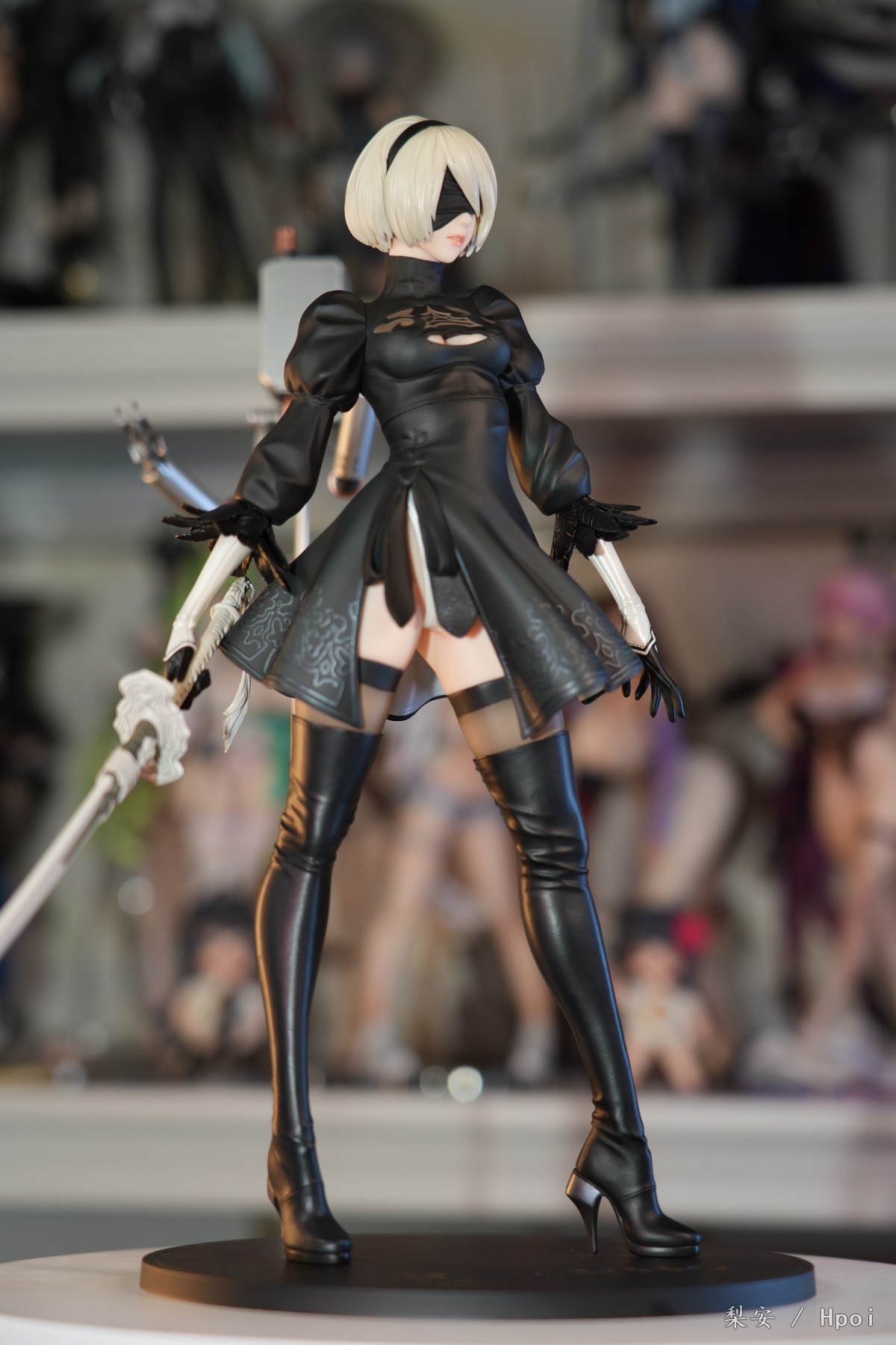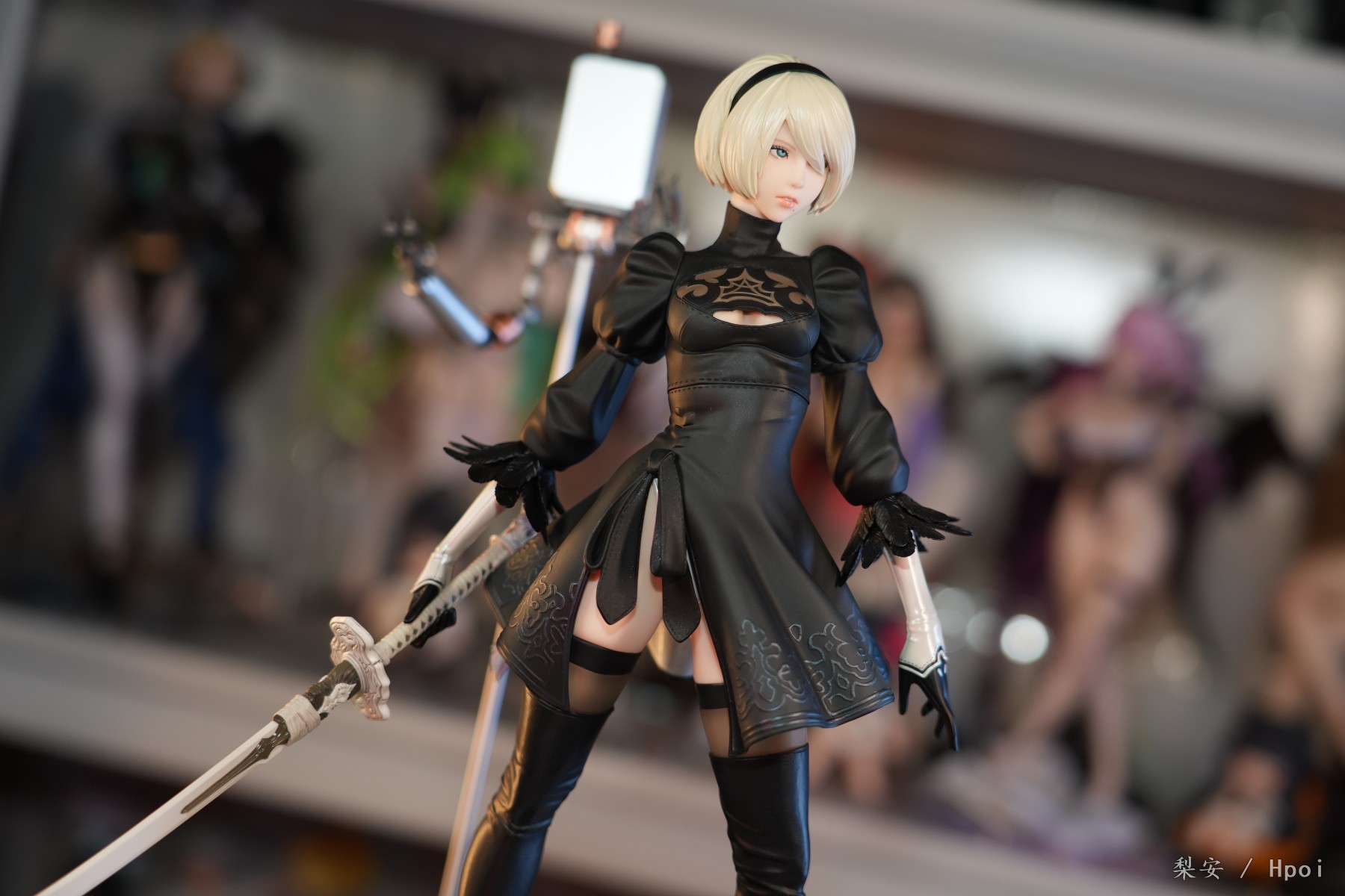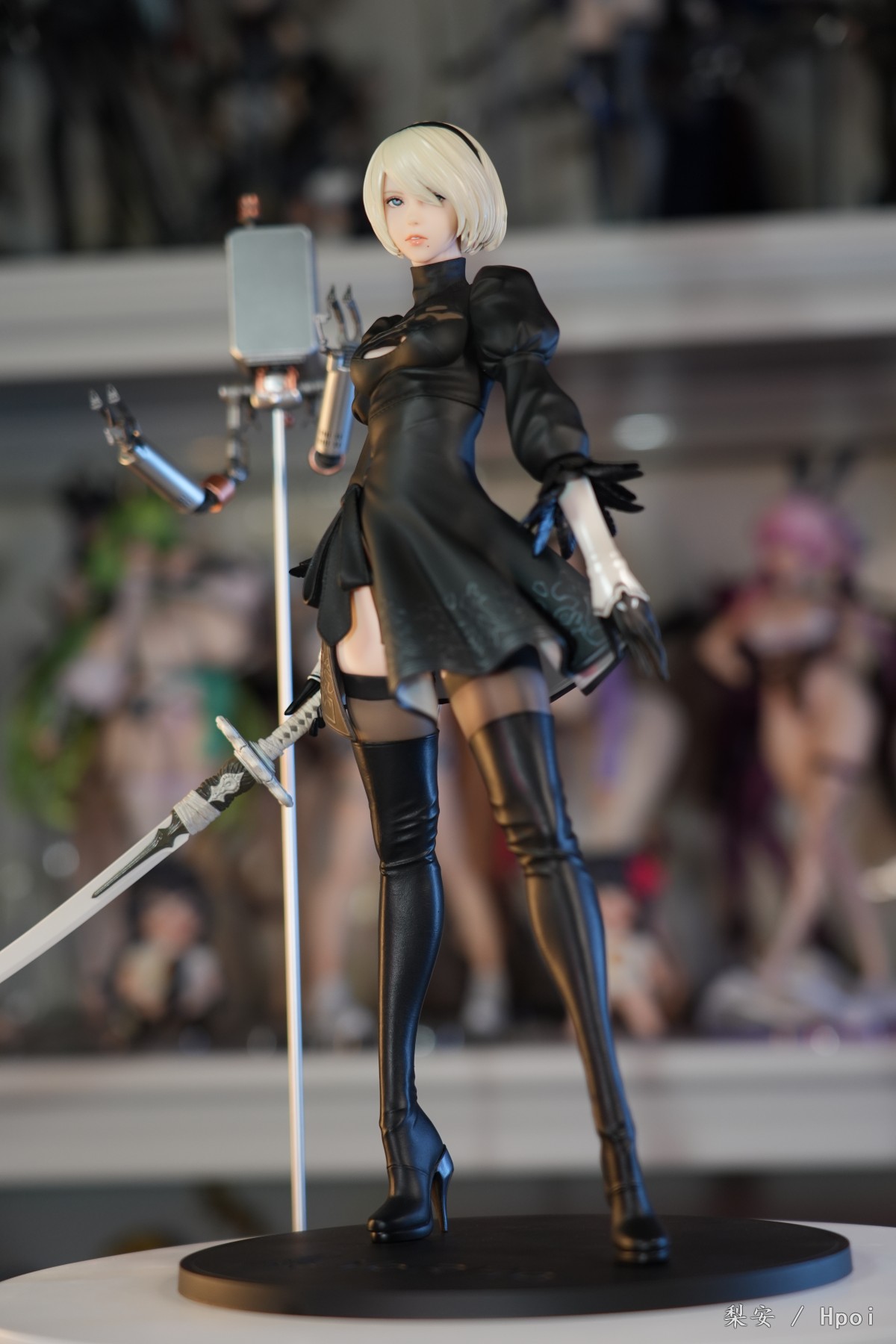 这次拍摄的2b真是太好看了,整体比例很大,腿很长,尤其喜欢这个高跟长筒靴,替换身的屁股也做得挺好的,小机器人手部可以动,有点做旧涂装,尤其喜欢眼罩头雕,看着挺好挺还原的,另外一个不戴眼罩的就有点一般了