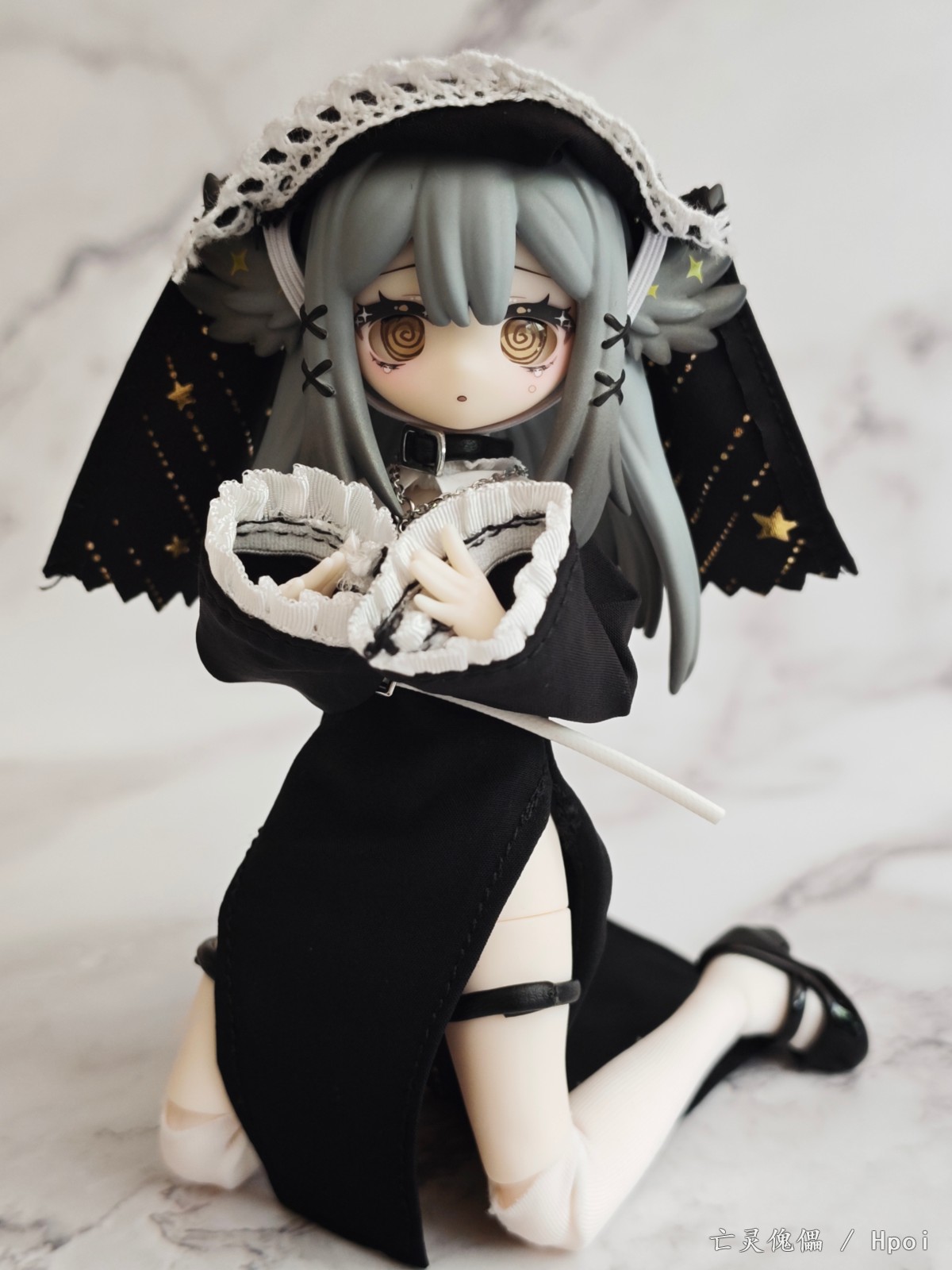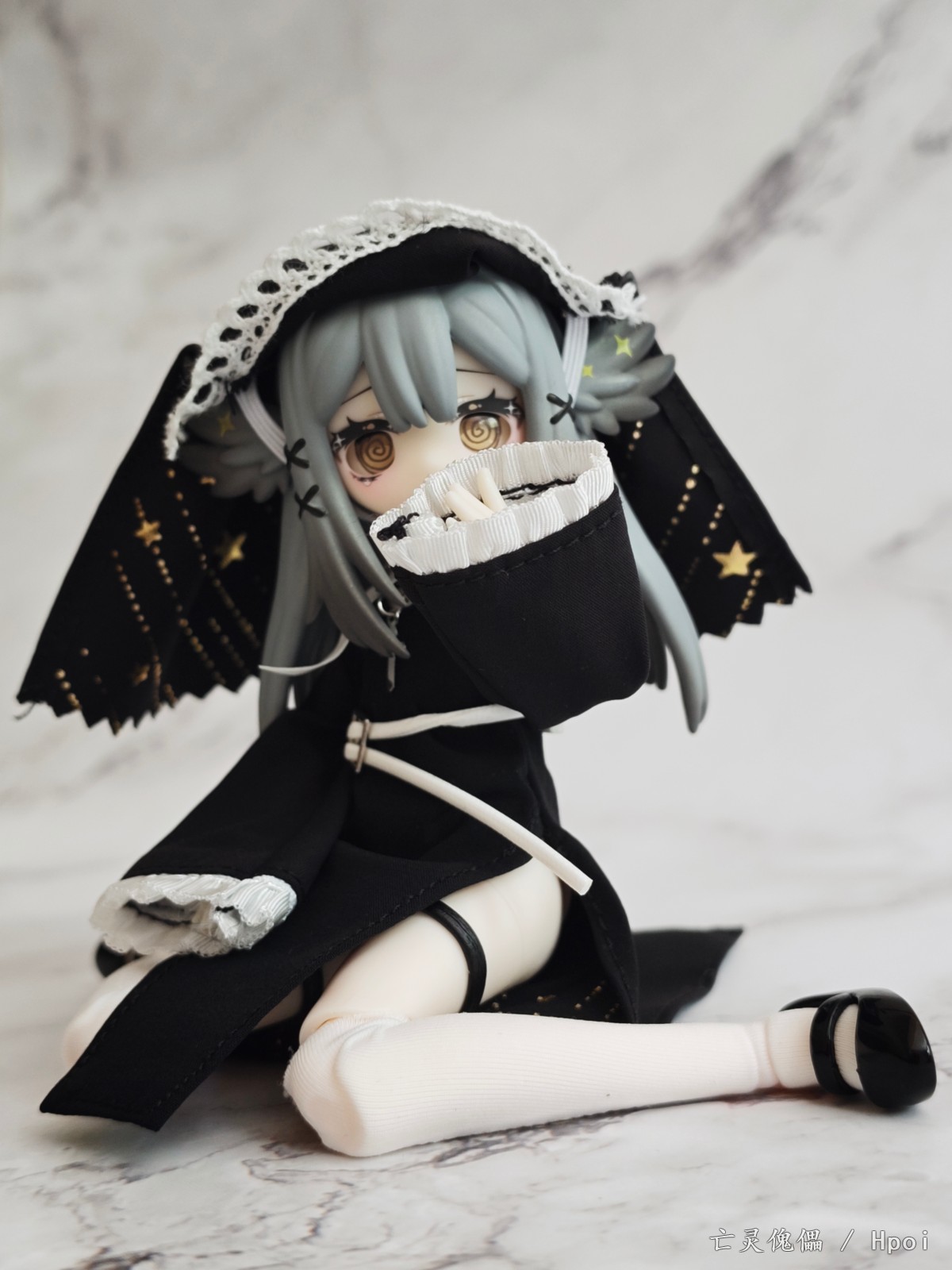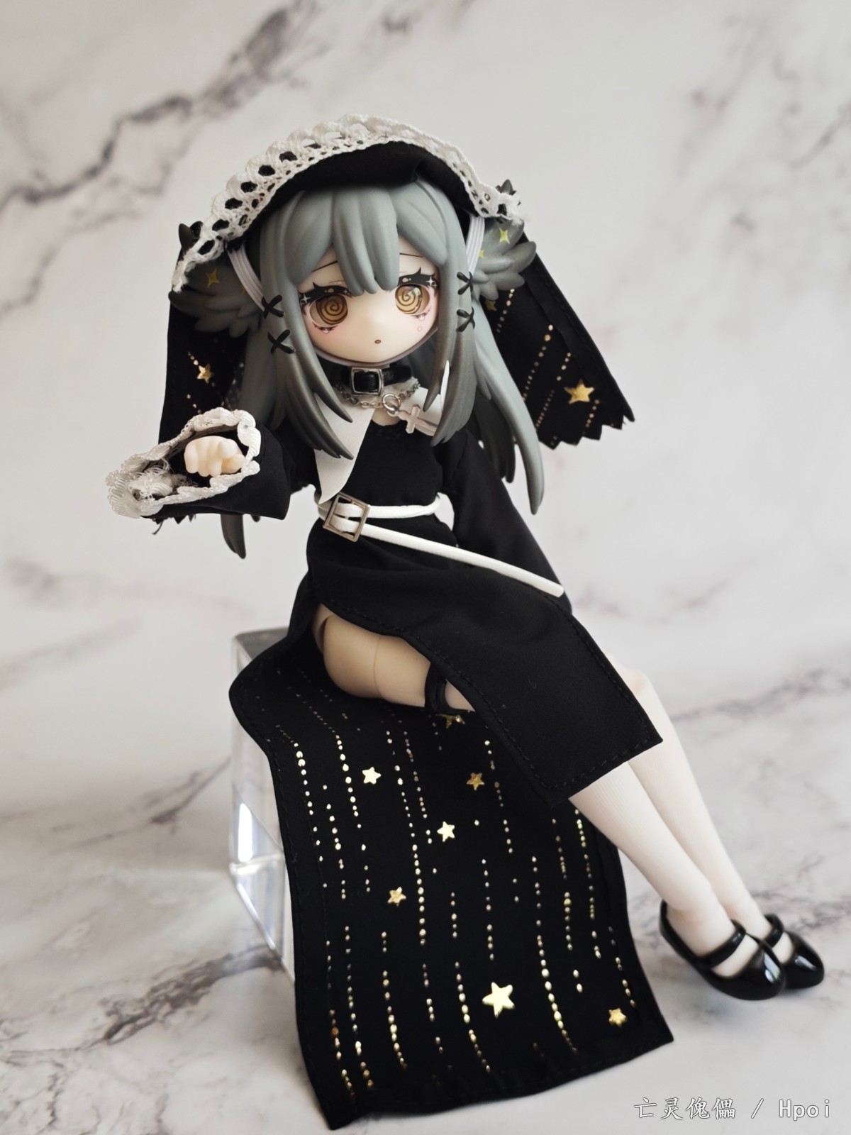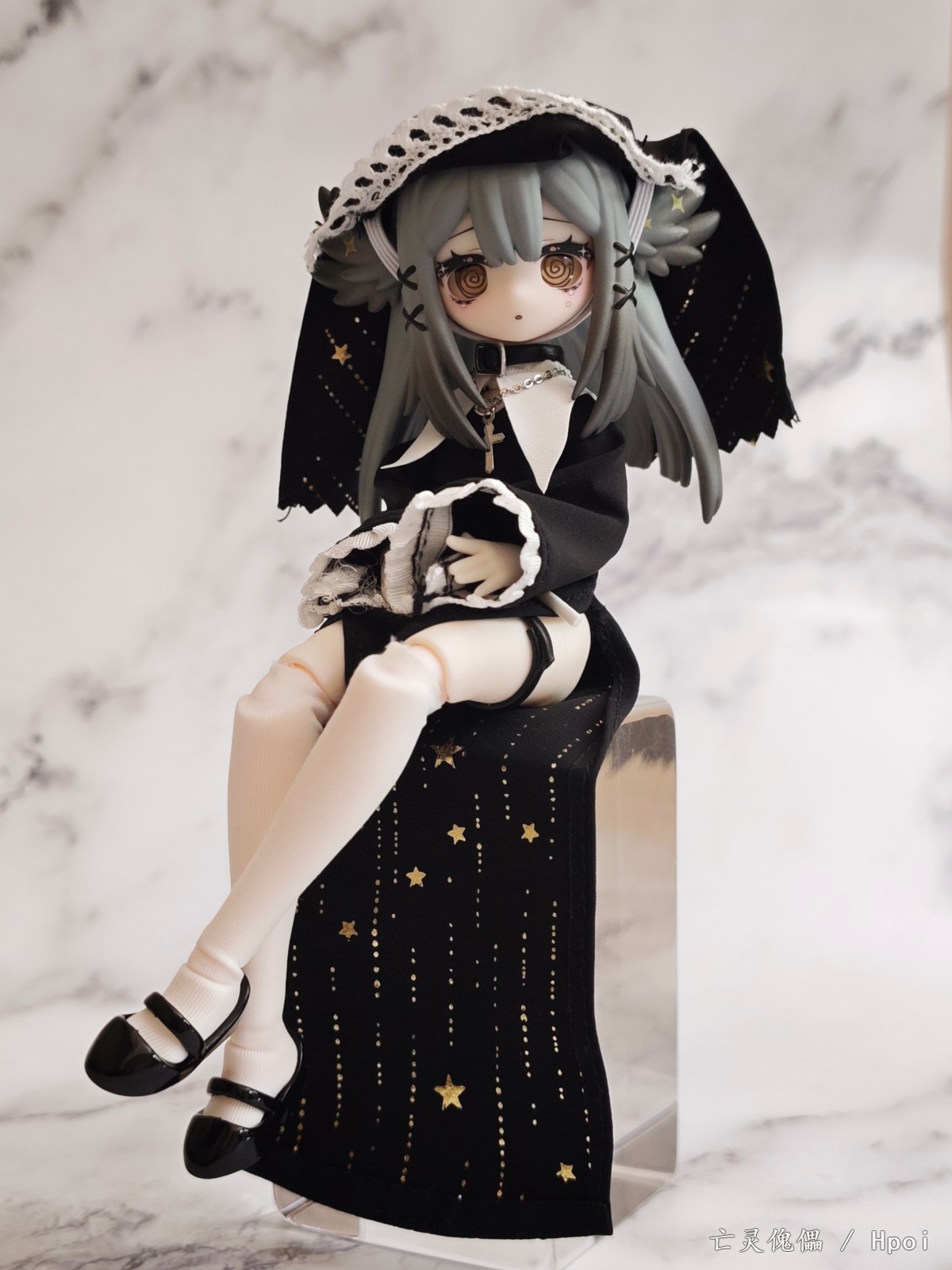 今年年初突然在各大胶佬群里传开的国产MJD盲盒,当时看造型不错,价格也便宜直接选了咩绮家的造物之心系列的这款预定了。 到手之后发现这玩意素质比较一般,作为一款青年向的玩具,做工只能说符合定价了。素体容易被自带的衣服染色,不过头雕还是很细致的,头发有阴影涂装。衣服当然是要玩家自己穿的,对直男很不友好。可动也比较一般,关节感觉也很脆,大腿处的桩位很短容易脱落。衣物边缘缝线太粗,但是夜星这款头巾和长袍内衬的图案挺好看的。袜子的紧身效果也很差,袜口没有尼龙环固定摆造型容易卡进膝盖缝隙,但是皮鞋做工不错。这款的站姿稳定性也不太行也没有支架,我拍的基本都是坐姿和跪姿。 总的来说,作为一款百元以下的盲盒产品,创意造型这一块确实给你拉满了,但是还是希望厂家以后能提高素体和衣服的品质,毕竟这玩意也没啥IP作品加持,在现有价格上改进做工我认为还是未来可期的。