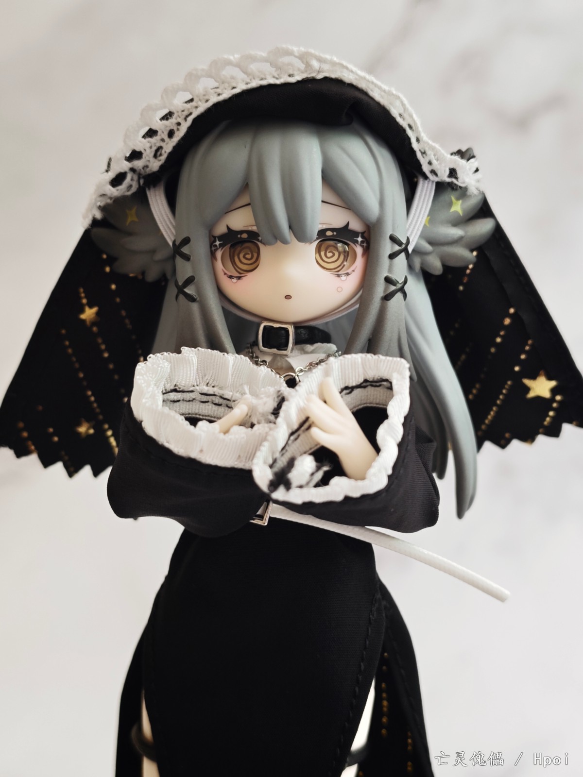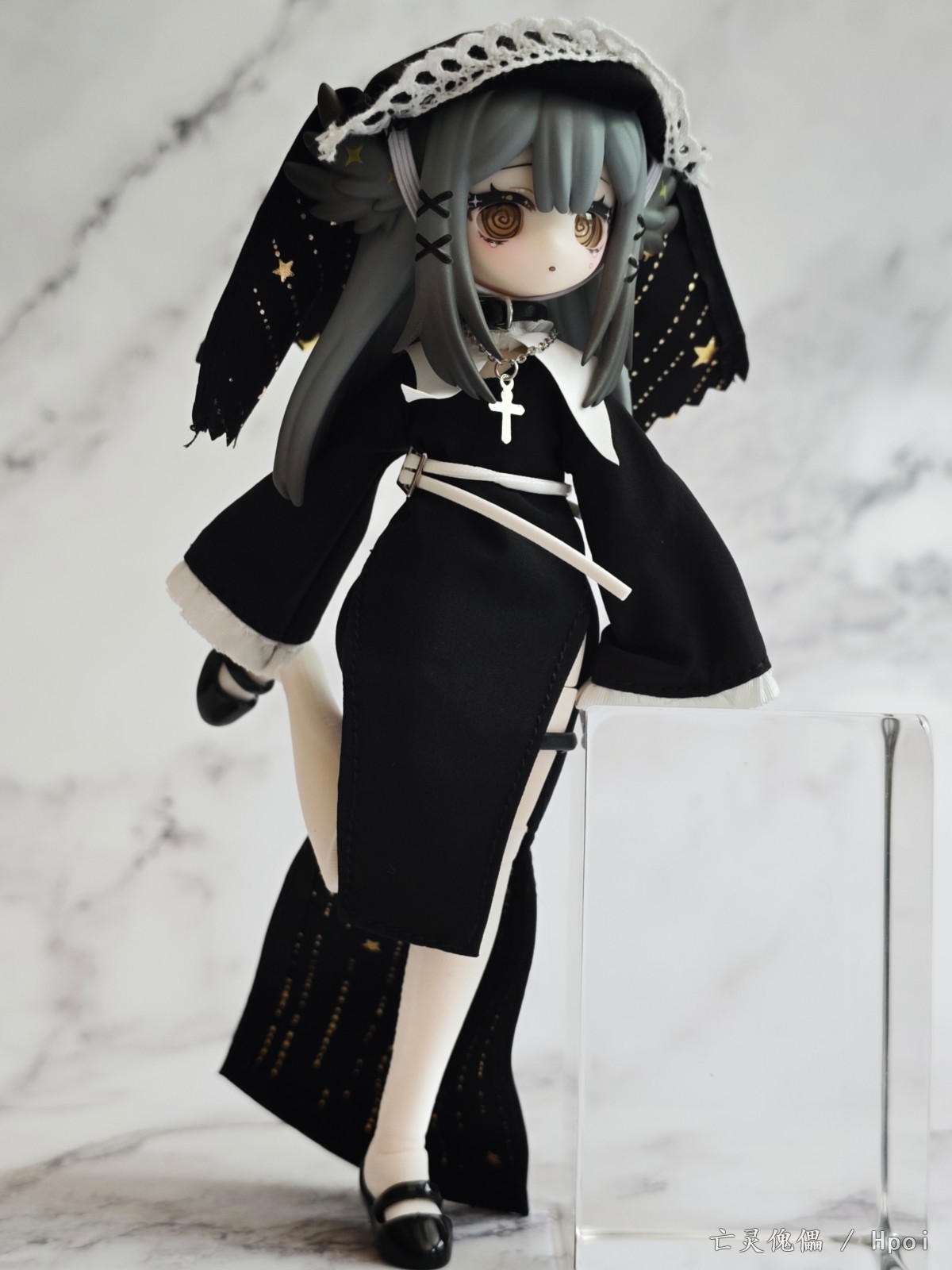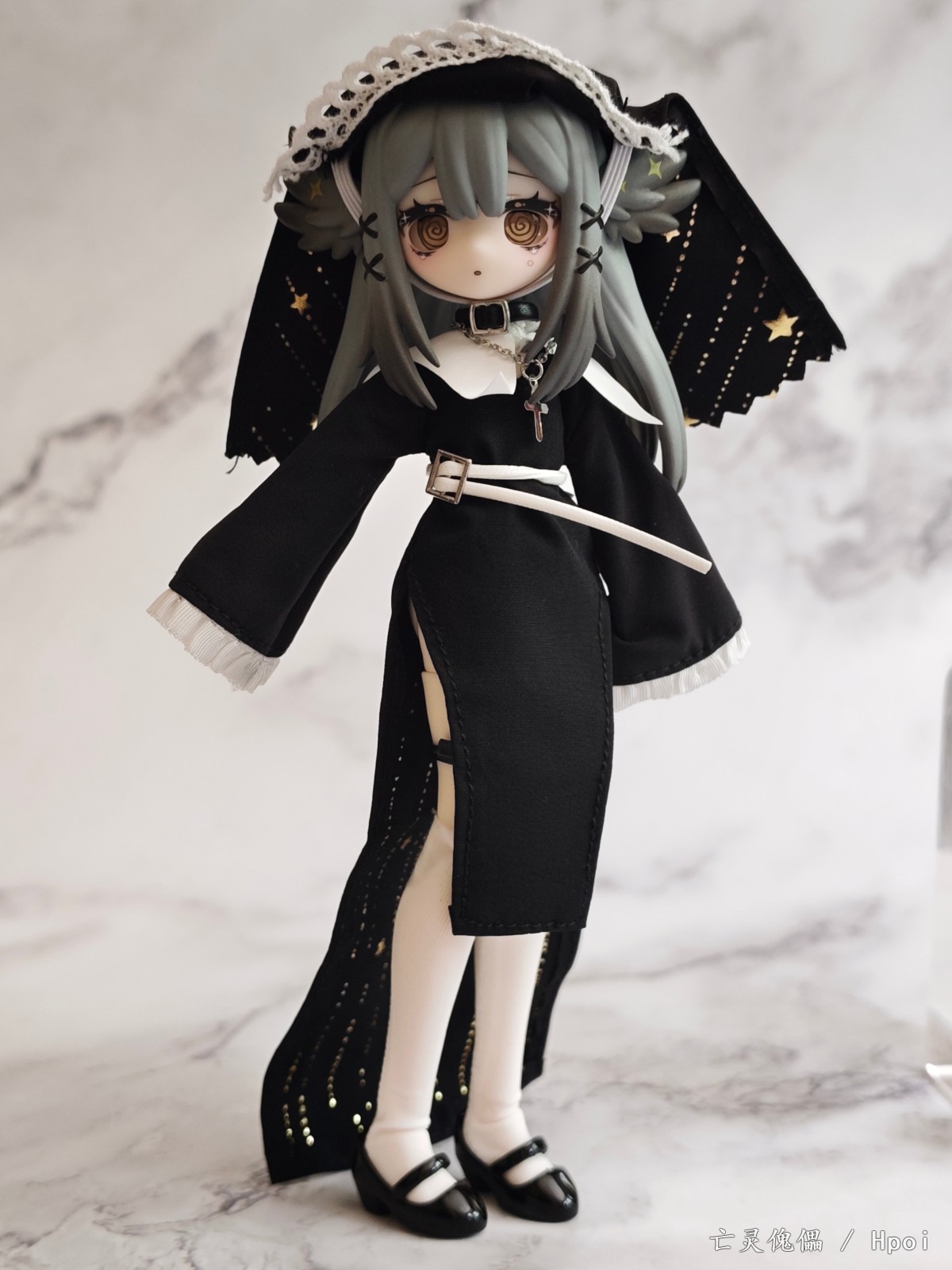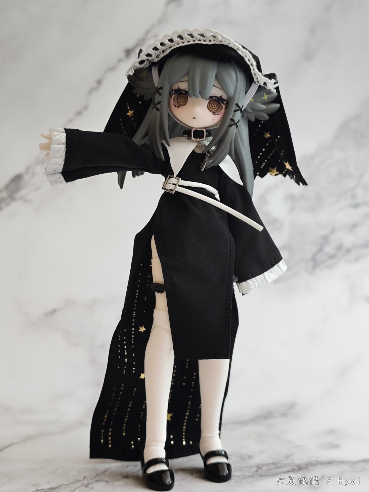 今年年初突然在各大胶佬群里传开的国产MJD盲盒,当时看造型不错,价格也便宜直接选了咩绮家的造物之心系列的这款预定了。 到手之后发现这玩意素质比较一般,作为一款青年向的玩具,做工只能说符合定价了。素体容易被自带的衣服染色,不过头雕还是很细致的,头发有阴影涂装。衣服当然是要玩家自己穿的,对直男很不友好。可动也比较一般,关节感觉也很脆,大腿处的桩位很短容易脱落。衣物边缘缝线太粗,但是夜星这款头巾和长袍内衬的图案挺好看的。袜子的紧身效果也很差,袜口没有尼龙环固定摆造型容易卡进膝盖缝隙,但是皮鞋做工不错。这款的站姿稳定性也不太行也没有支架,我拍的基本都是坐姿和跪姿。 总的来说,作为一款百元以下的盲盒产品,创意造型这一块确实给你拉满了,但是还是希望厂家以后能提高素体和衣服的品质,毕竟这玩意也没啥IP作品加持,在现有价格上改进做工我认为还是未来可期的。