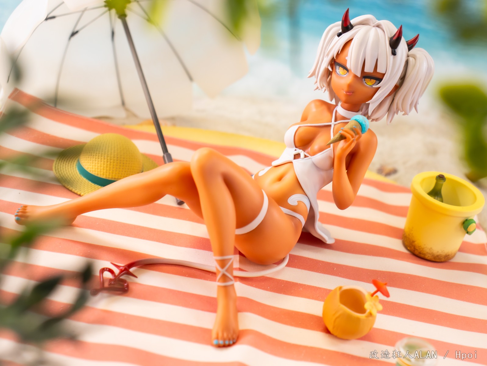 分享一下SSR FIGURE新出的咖啡因酱和暗精灵舞娘~ 小小的很可爱,简单搭一个海滩场景拍拍就很出片~ 快来享受夏日的阳光吧!