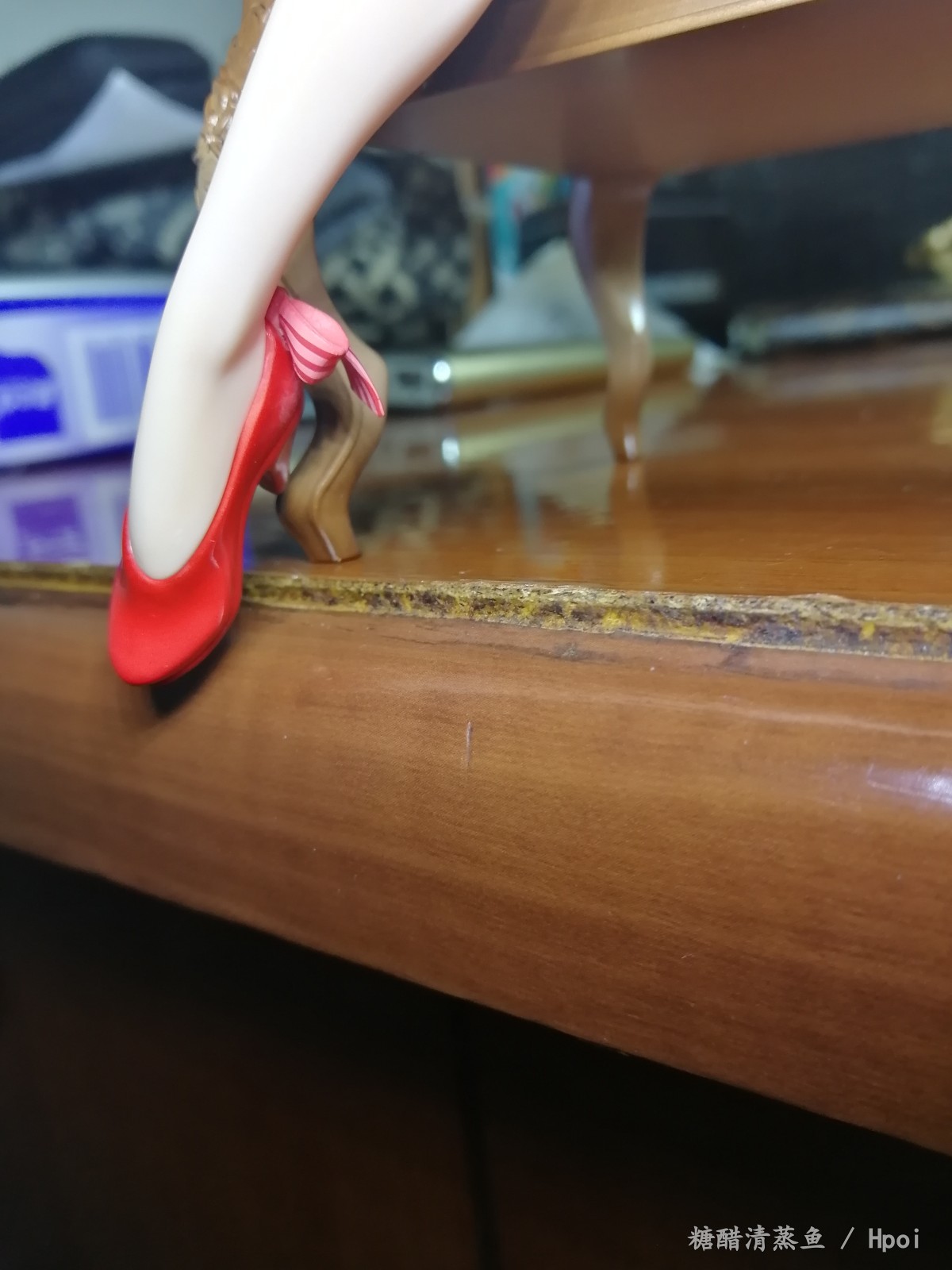手机渣拍。手办挺上镜的。脚尖要比椅子多出来一点,感觉这做工不值这个价格