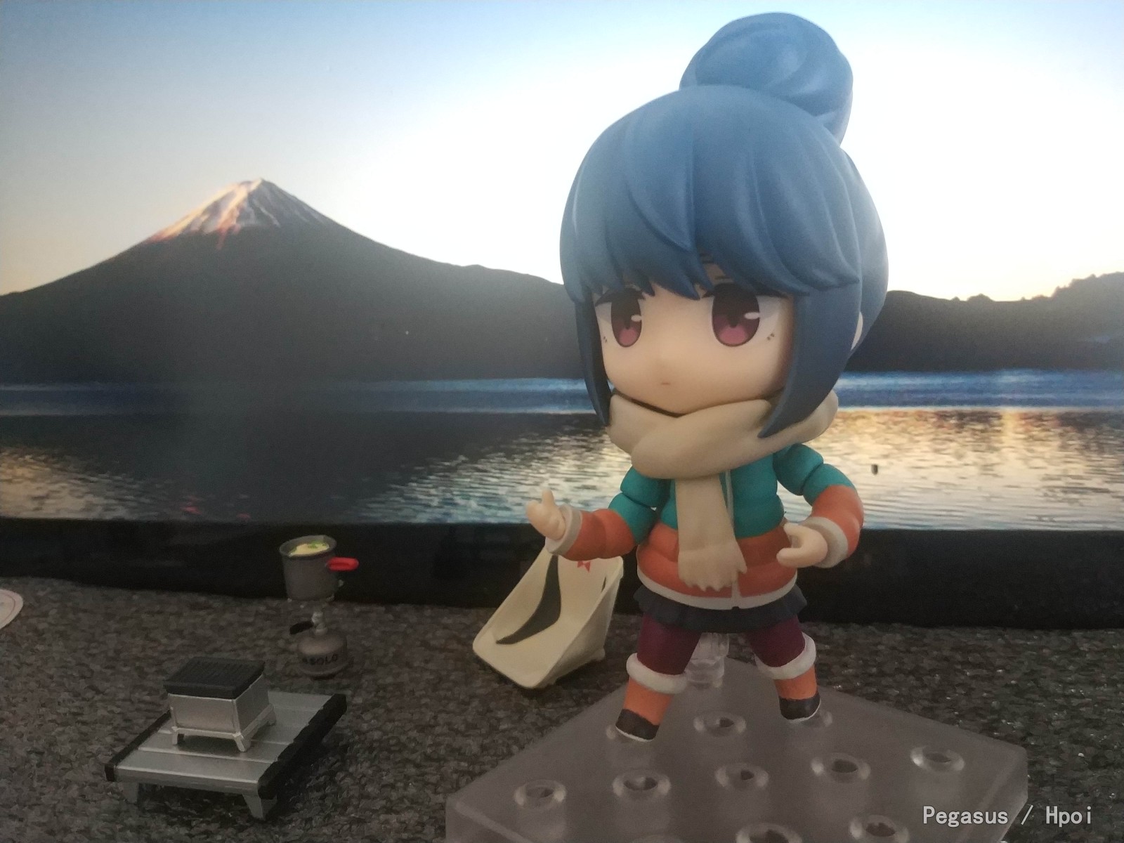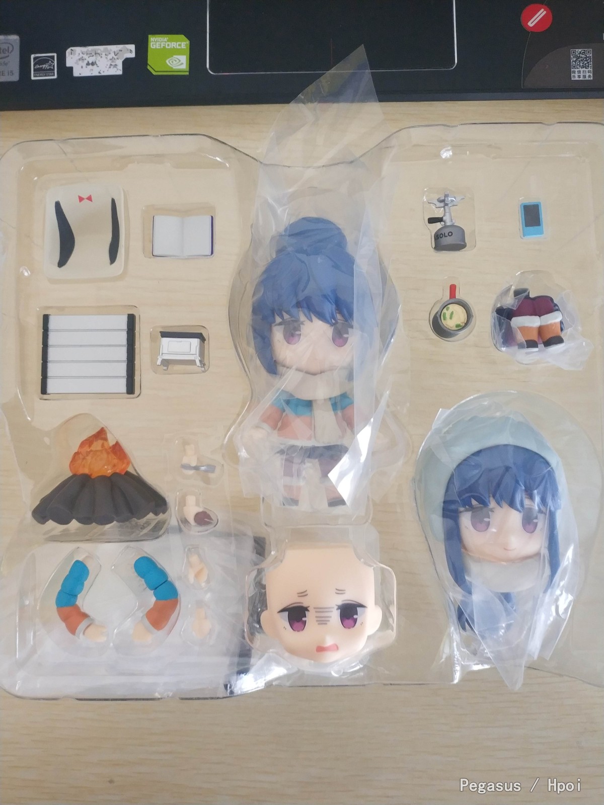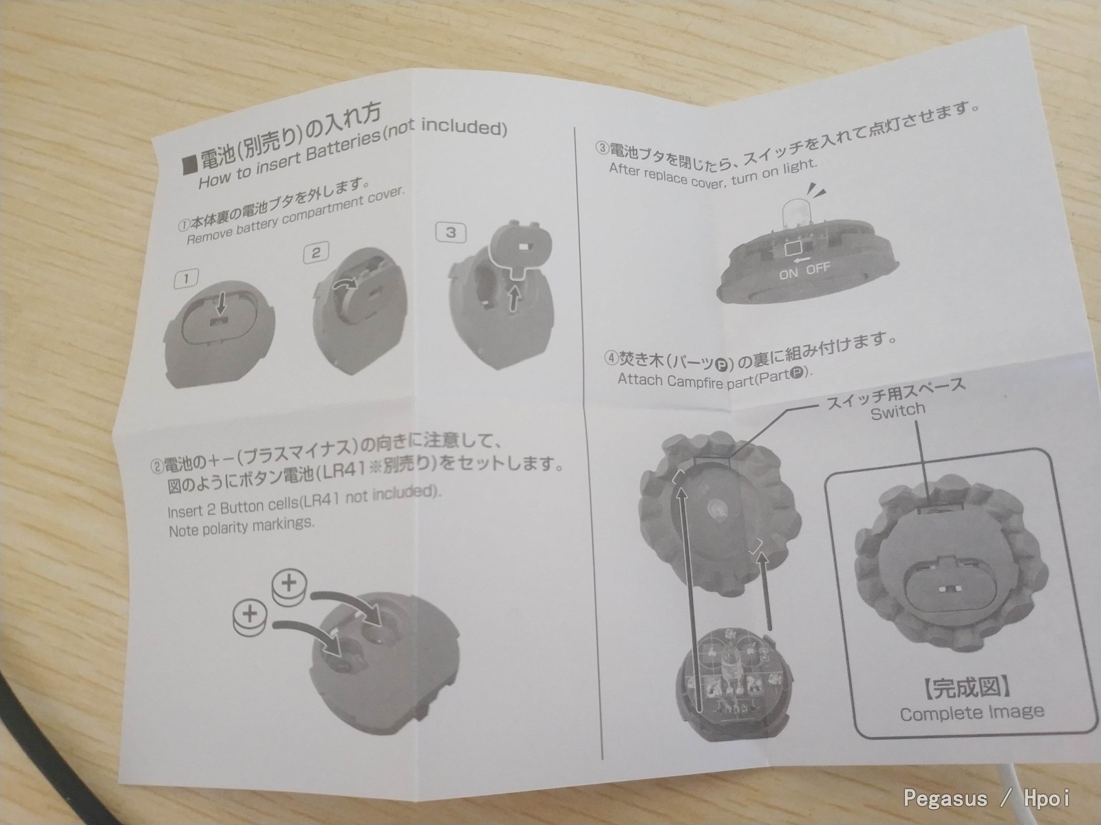 摩托车是在背景板上的,如果要用得剪下来…坑就完事了…本体都还不错,就是芝麻凛腿上有胶水印,头疼…官方店的特典版就是一个小板子…两个纽扣电池供电,型号lr41,没有特典的话,篝火下面是空心的,这个板子…其实可以自己做
