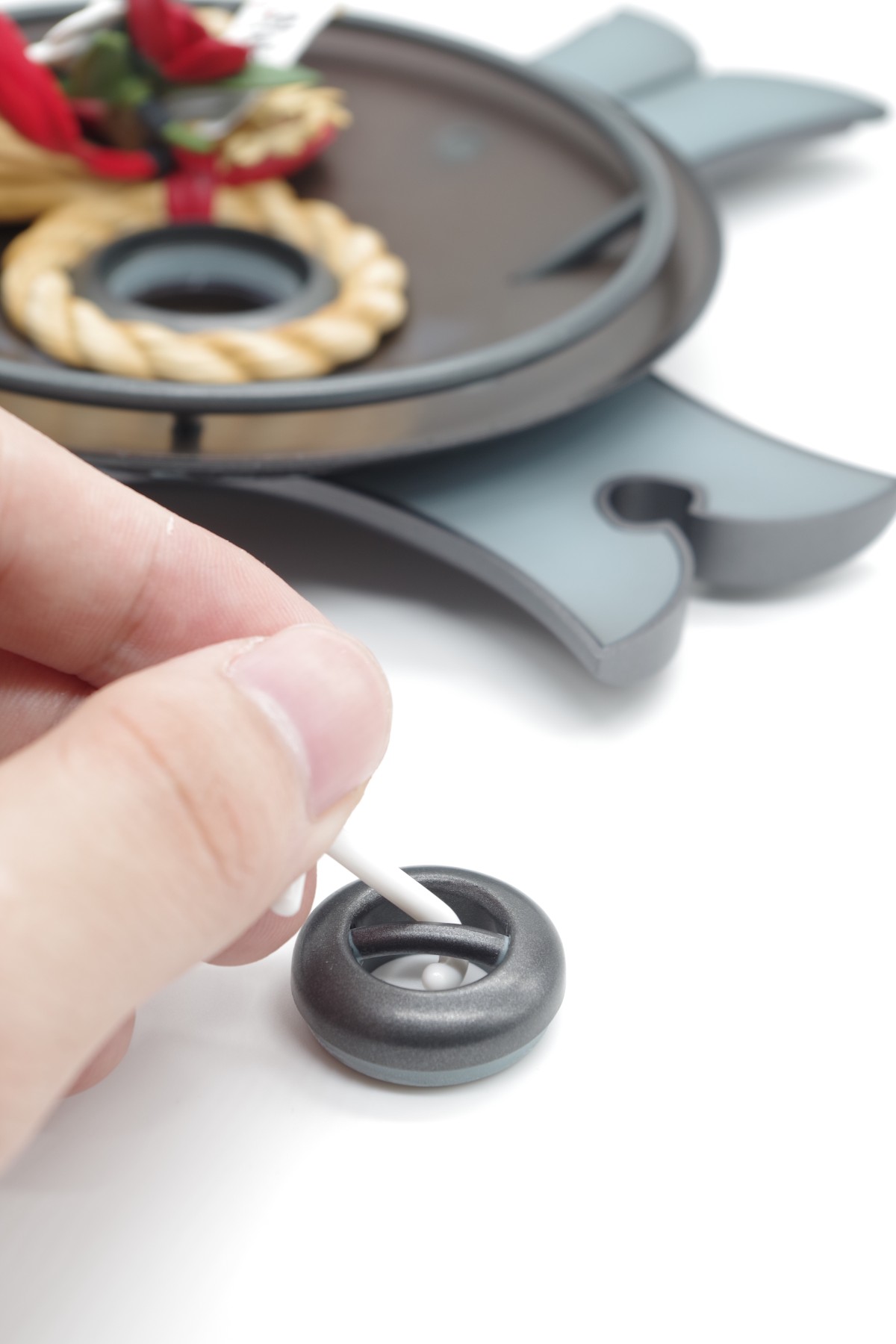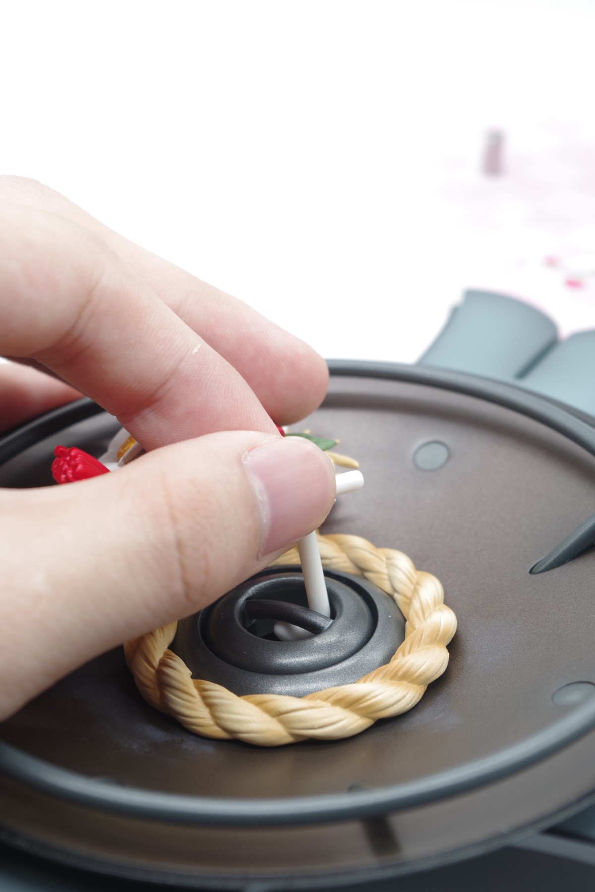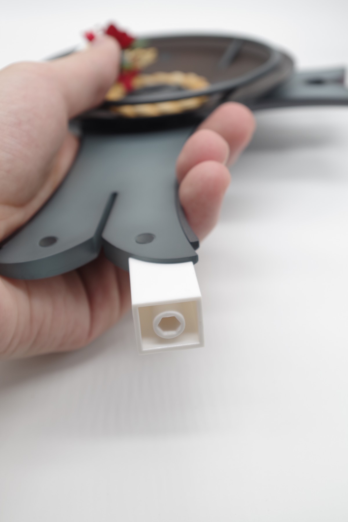 首先用内包右下角附赠的一个J形状的小钩子,把盾的握把勾出来