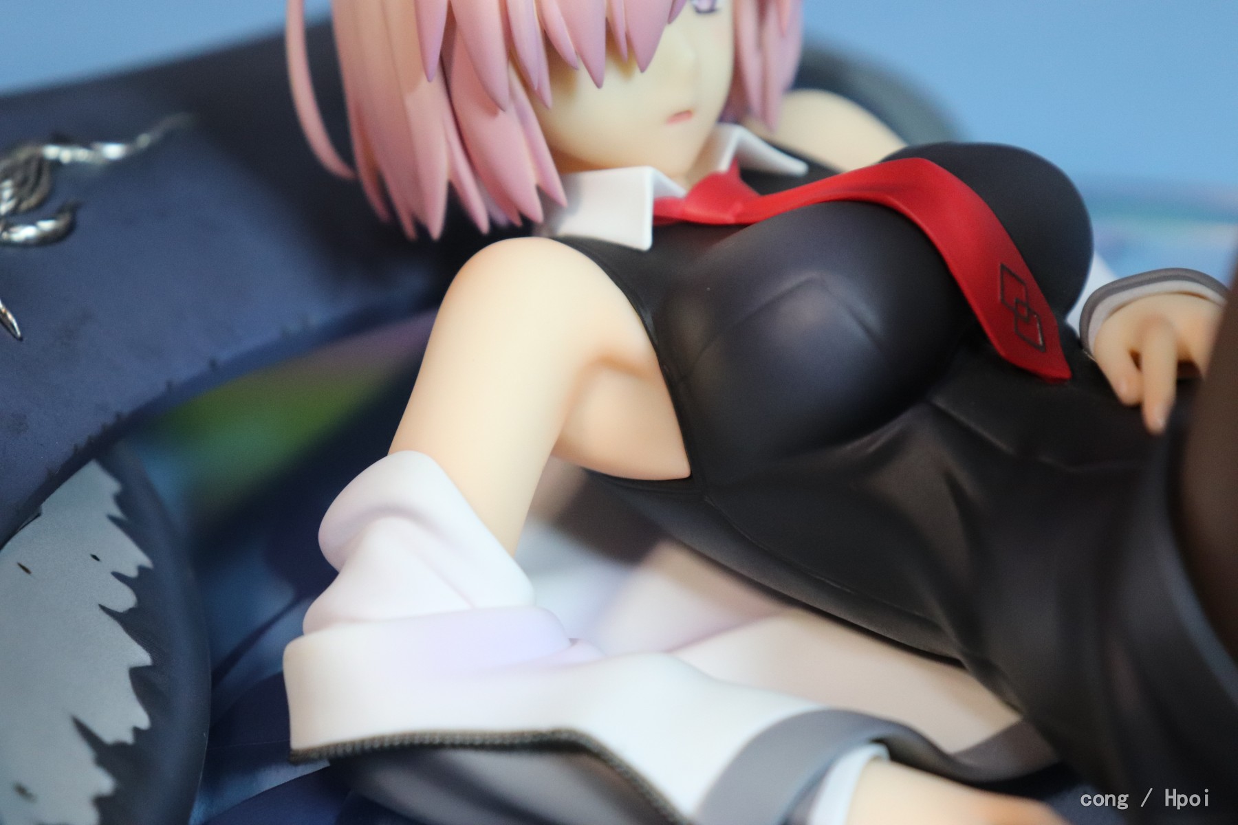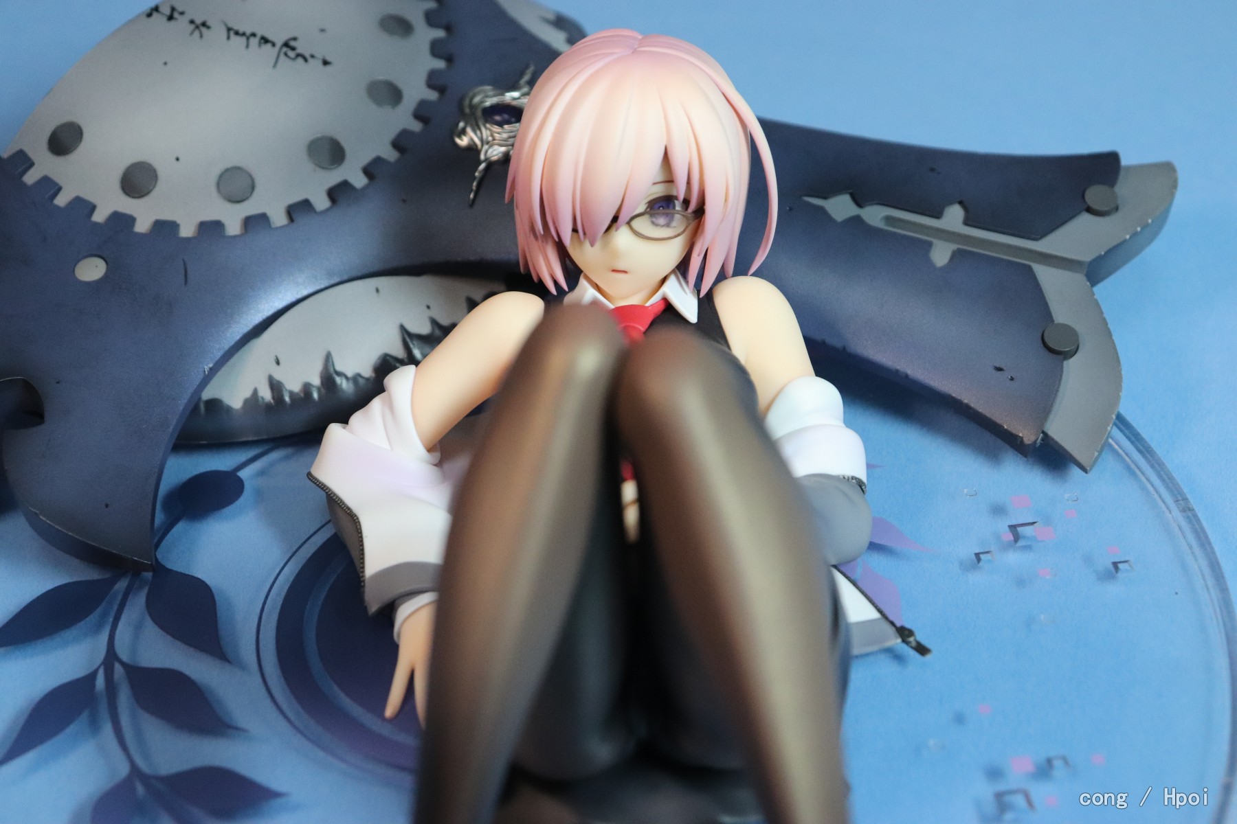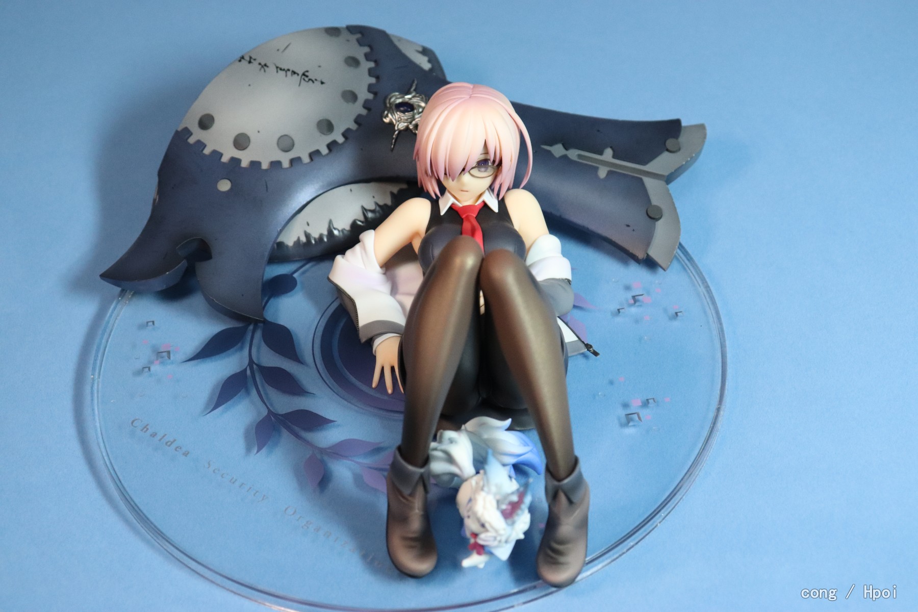 表情比较呆,做工ok,芙芙要靠尾巴来保持平衡,底座比较僵硬,没有孔给盾牌插,盾牌位置只能随缘放,因为我比较担心盾牌和学妹互相蹭色,所以都放的比较远,还有芙芙放的时候也要小心蹭到学妹的黑丝