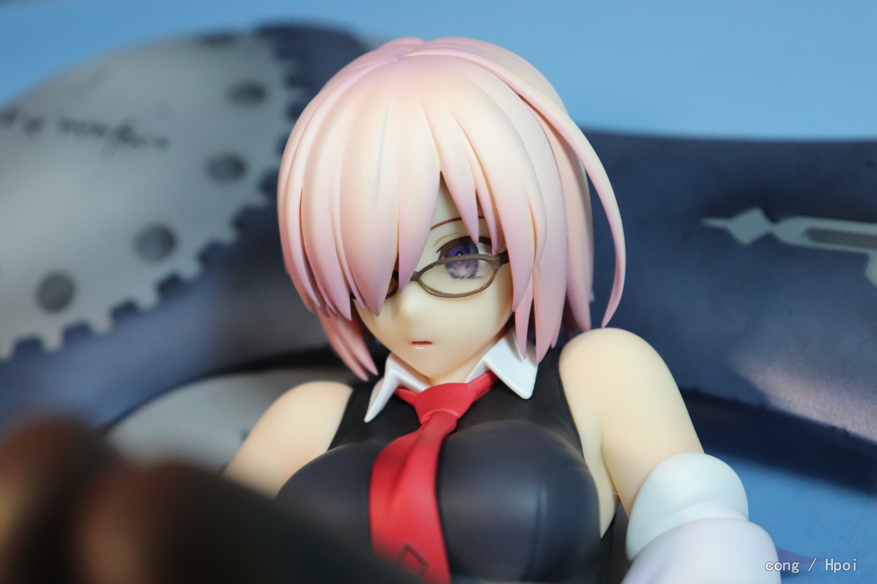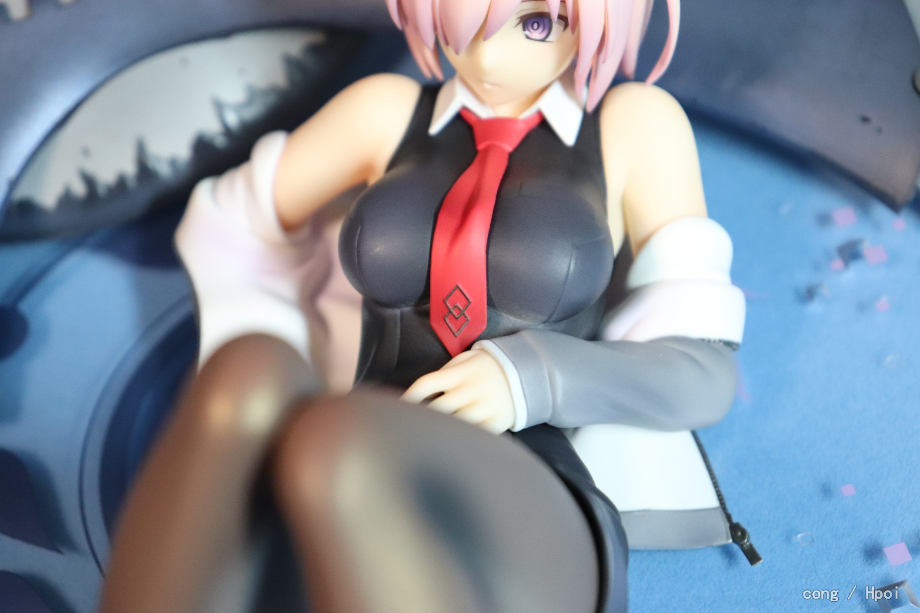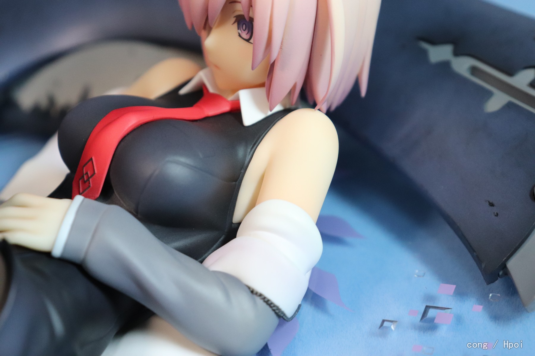 表情比较呆,做工ok,芙芙要靠尾巴来保持平衡,底座比较僵硬,没有孔给盾牌插,盾牌位置只能随缘放,因为我比较担心盾牌和学妹互相蹭色,所以都放的比较远,还有芙芙放的时候也要小心蹭到学妹的黑丝