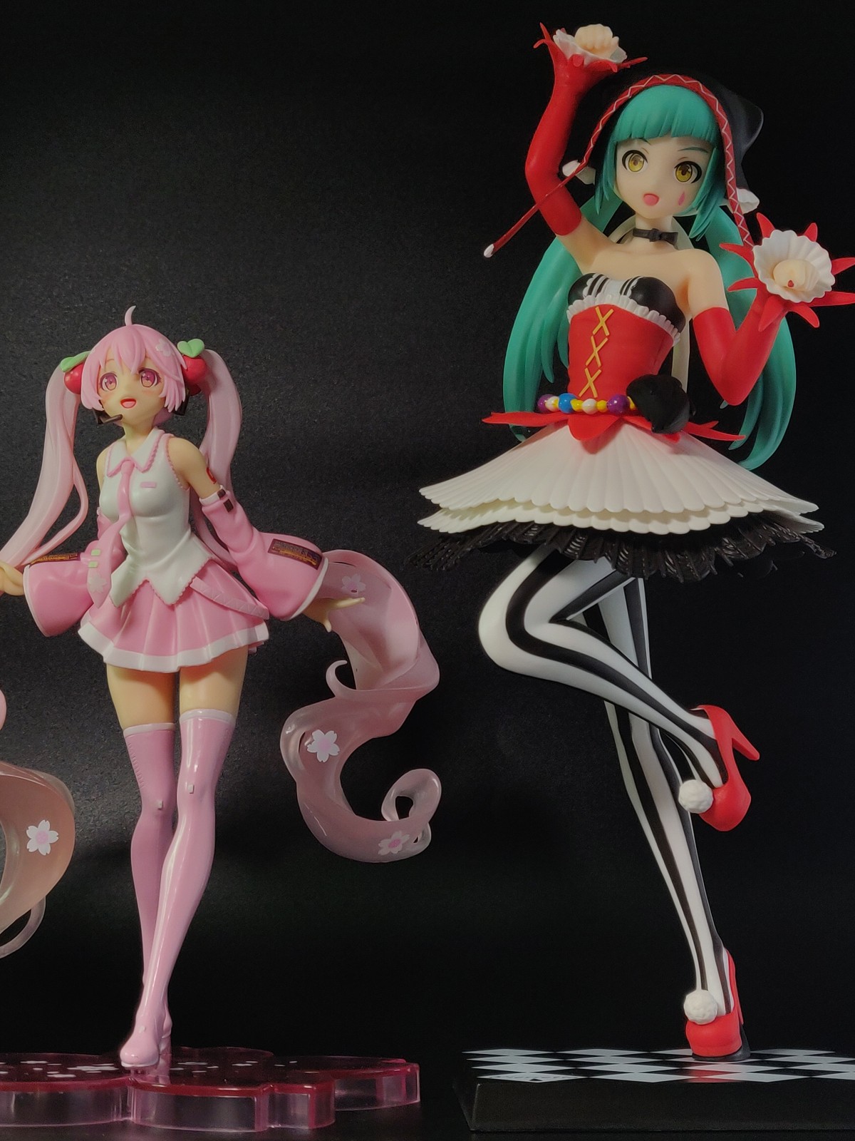 第一张是以与地台差不多平行的地方照的(这样对比强烈),可以看到Taito家的初音才堪堪到Sega家初音的腰...