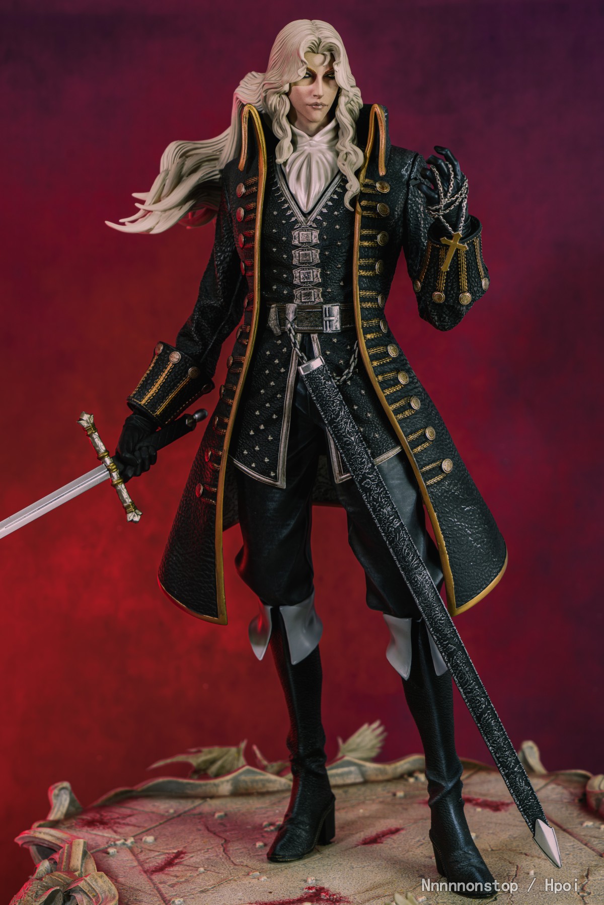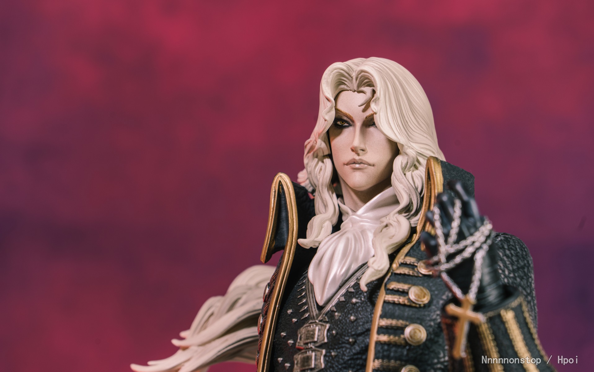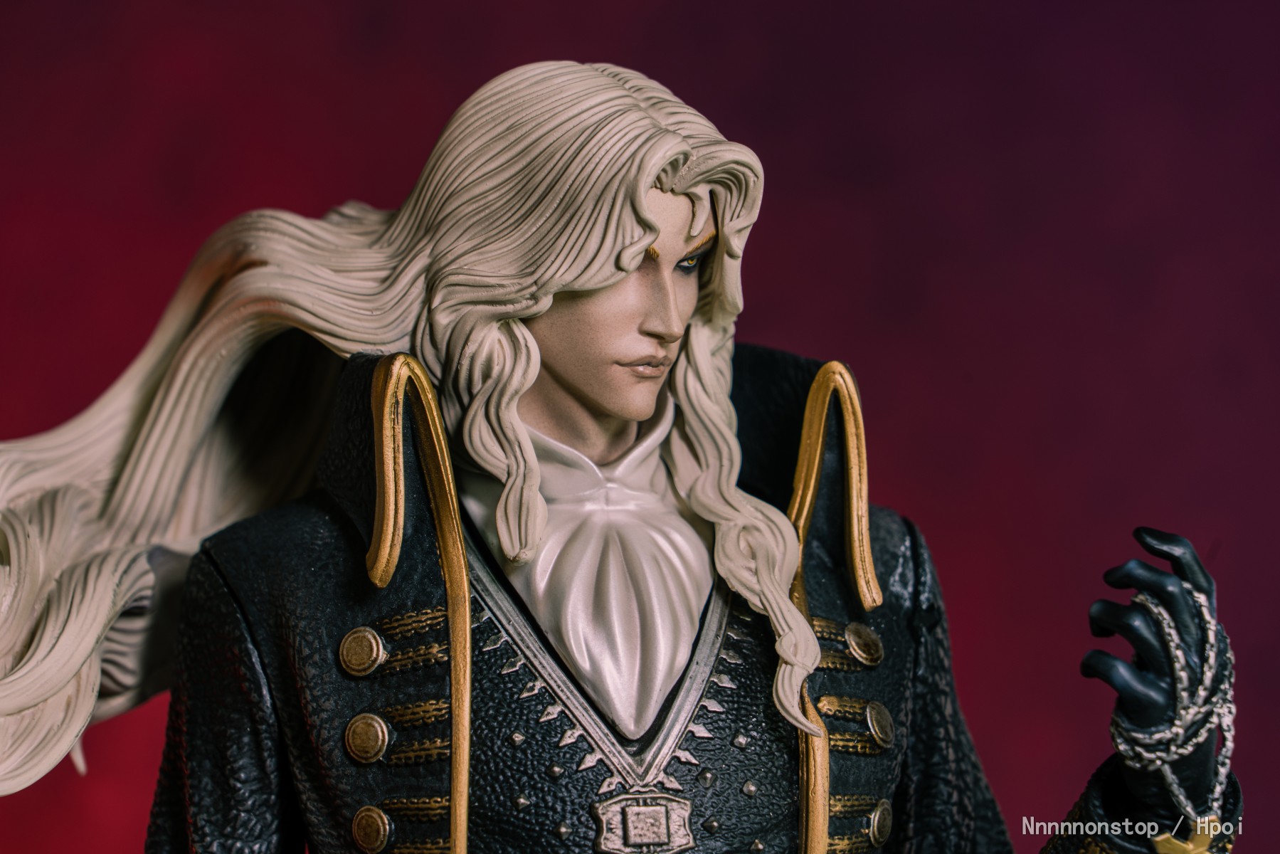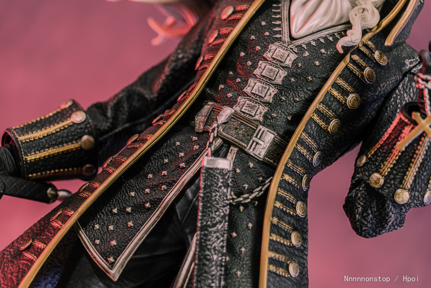 大小质感造型都不错相当帅气。服装武器的纹理都不错。 因为使用的磁吸的方式连接的肩膀的部分连接有些间隙有些难受 不过把披风带上也看不出来。最让我头疼的是这个头 可能是有些中奖了 头部和领部连接后安装在身体上无法完全贴合,头发的地方一直会被披风的领子抵住导致胸部和身体不够贴合 搞得有些地方都蹭色了 连接的磁石都跑出来了 太难受了。有大佬说说头部及领部的安装方式么 T_T