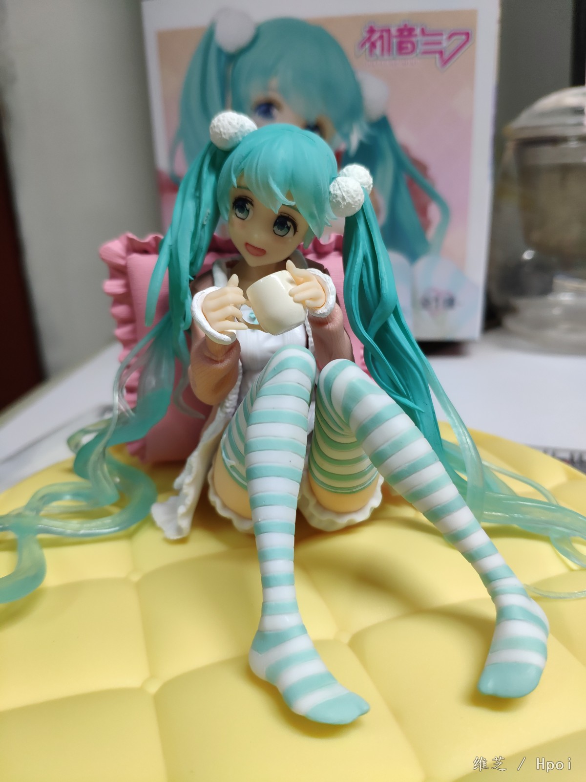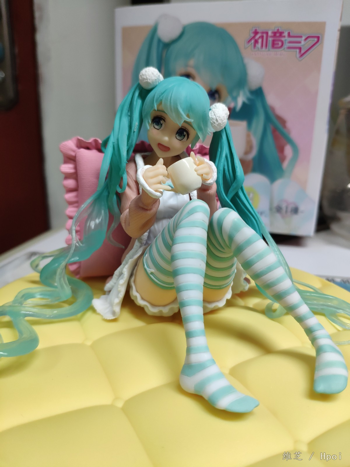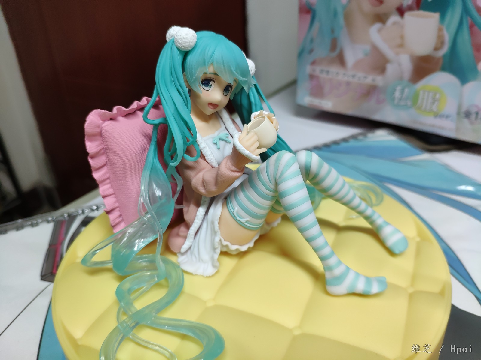 入了两只坐姿的miku,另一只还没有通知补款_(:з」∠)_角度限制有点多,基本就只能是从正面看,左边的头发还是有点担心的因为太细了总觉得要掉_(:з」∠)_不过头发底部还是比较贴合地面不会悬起来。底座的床垫总想起某位萌王的菠萝包_(:з」∠)_