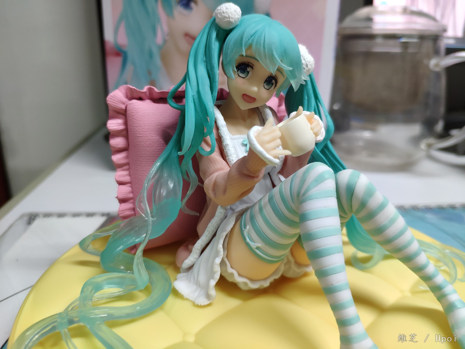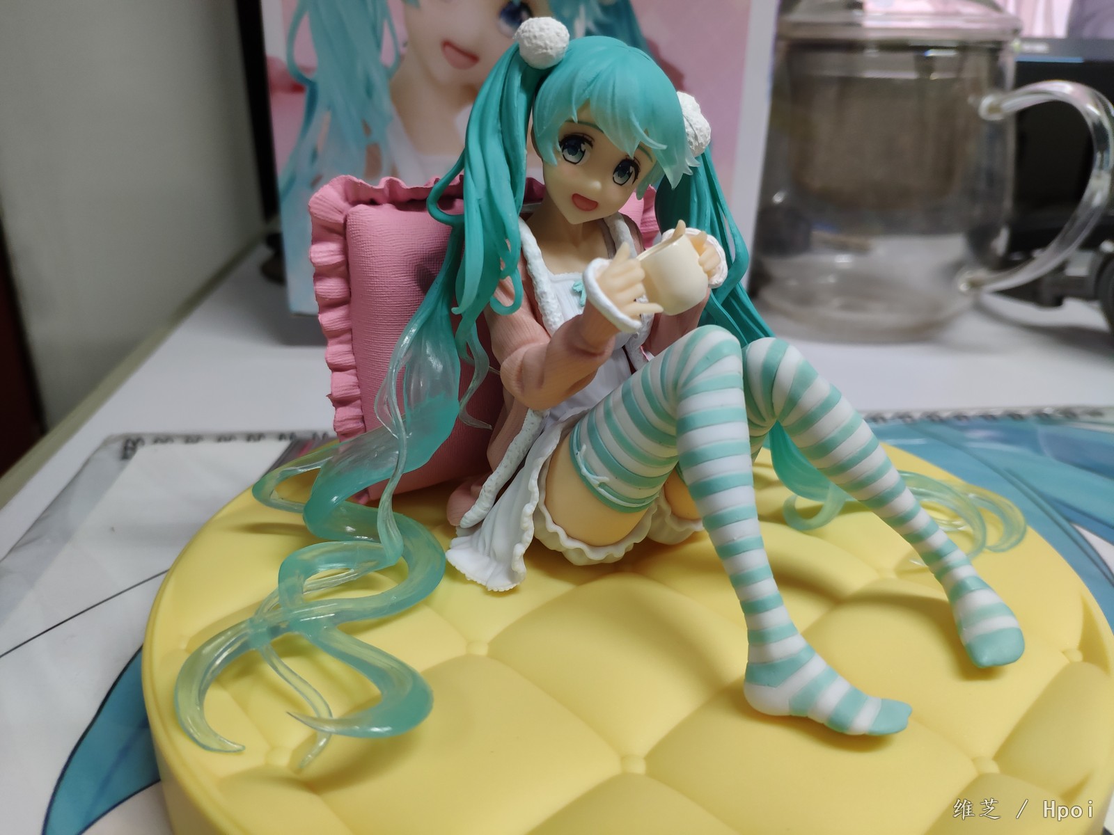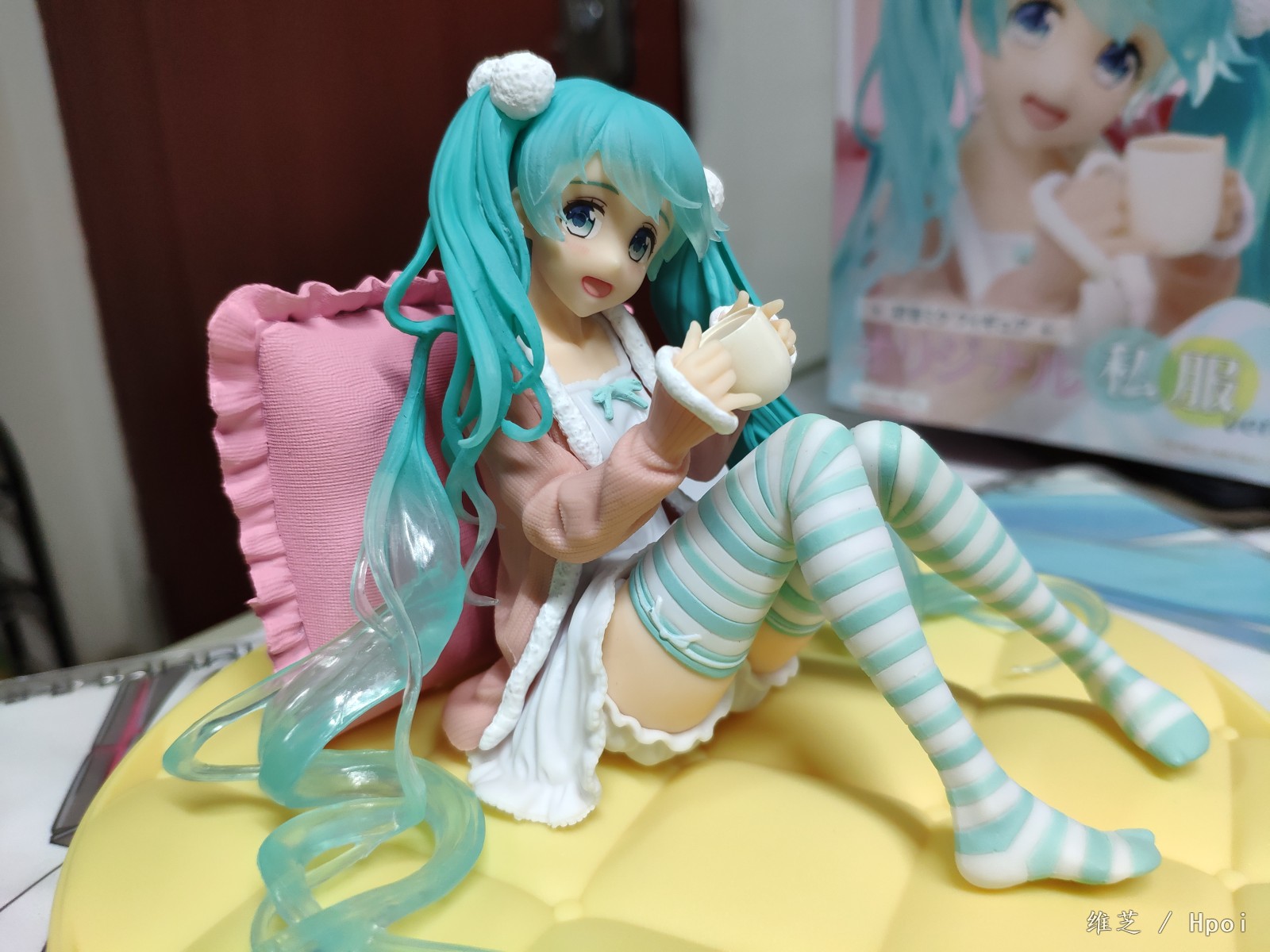 入了两只坐姿的miku,另一只还没有通知补款_(:з」∠)_角度限制有点多,基本就只能是从正面看,左边的头发还是有点担心的因为太细了总觉得要掉_(:з」∠)_不过头发底部还是比较贴合地面不会悬起来。底座的床垫总想起某位萌王的菠萝包_(:з」∠)_